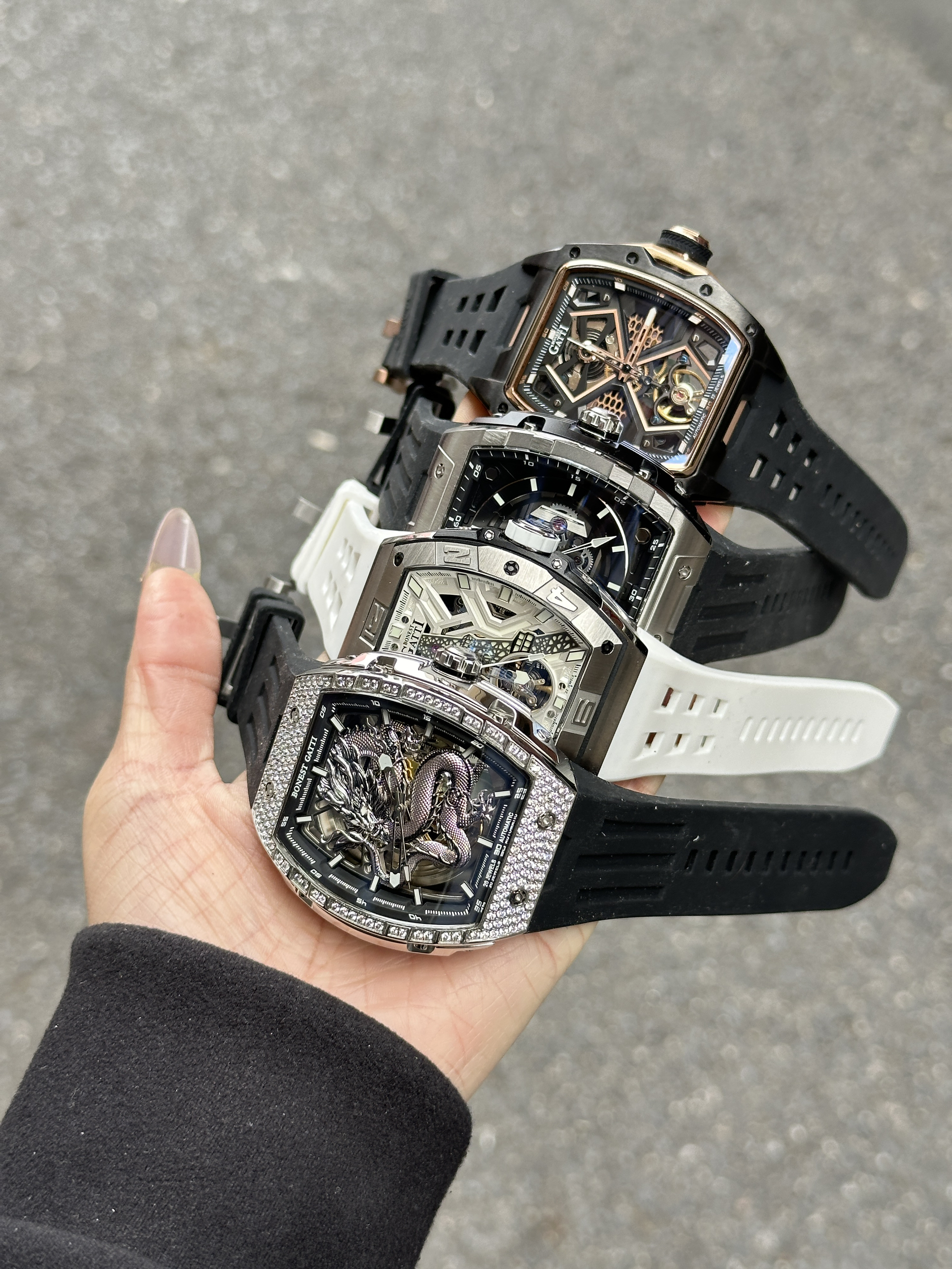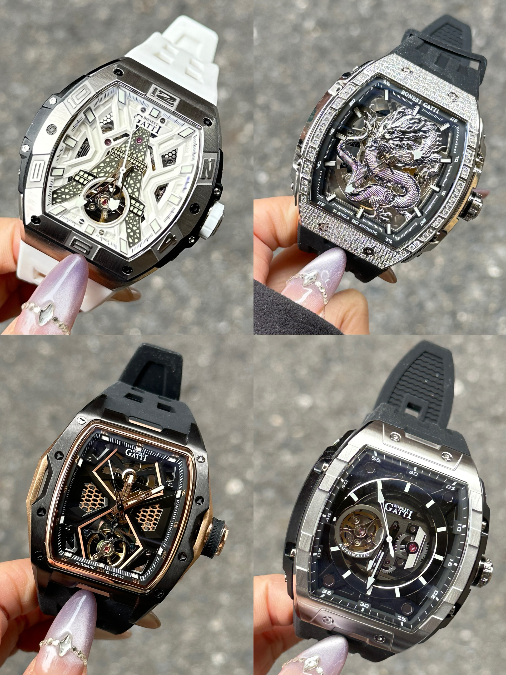 本篇笔记关联了BONEST GATTI/布加迪 霜金祥龙时尚夜光自动机械男士手表 白带银面 BG5003-R1、BONEST GATTI/布加迪 疾速系列 理查酒桶型高颜值轻奢防水多功能时尚镶钻满钻日期功能霸气夜光潮流商务休闲百搭自动机械男士手表 银黑 BG-5004-R1等商品,为用户提供真实的使用体验和购买参考。