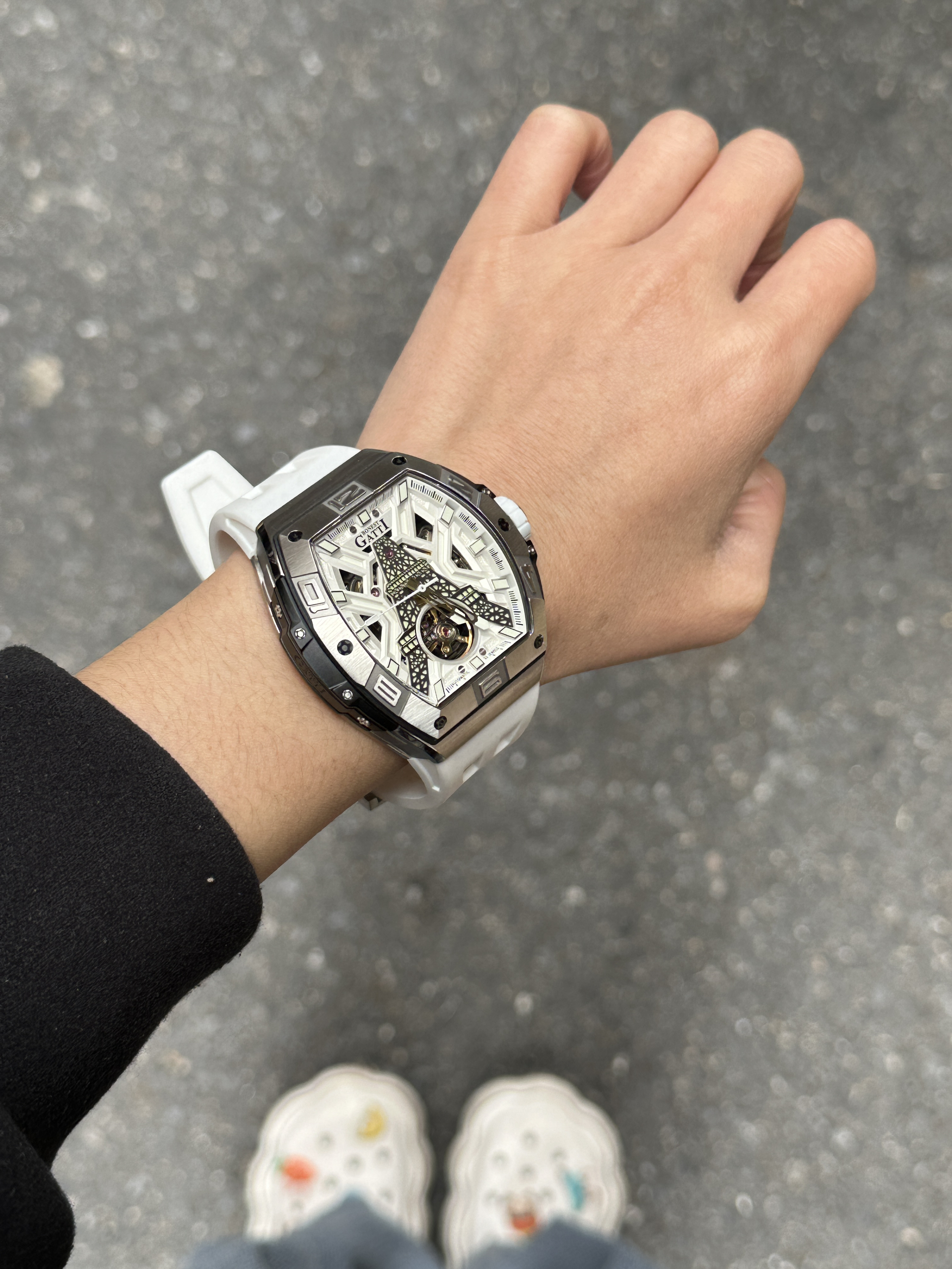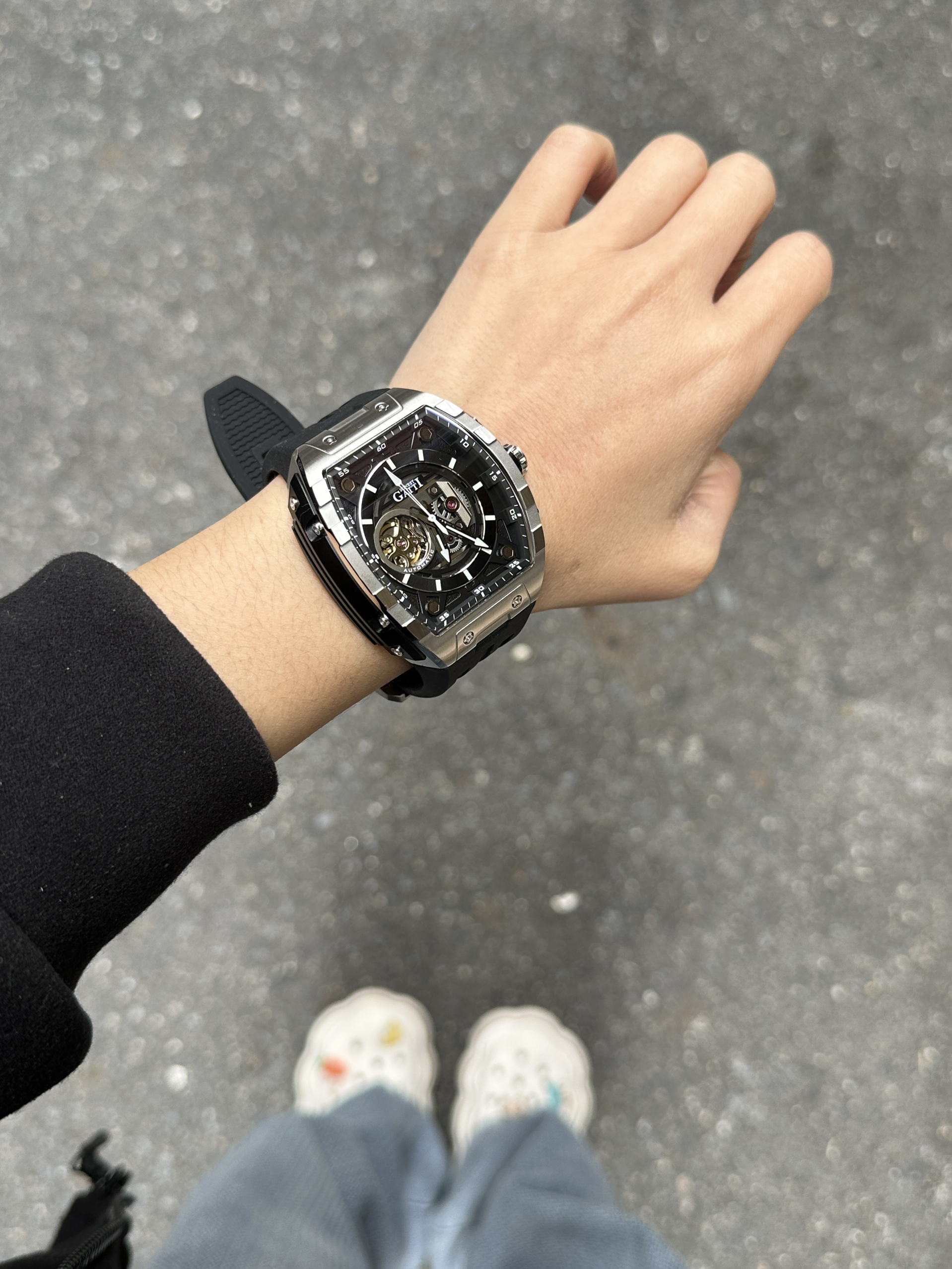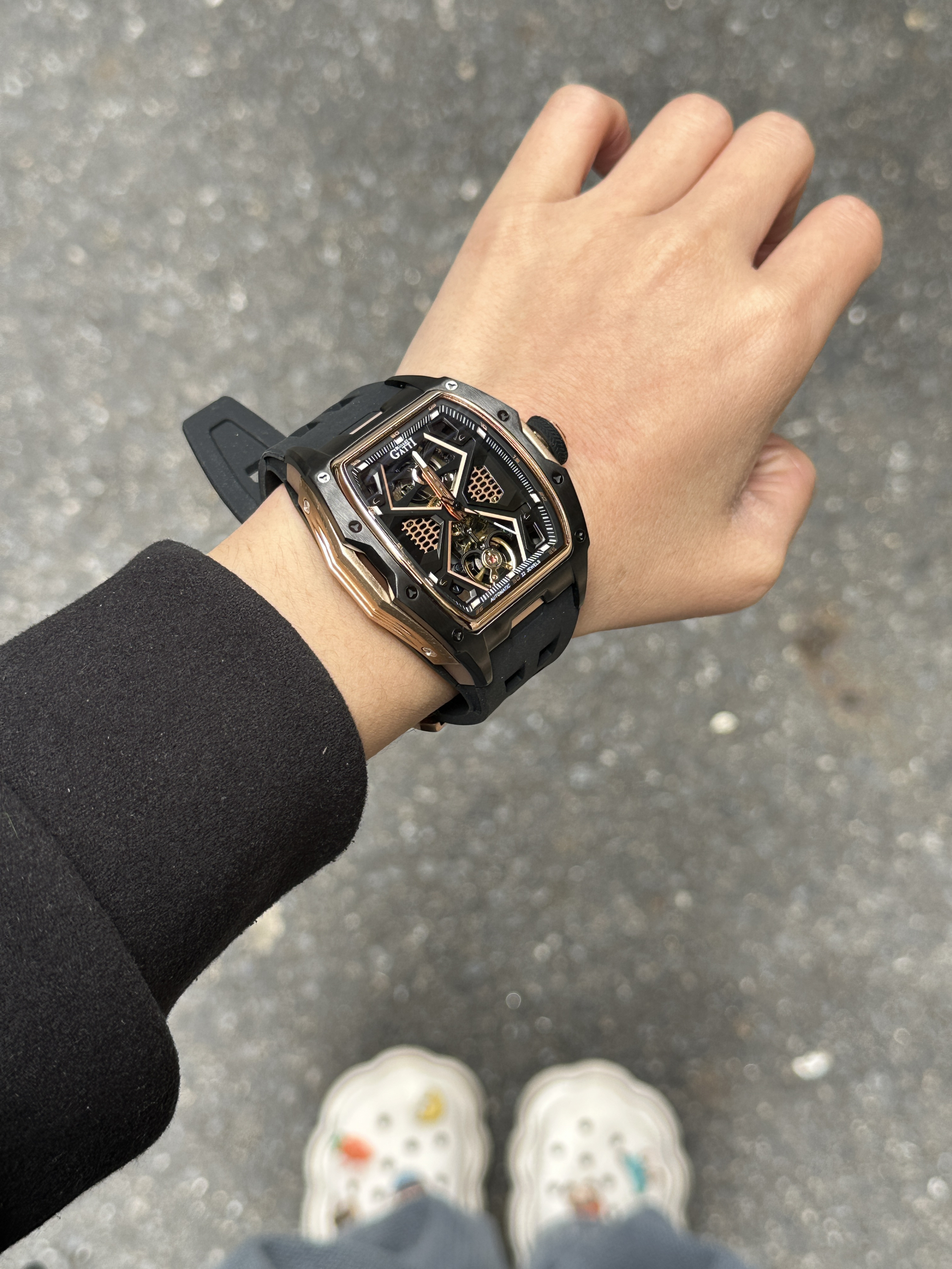 兄弟们~你们心中的机械表天花板是哪家呀 分享一下!我喜欢布加迪的机械表. 机械控狂喜的镂空机芯运作肉眼可见, 每次抬手都像在看微型引擎表演一样 npy日常约会搭配工装裤+马丁靴, 硬汉风拉满、好酷啊😎 真嘟低调诠释“西装暴徒”气质!