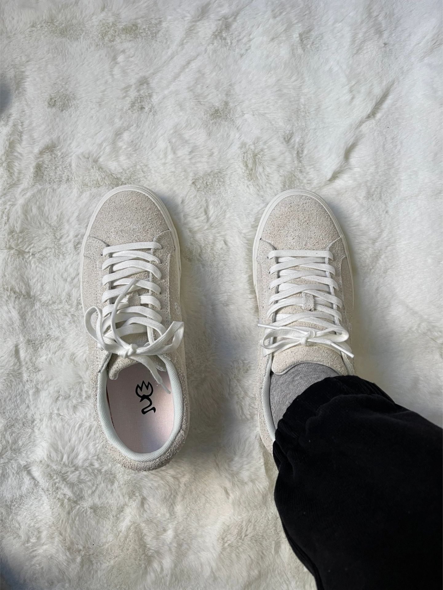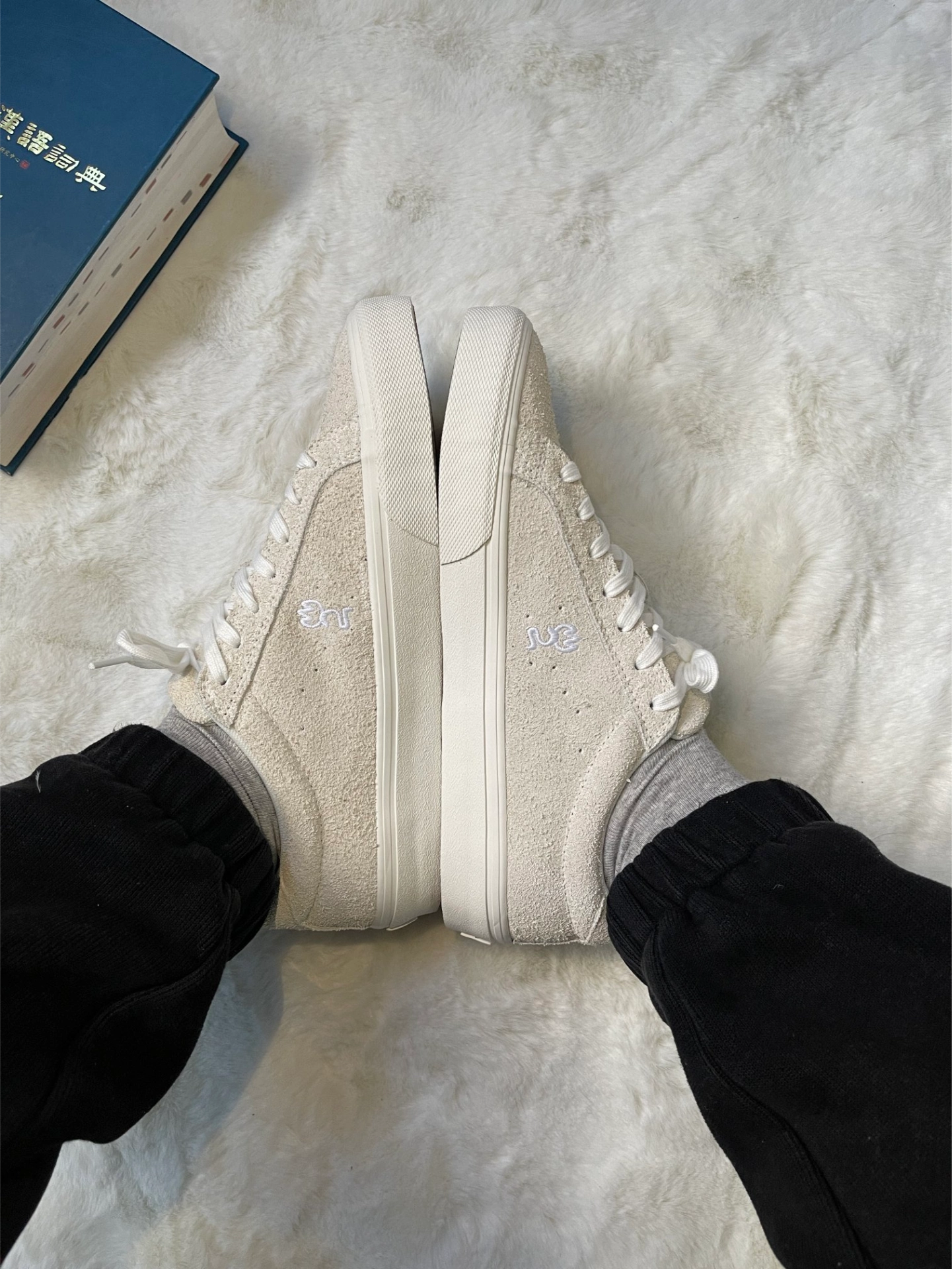 每个人鞋柜里必备款👟款式经典百搭又时尚! 一双乳白色的板鞋!鞋面采用翻毛皮的面料,而且还有大颗粒绒,摸起来还是很舒服的!穿起来也很舒服软软的,很轻,我觉得穿上一整天都不会觉得累脚!值得推荐!小白鞋 低帮板鞋 板鞋 鞋