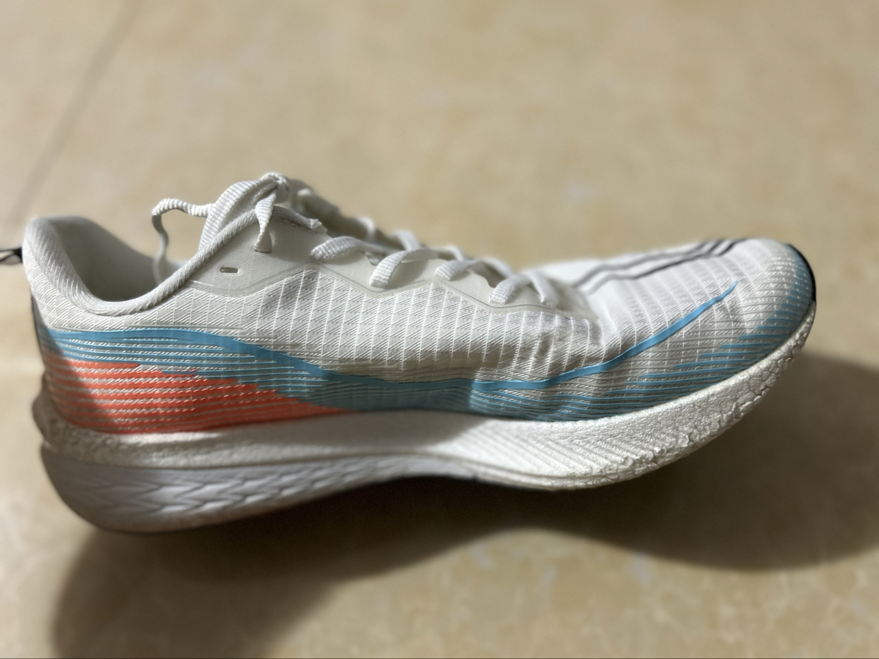 今天分享一双跑鞋——赤兔6pro 它的鞋面采用工程网面材质,轻盈透气,强度提升,延长了鞋子的使用寿命 它的中底采用了全䨻科技,前掌很软弹,回弹比较出色,,中底还有一块Probar Loc 锁定TPU,抗扭转也还算稳定 后掌还有LFU的科技,所以衰减也是很慢的,脚感软弹,可以弹射起步 大底也是采用了GCR止滑的科技,使这双鞋更加的防滑 总结,透气性直接拉满,鞋子整体很轻盈,性价比高,适合准...