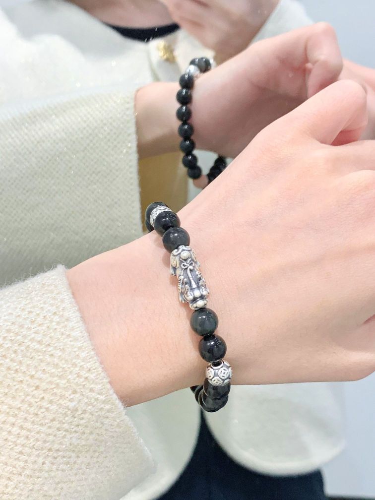 家人们,新年新气象,转运招财就靠它👉 中国黄金貔貅黑曜石足银手串! 🌟品牌保障:中国黄金,央企大品牌,品质绝对有保障,送礼自戴都超合适! 💎材质讲究:手串采用999足银打造貔貅,亲肤不过敏,敏感肌也能放心戴。搭配的黑曜石,颗颗圆润饱满,光泽度超棒,在阳光下闪烁着神秘的光芒✨ 而且黑曜石一直被视为辟邪的好物,能帮你赶走坏运气。 💰美好寓意:貔貅可是有名的瑞兽,以财为食,只进不出,寓意着招...