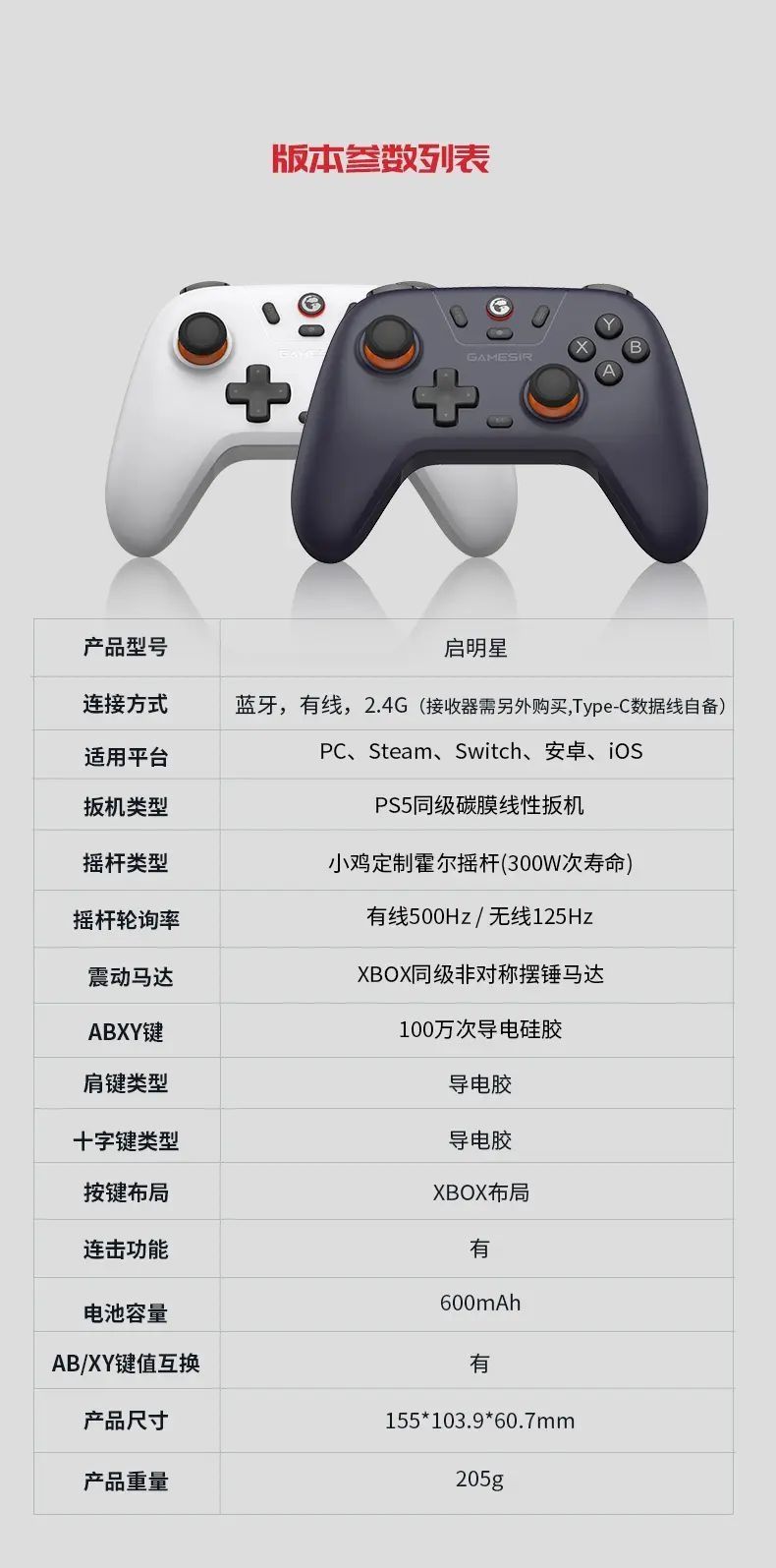 本篇笔记关联了GameSir/盖世小鸡 启明星 三模游戏手柄 定制霍尔摇杆 多平台支持 双影奇境 黑神话 蓝牙 辉光白、GameSir/盖世小鸡 启明星 三模游戏手柄 定制霍尔摇杆 多平台支持 双影奇境 黑神话 蓝牙 深空紫等商品,为用户提供真实的使用体验和购买参考。