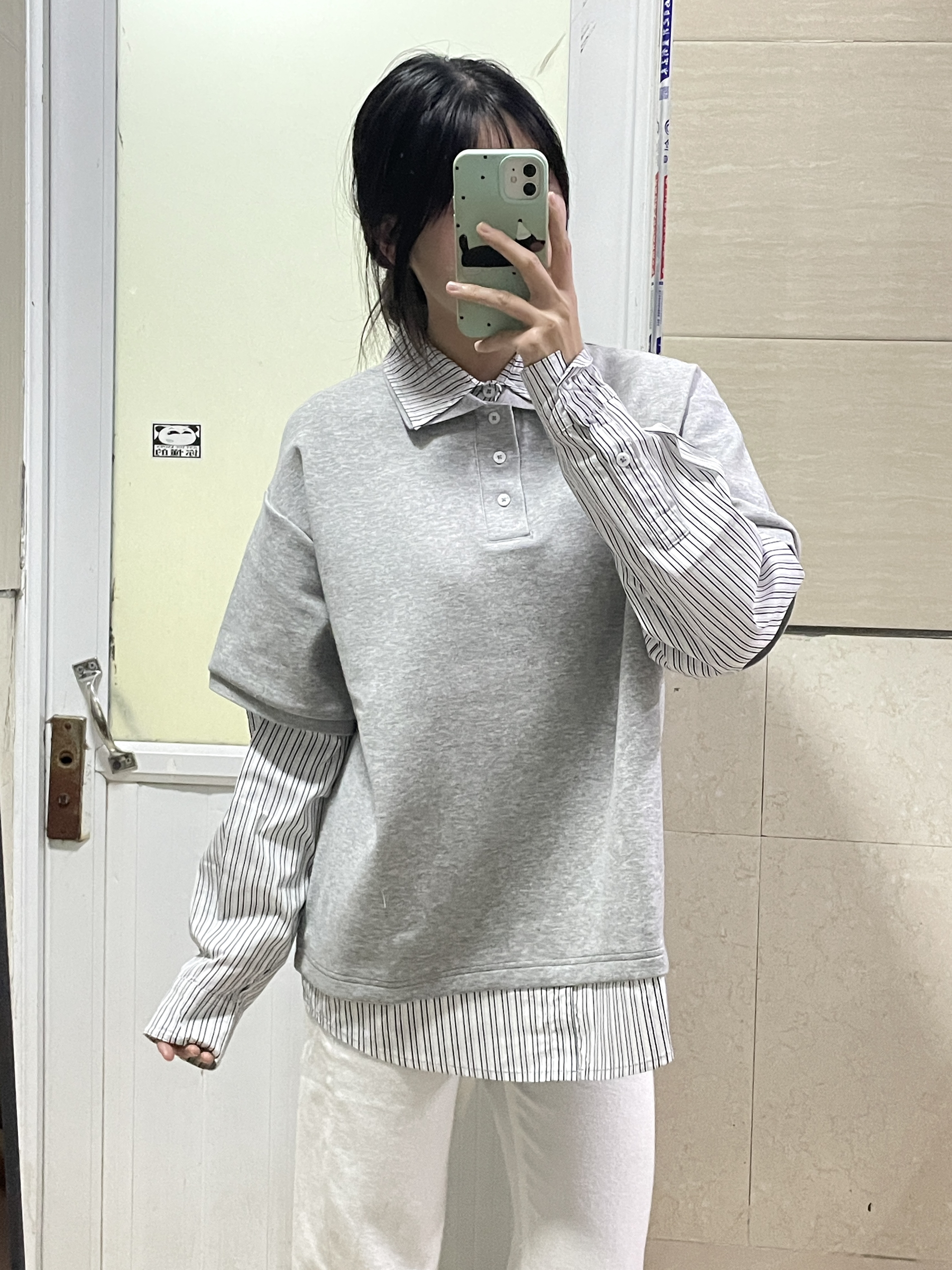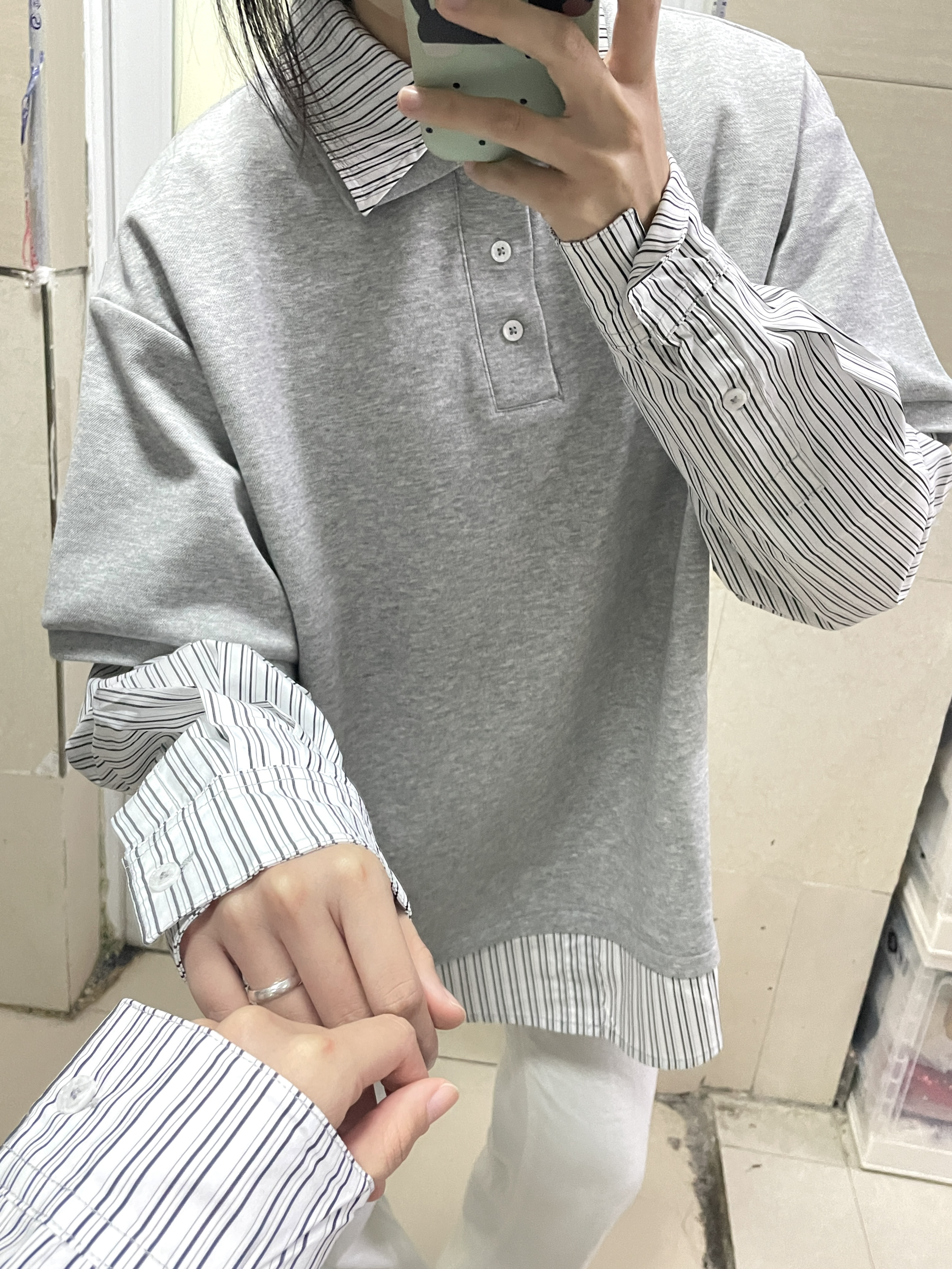 166 102穿的是M码 假两件的拼接真的很好穿啊 搭配牛仔裤少年感满满 而且条纹衬衫真的好穿不腻啊 喜欢的宝宝可以参考一下哦