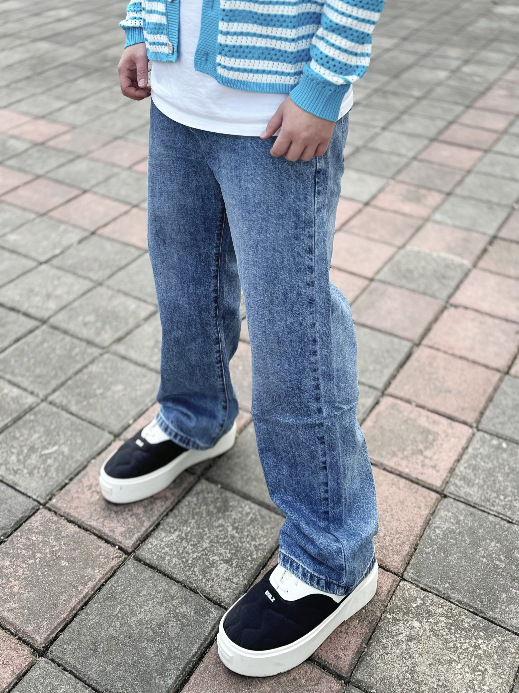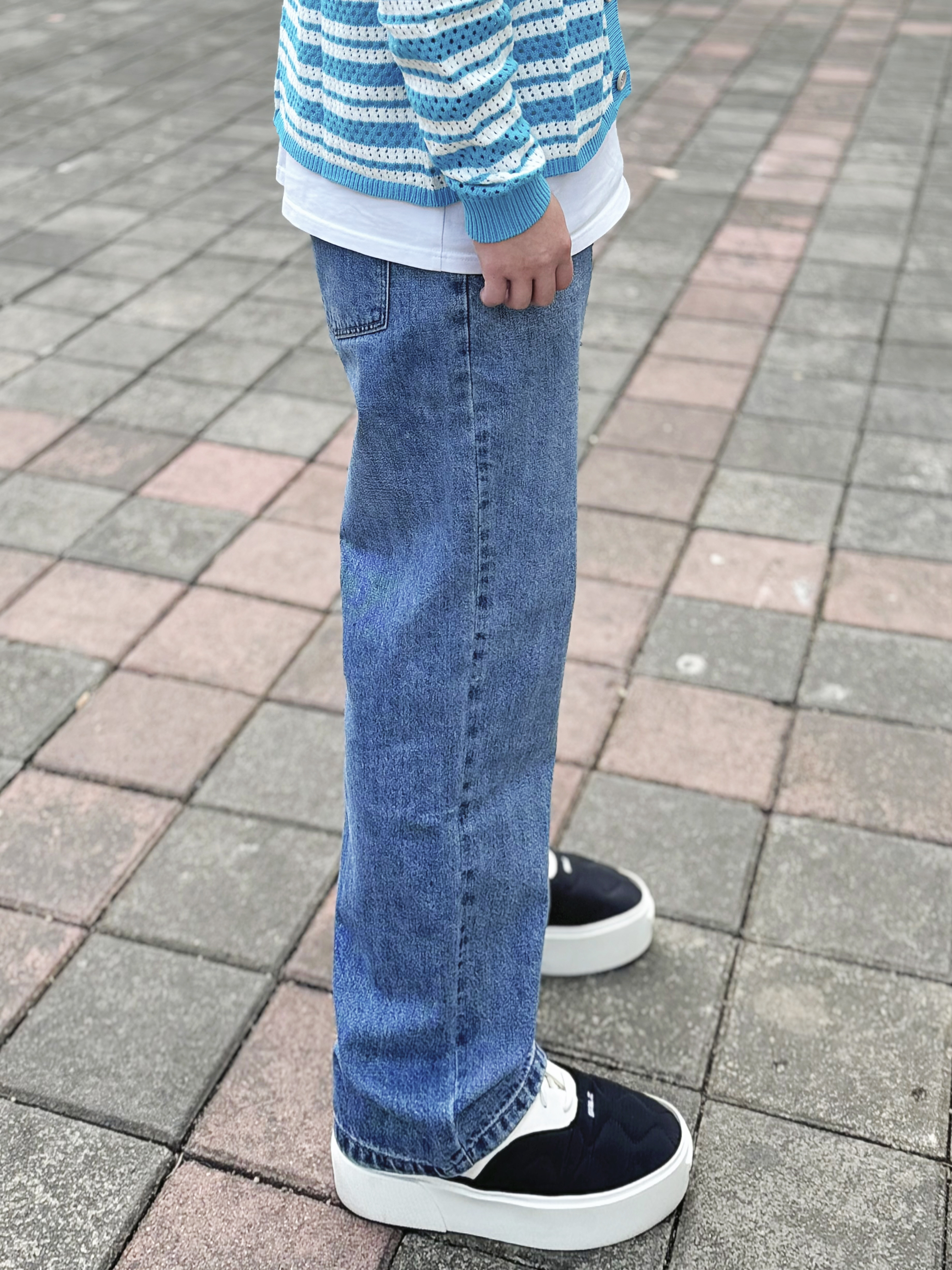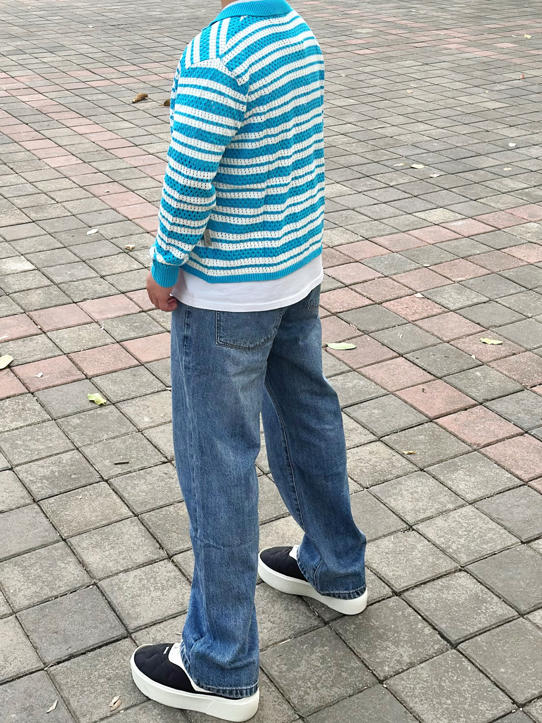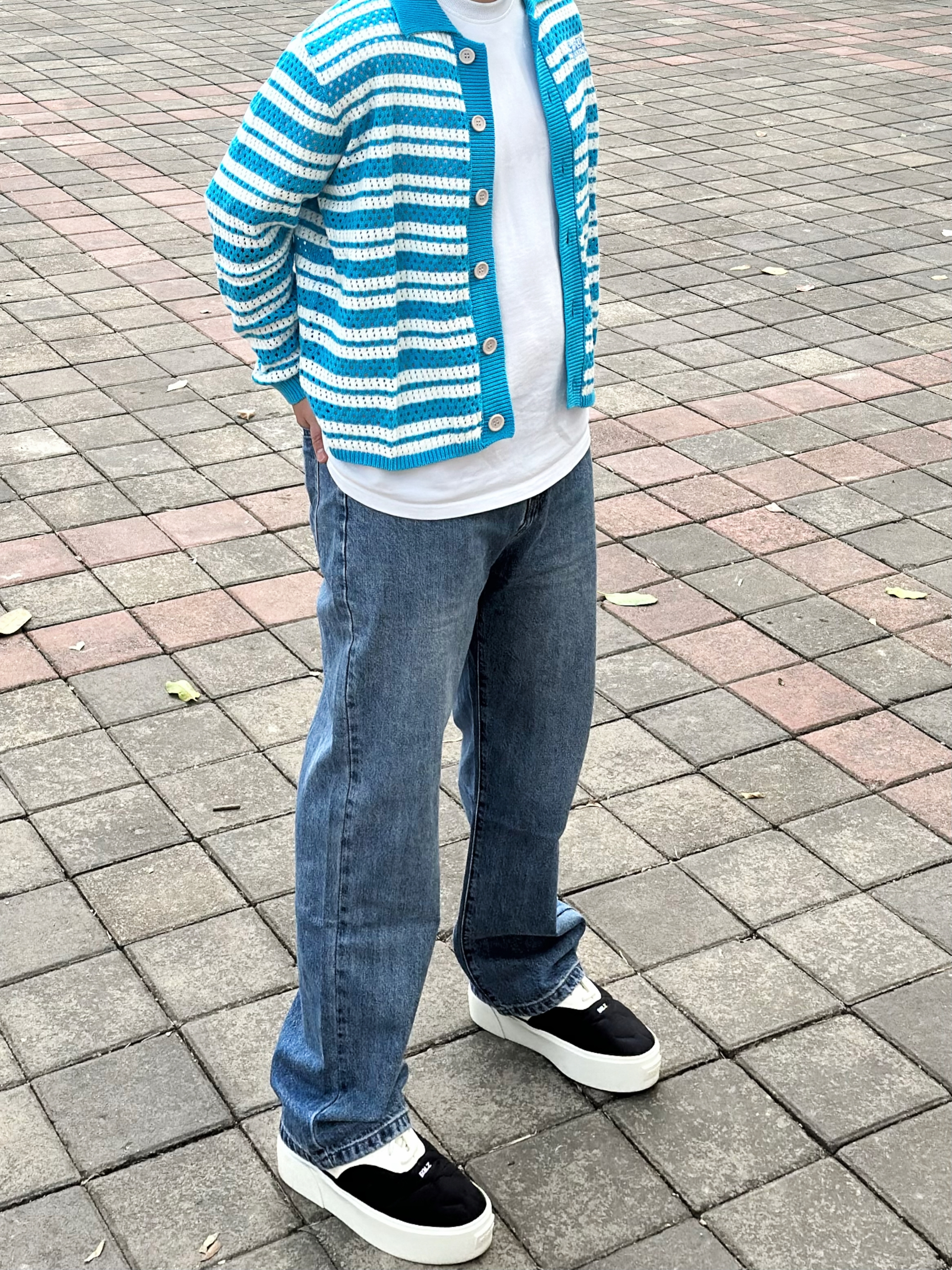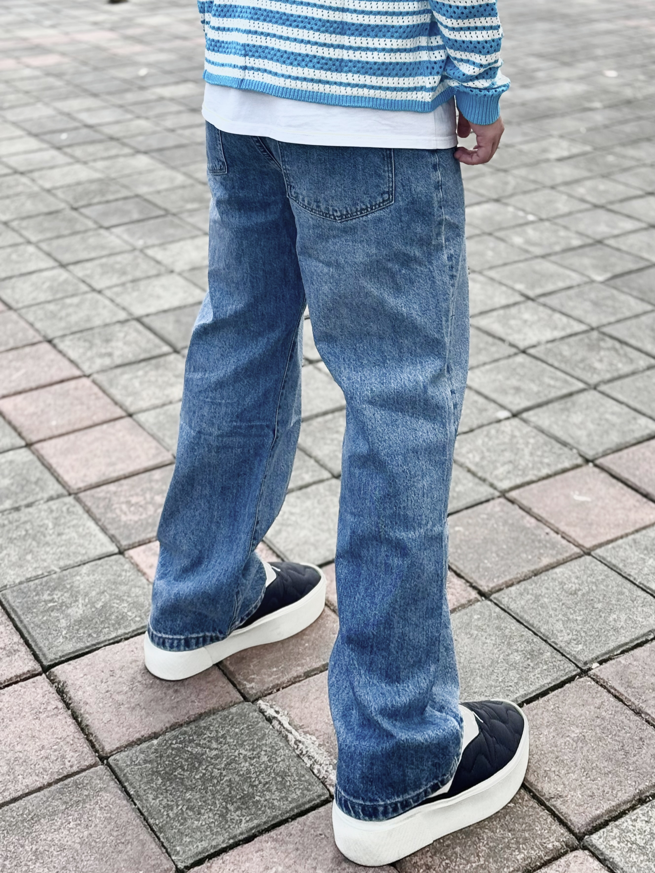 浅色牛仔裤是真真从夏天穿到了冬天 是真的很百搭 !经典又不会轻易过时 版型正垂顺感好 什么腿型都能驾驭 搭配了件蓝色衬衫内搭白色打底衫 最后鞋子搭配一双黑白配色的板鞋 这样穿简单不易出错 !! 身高丨体重丨尺码 : 178丨90kg丨36
