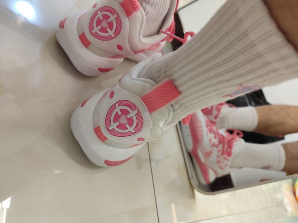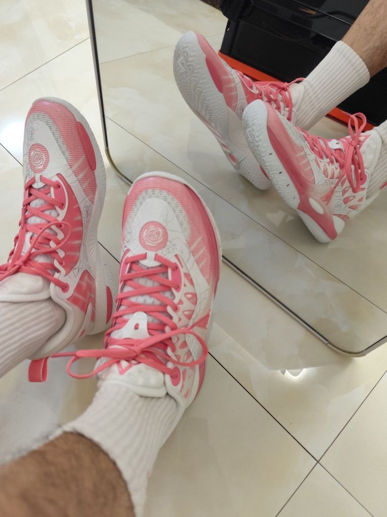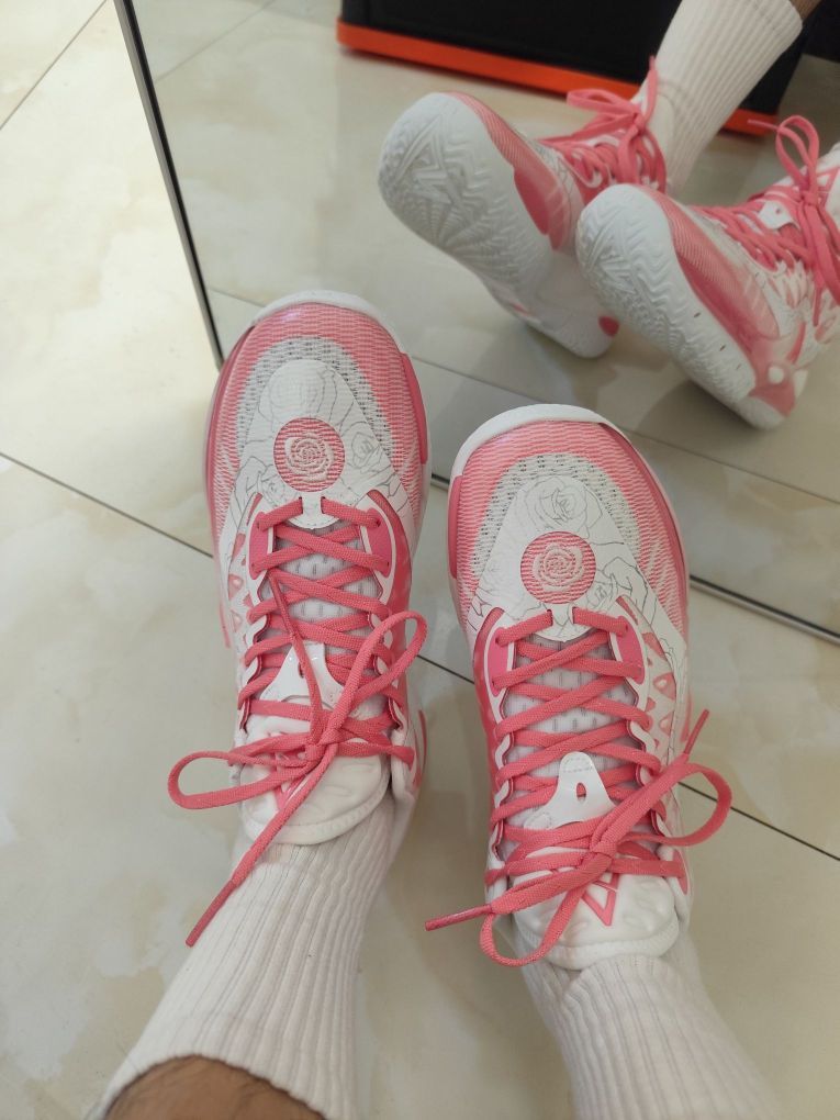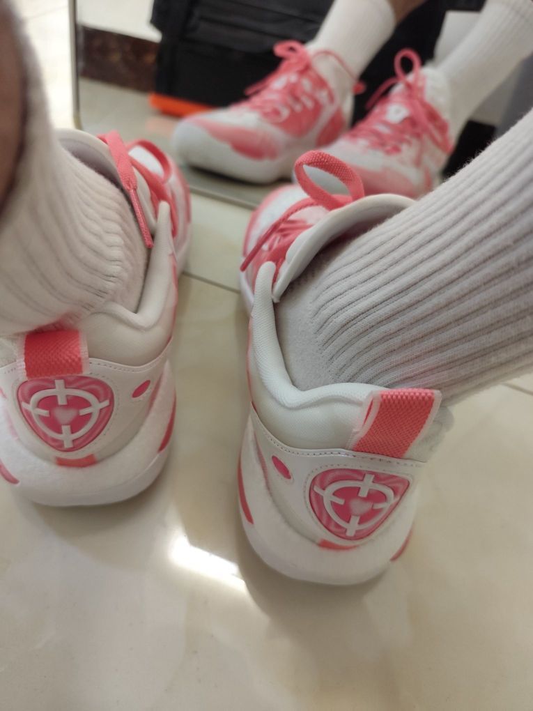 今天试了一下我的粉色篮球鞋, 鞋子好好看,非常百搭, 情人节限定就是不一样![耍帅_blue] 上脚后脚感特别好, 又想打球去了, 到球场秀一圈也不错。[得意_blue]