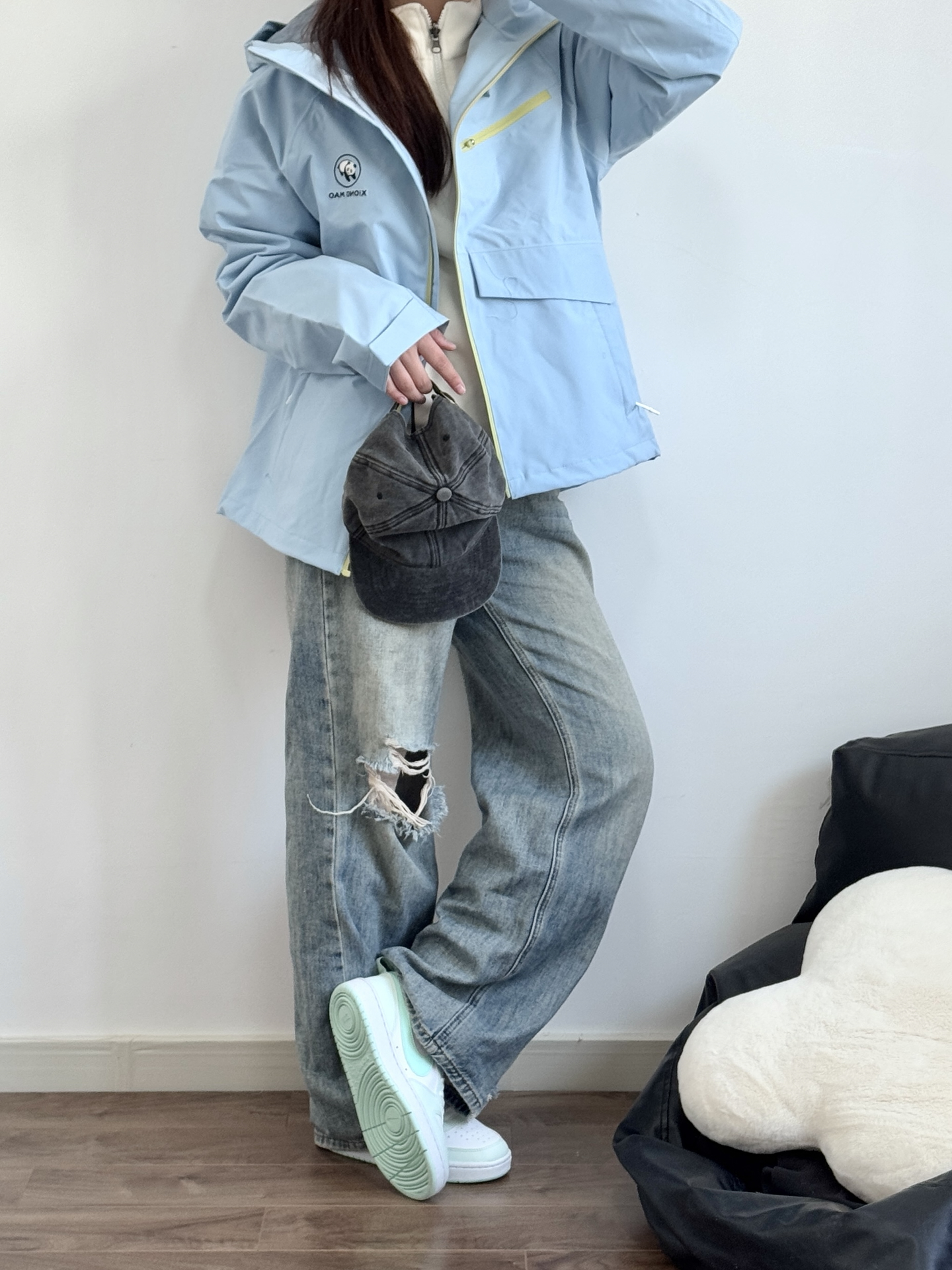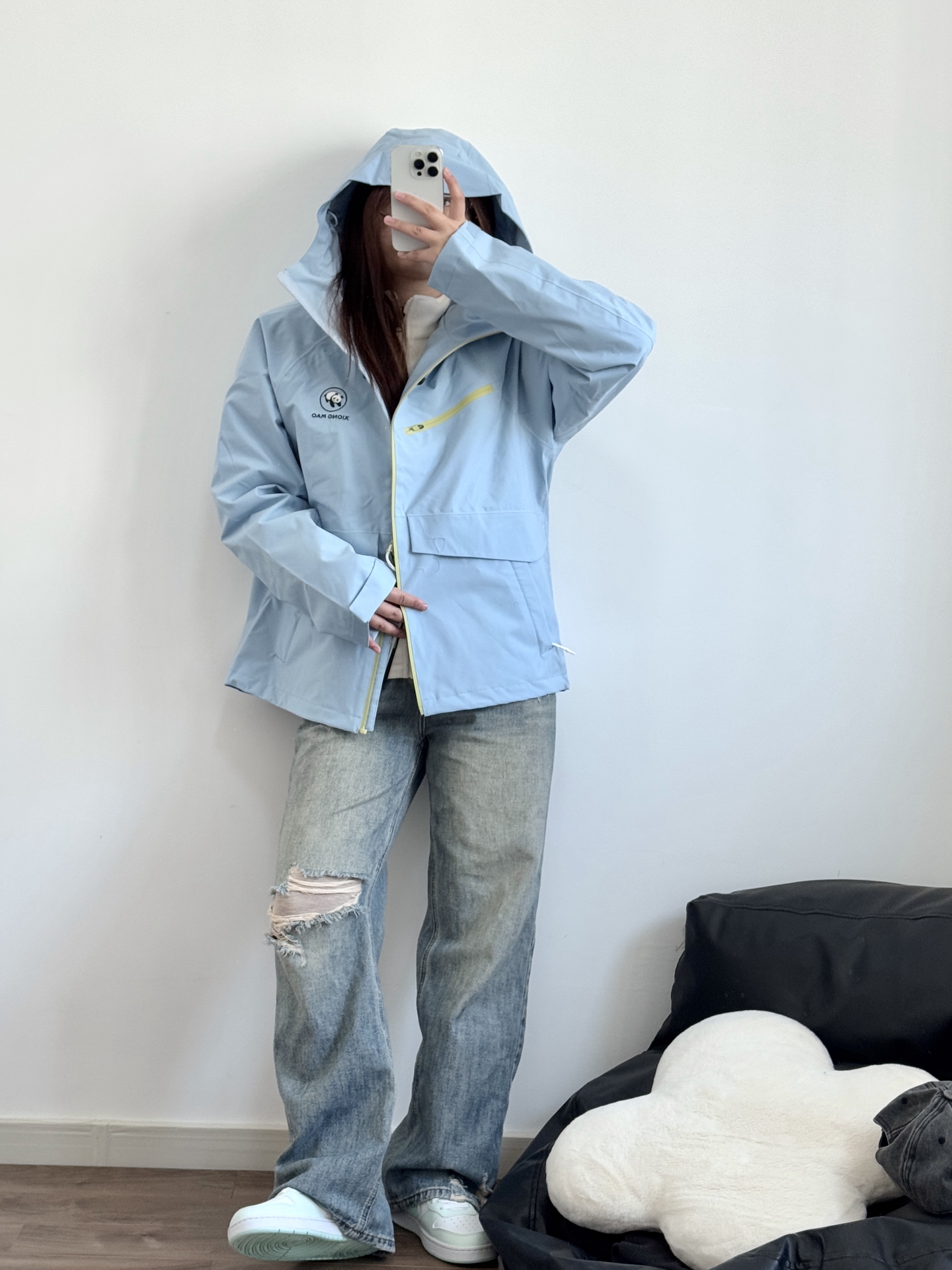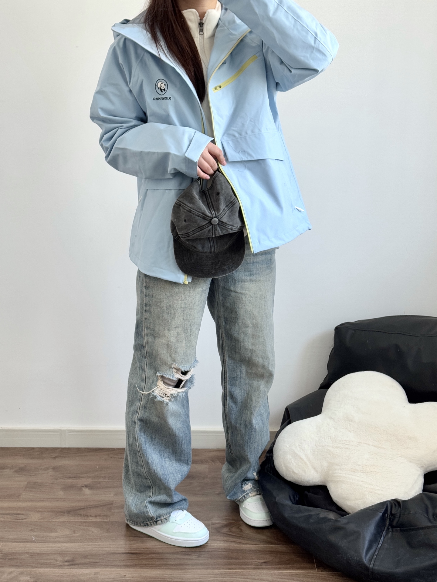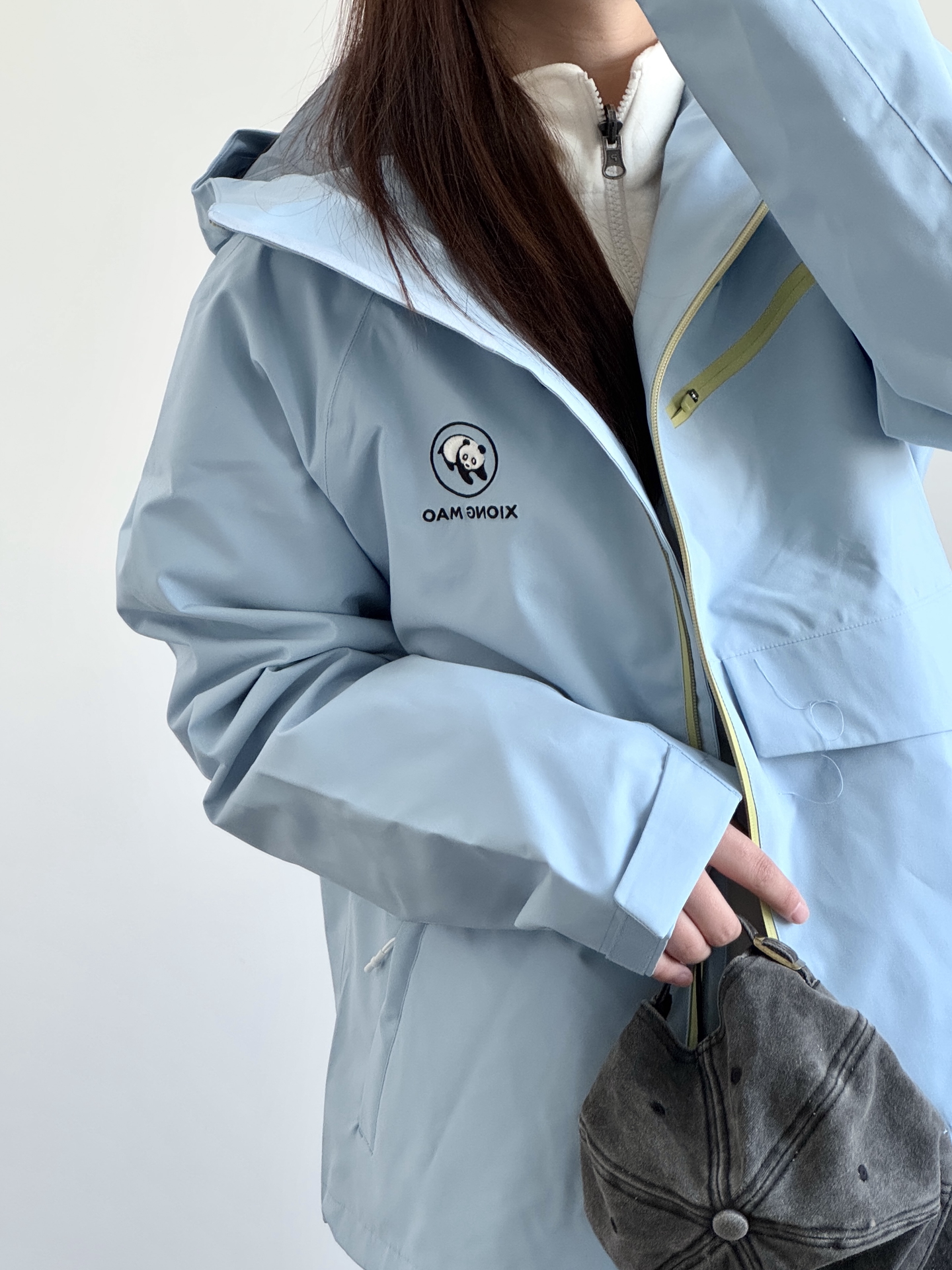今天的蓝色系搭配很好看呀 熊猫硬糖系列冲锋夹克 立挺有型上身好帅气 去户外玩穿这个很合适 日常搭配牛仔裤就很好看! 我穿的M码比较宽松 去踏春我就穿这身啦~