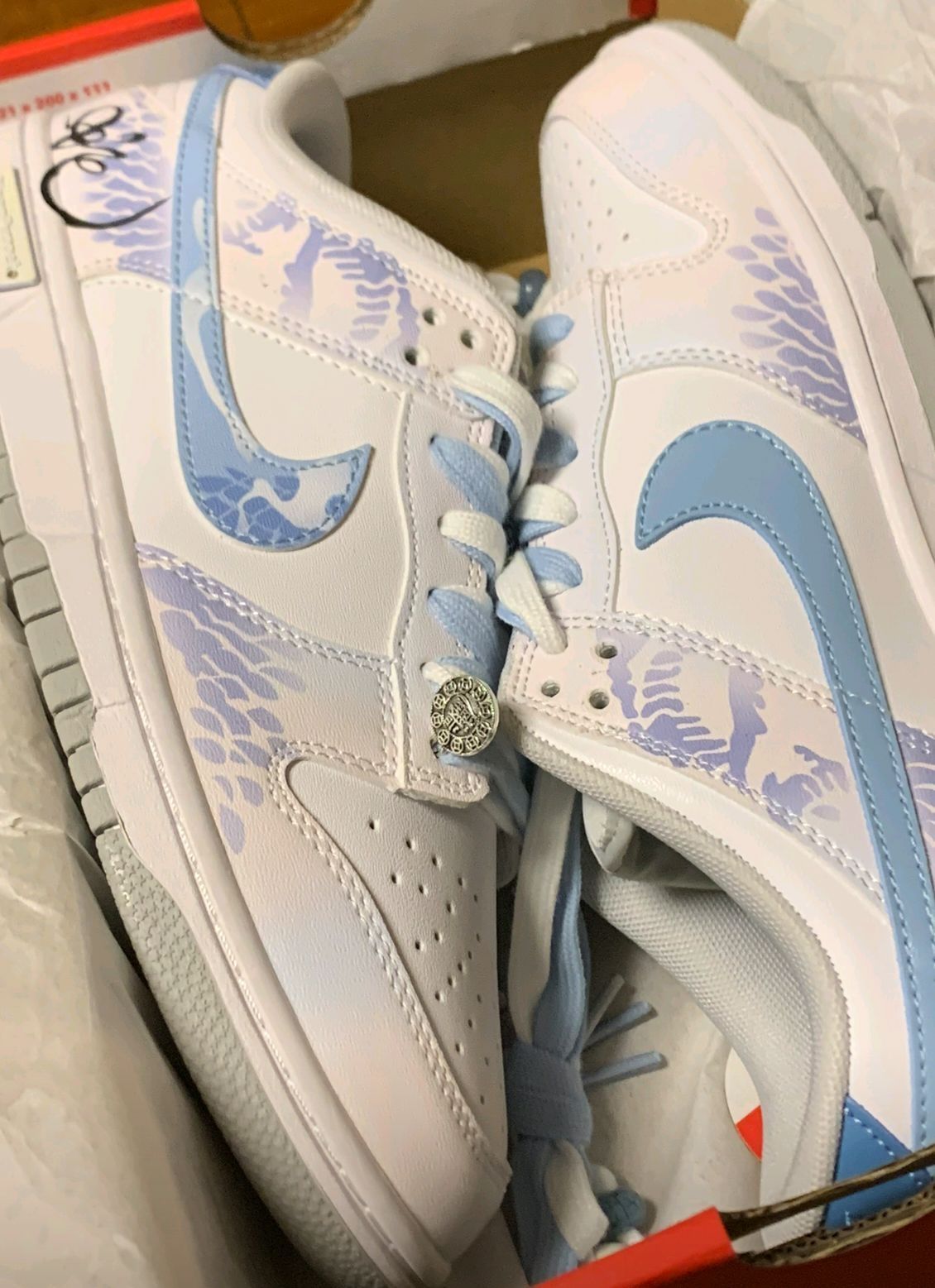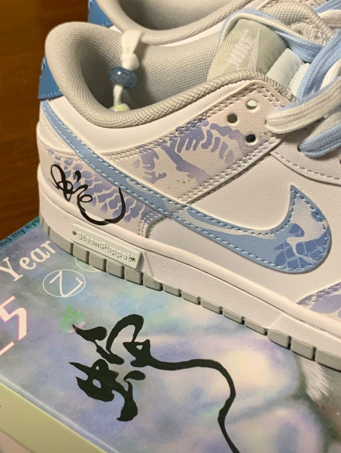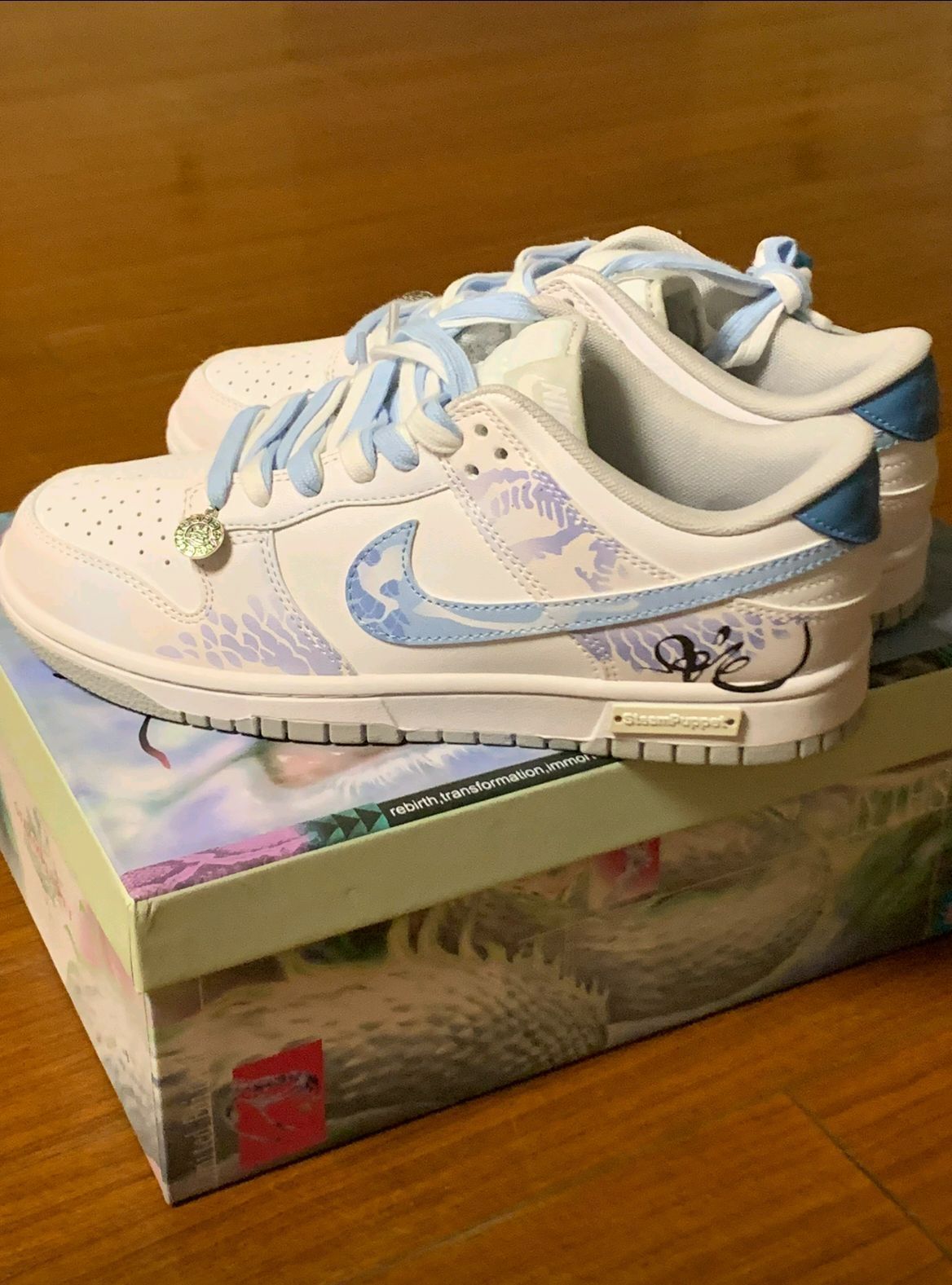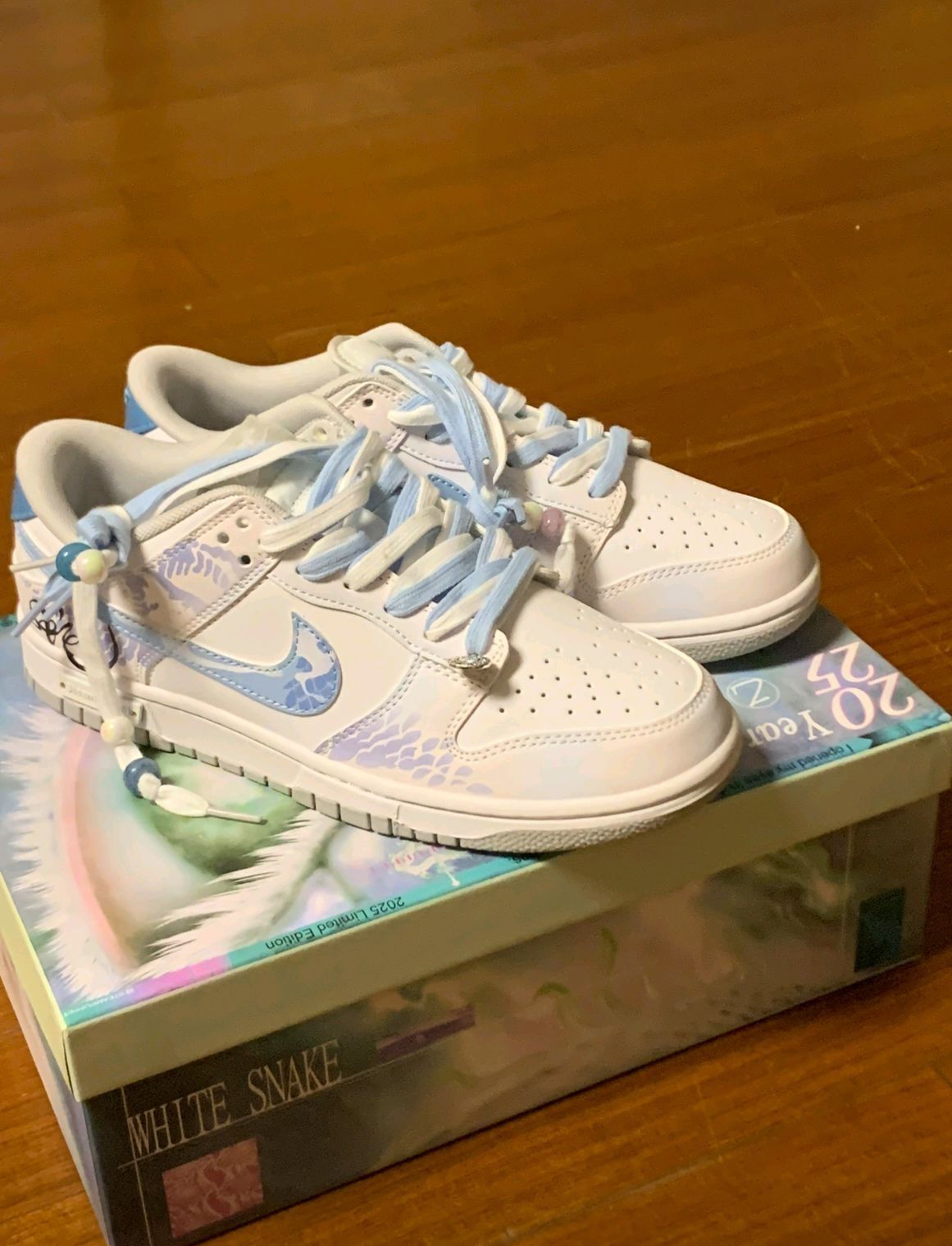 👟球鞋名称:耐克 duck 蛇年定制 🔍分享理由:Nike Dunk CNY蛇年礼盒惊艳开箱!蓝白新中式图腾灵动飘逸,灵蛇刺绣细节满分。低帮版型显腿长,防滑大底稳如磐石,脚感舒适不磨脚,日常穿搭国潮范儿十足,收藏或自穿都超值! 🤔整体感受:我觉得脚感可以,舒舒服服的。