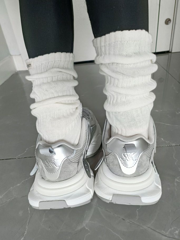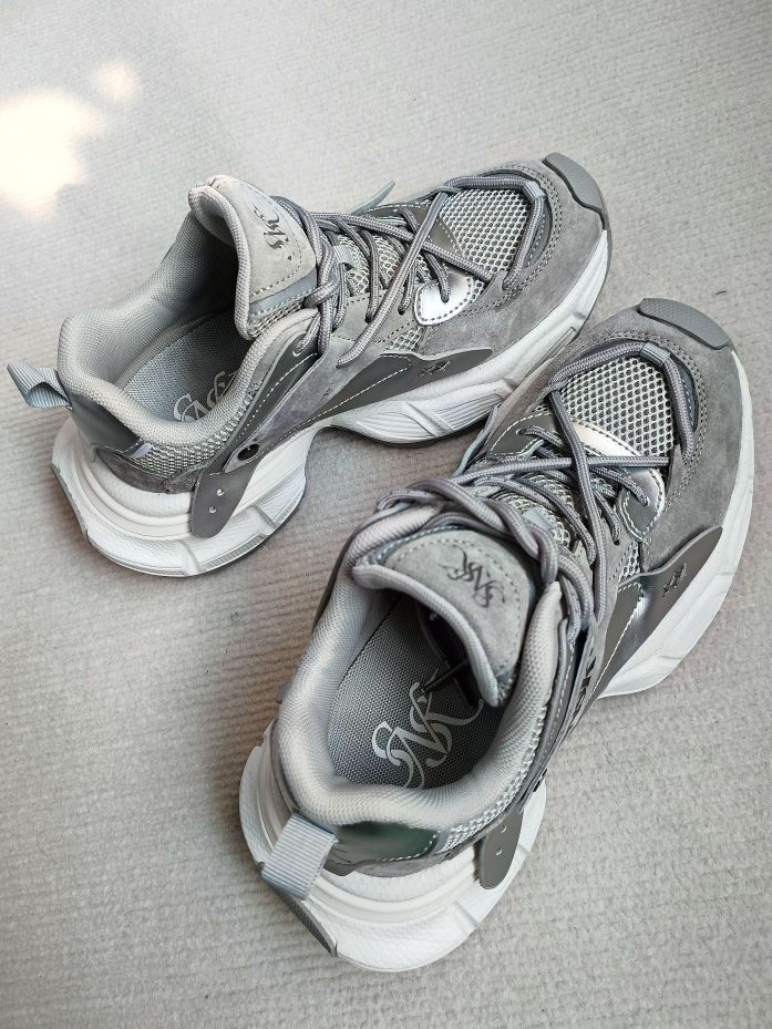 真的好喜欢这双老爹鞋 高级灰配色显高级 自带科技感 鞋底不软也不硬 上脚脚感很好 厚底增高款 对小个子很友好 可以搭配休闲裤 牛仔裤 小短裙 都很适合 休闲风 运动风都能拿捏住 学生党日常通勤穿都很适合