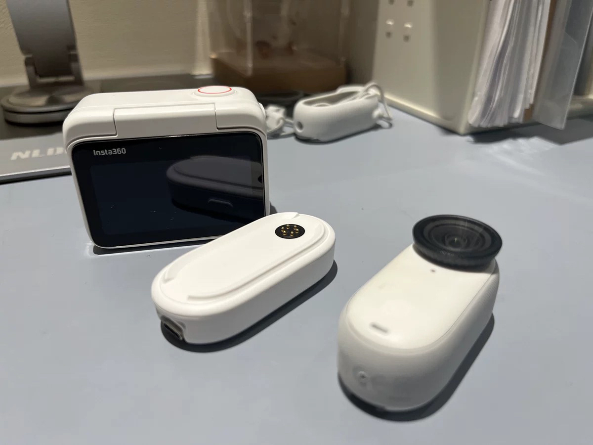 • 外观设计:机身小巧,仅重39克,和拇指差不多大,加上拓展舱也才135克。相机本体支持10米防水,背部自带磁吸,还新增了纹理握把,便于手持。