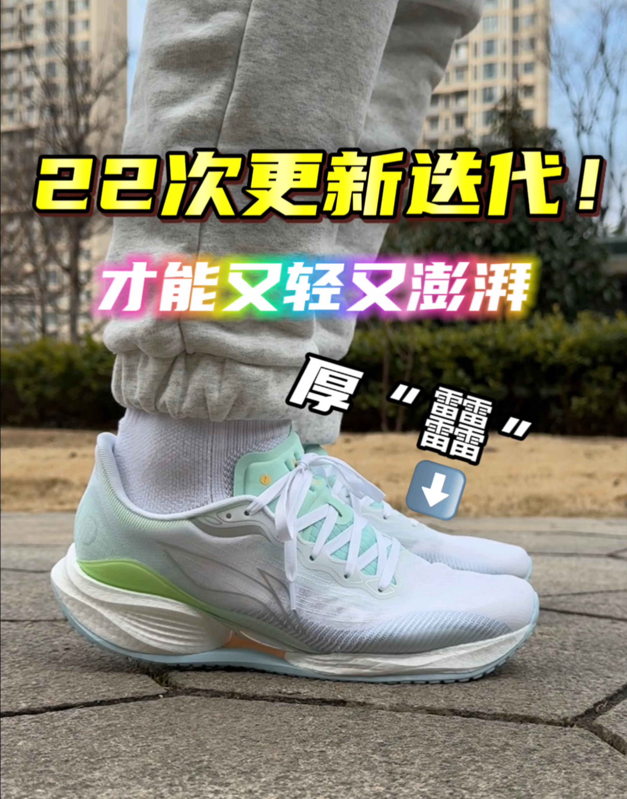 适合大多数人的慢跑鞋 超轻22~清新颜值的白灰绿色活力满满🌟 实战中的脚感轻盈,灵活,软弹是恰到好处的! 比较适合5km以下的慢跑和通勤!不建议竞速和马拉松穿,尺码标准正常选择。