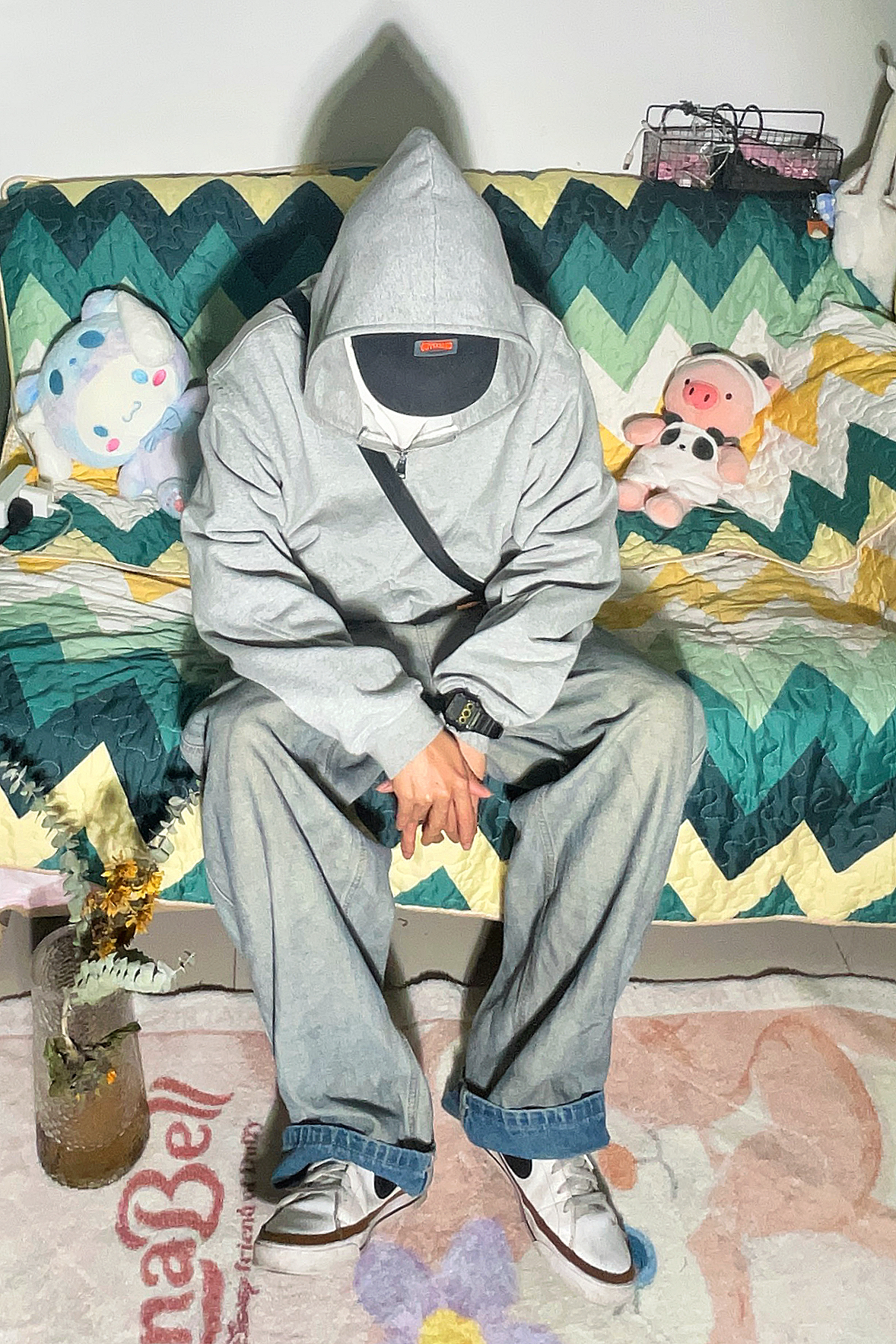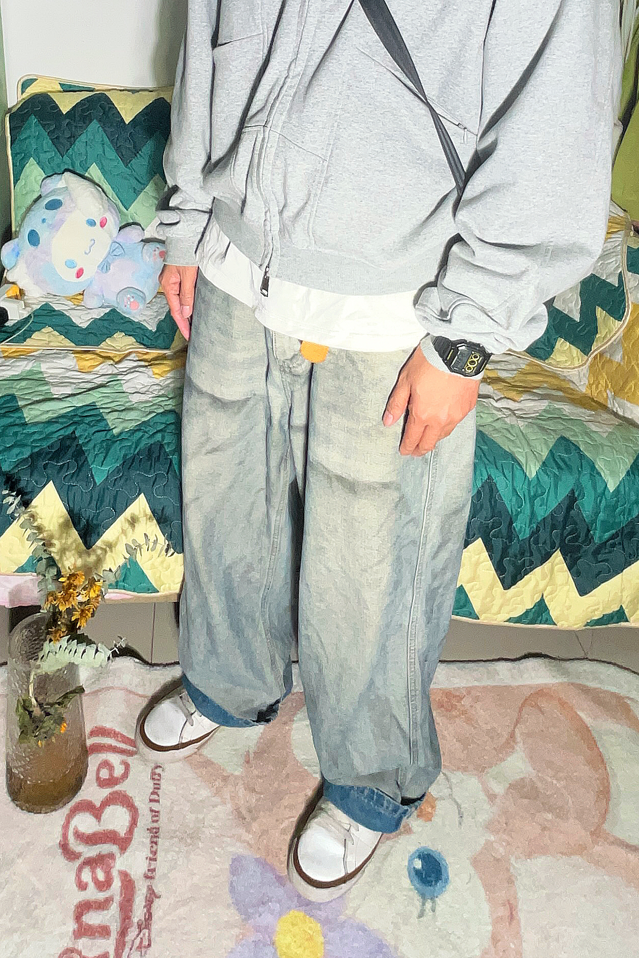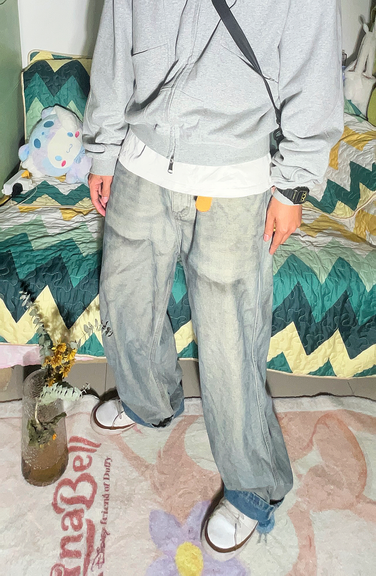 说到少年肯定是少不了阳光、开朗、干净,所以这次我们丢掉复古、黑灰这些暗调色系,选择浅灰色,白色撞色穿出少年感! 这里上半身选择一条阔形的短款连帽卫衣,内搭白色T恤 这里我们白色T恤要露出一小截来衔接裤子和衣服的层次感避免一身灰容在一起 下半身选择一条灰色的脏脏阔腿裤,既不会过于单调朴素,也不会过于花哨。 这样就把我们需要的干净,阳光的感觉穿出来啦~