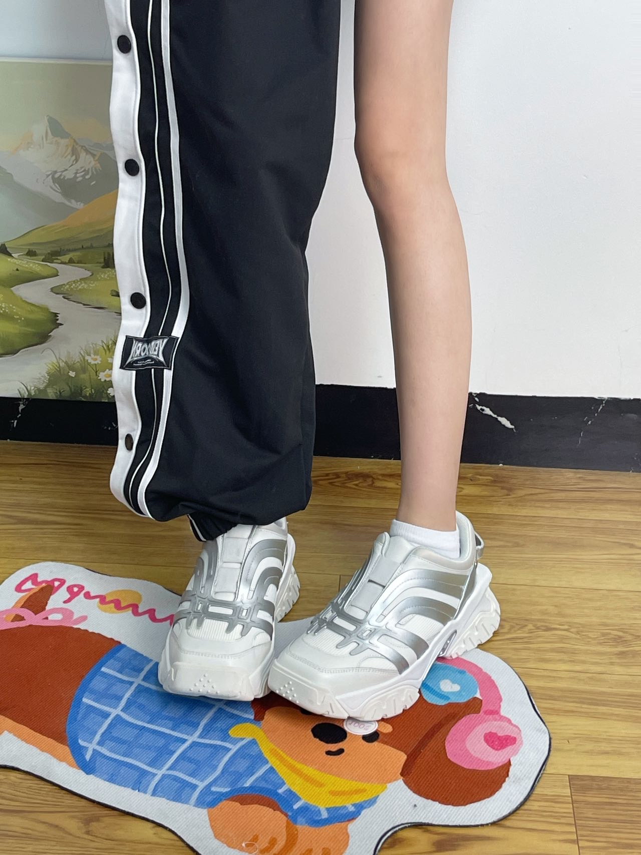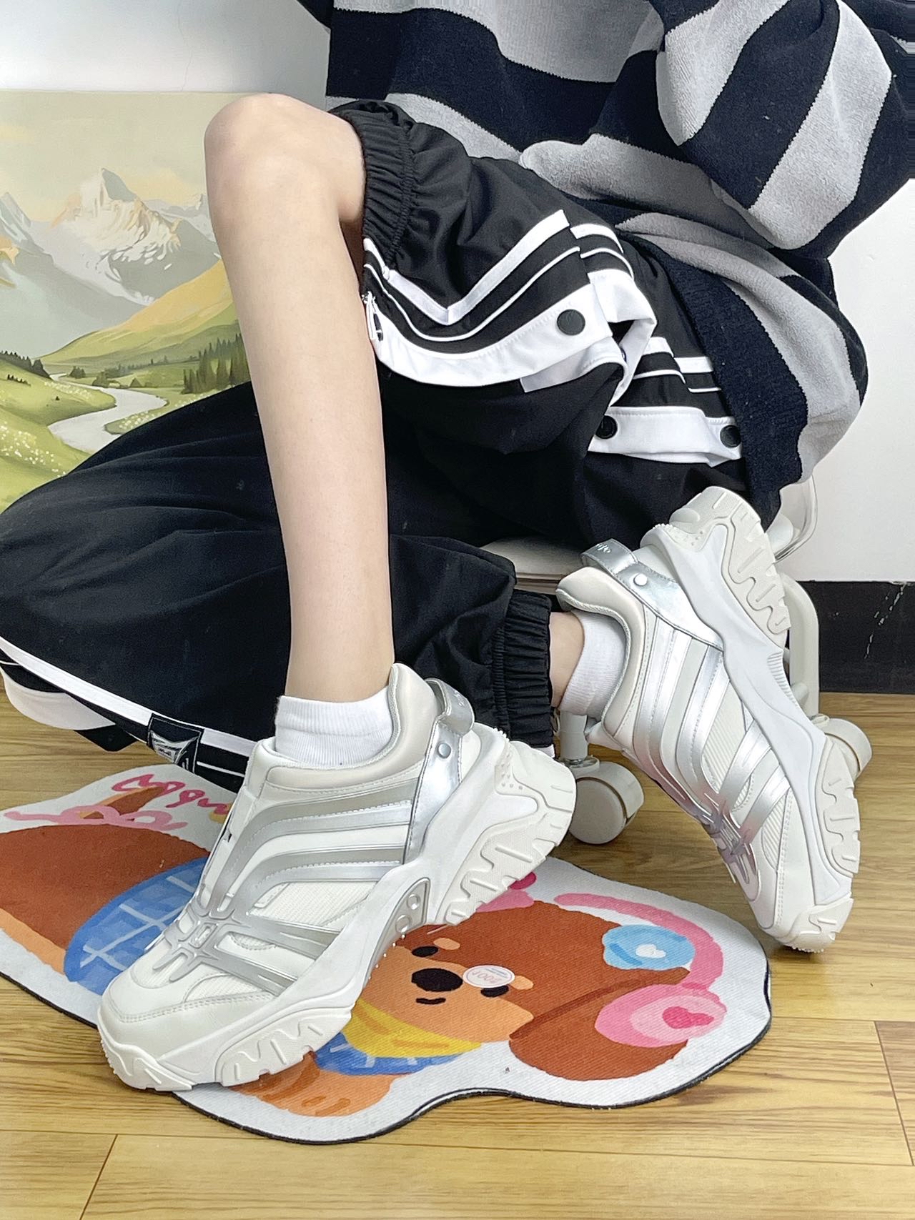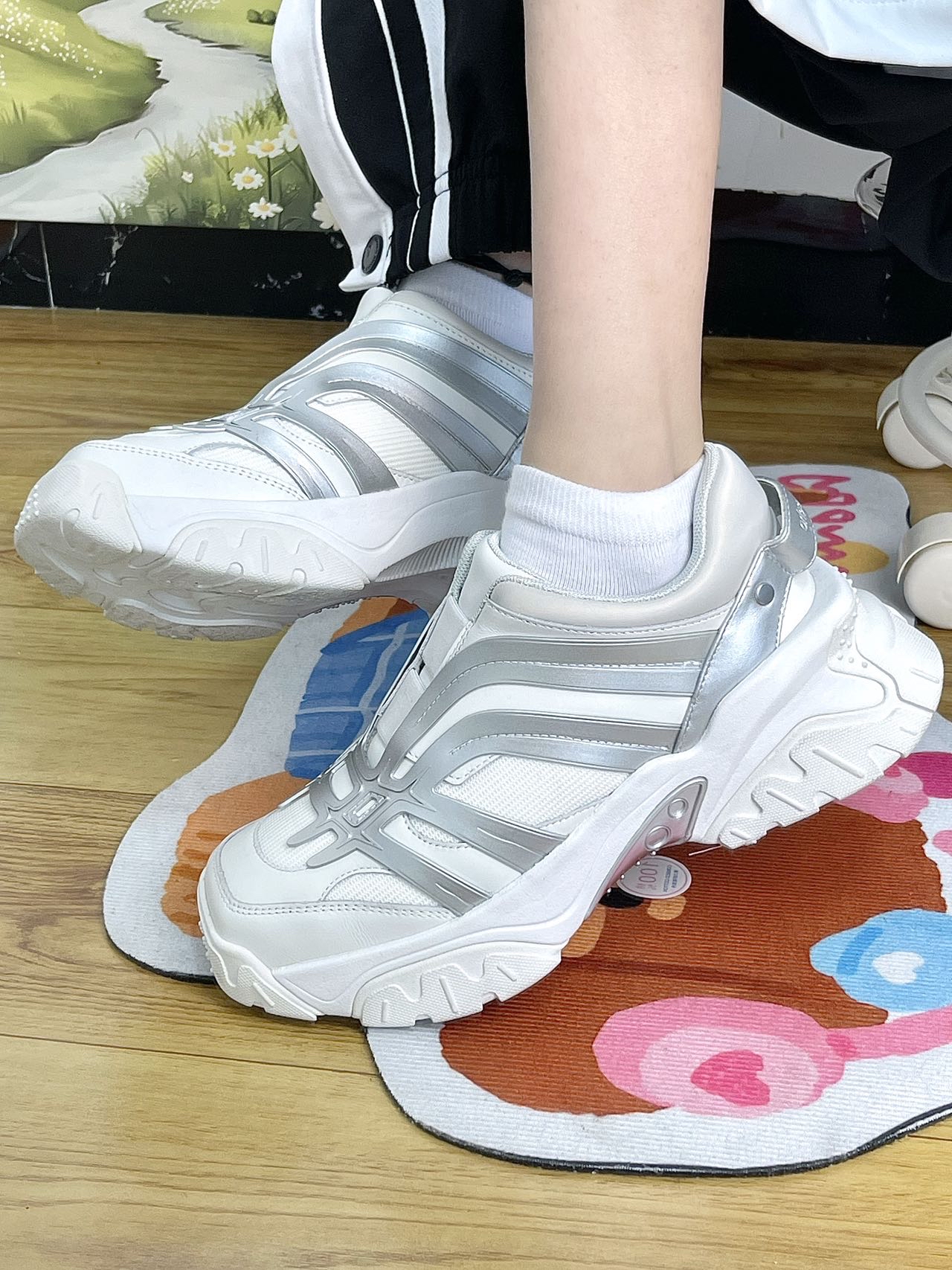今天给家人们看看这款lostinecho家的鞋 鞋身设计比较精致 银白线条搭配 🧊 鞋子的设计风格偏复古 很个性时尚哦~ 自带清透感 鞋子上脚轻巧 免鞋带的设计十分方便 这款比较适合搭配休闲装 ☕️ 鞋码很正 都不会偏大偏小 赵丽颖、孟子义、李斯丹妮等明星都穿过👍 cho 爹鞋 闲鞋