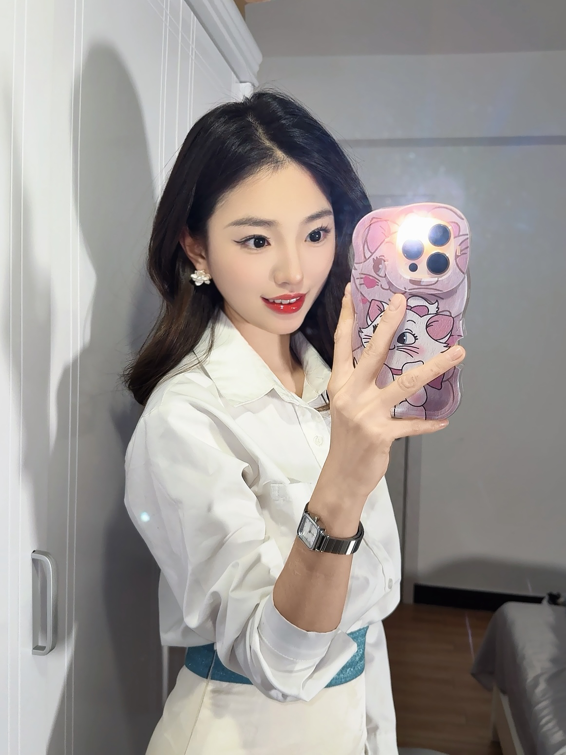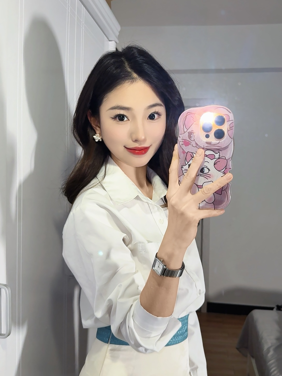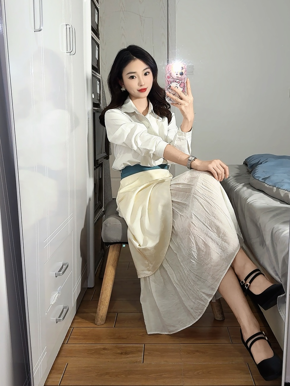 ✨ 职场女神气质穿搭大揭秘,轻松穿出优雅感! ✔ 经典白色衬衫:简约又有气质,职场必备单品,谁穿谁自信! ✔ 高腰设计:完美拉长腿部线条,打造完美身形,告别臃肿! ✔ 蓝色腰带:巧妙勾勒腰线,尽显纤细腰身,瞬间提亮整体造型! ✔ 黑色细高跟:优雅又不失干练,增添几分职场气场,轻松配搭职场穿搭! 💎 细节决定成败,搭配珍珠耳环,职场形象更精致,精致感UP! ✔ 精致手机壳,让你在职场中散发个性与时尚...