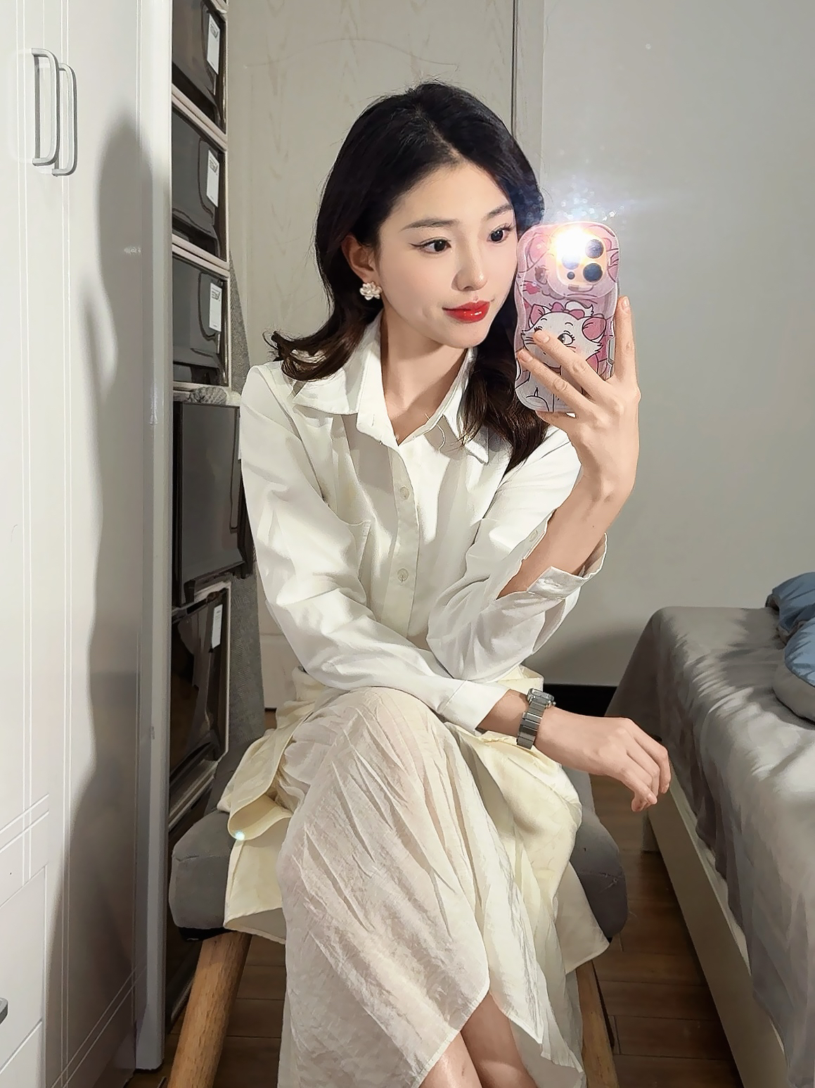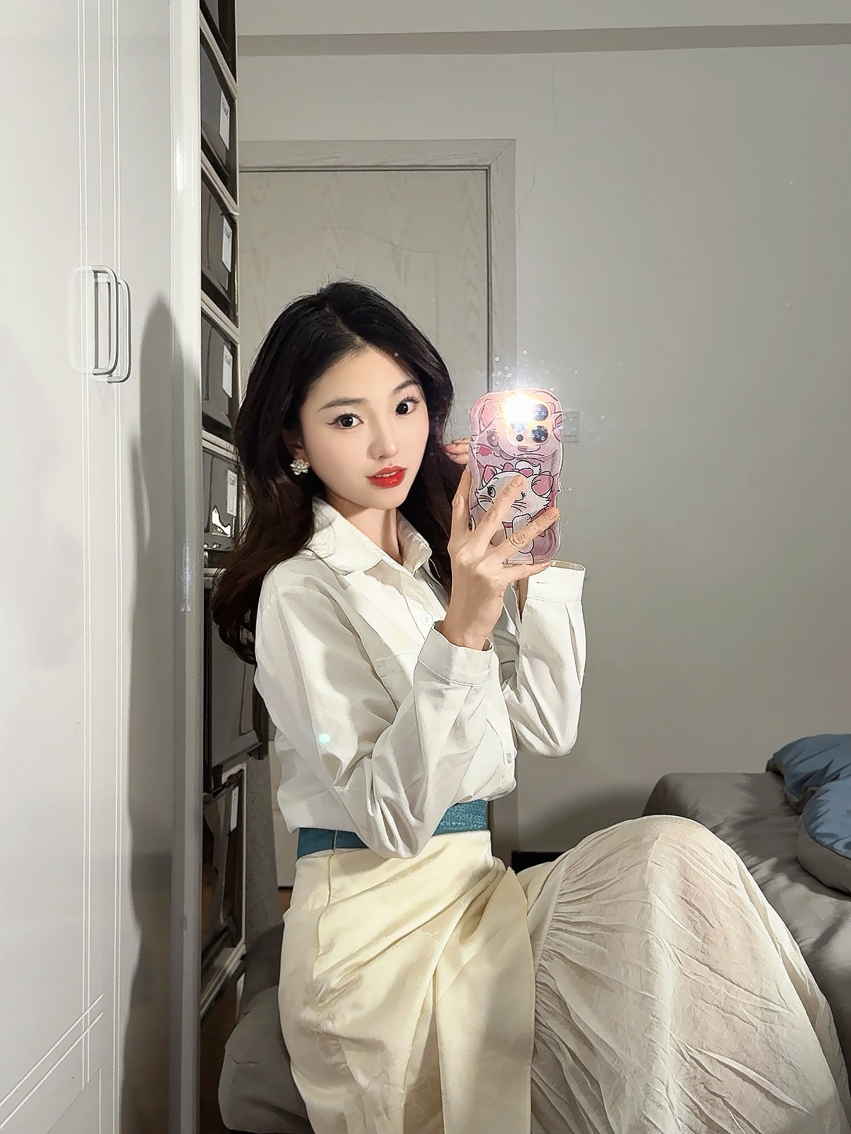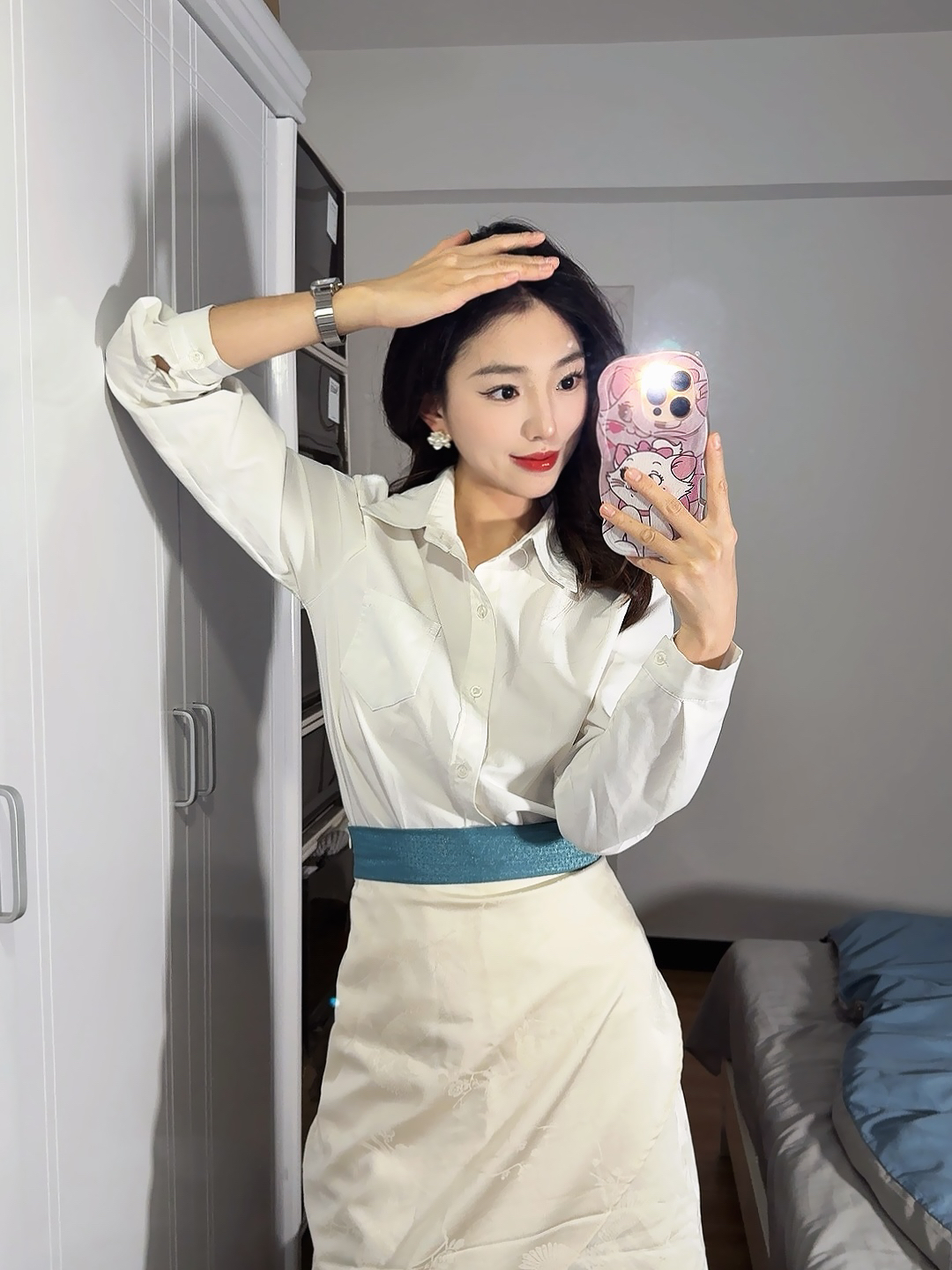 ✨ 职场女神气质穿搭大揭秘,轻松穿出优雅感! ✔ 经典白色衬衫:简约又有气质,职场必备单品,谁穿谁自信! ✔ 高腰设计:完美拉长腿部线条,打造完美身形,告别臃肿! ✔ 蓝色腰带:巧妙勾勒腰线,尽显纤细腰身,瞬间提亮整体造型! ✔ 黑色细高跟:优雅又不失干练,增添几分职场气场,轻松配搭职场穿搭! 💎 细节决定成败,搭配珍珠耳环,职场形象更精致,精致感UP! ✔ 精致手机壳,让你在职场中散发个性与时尚...