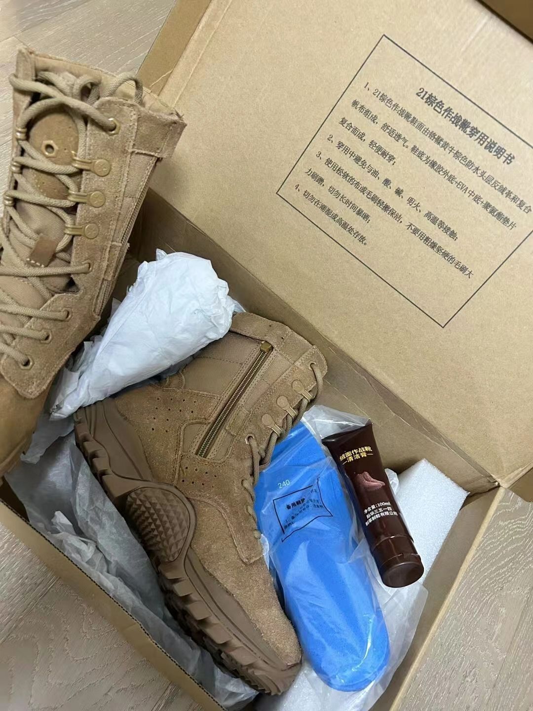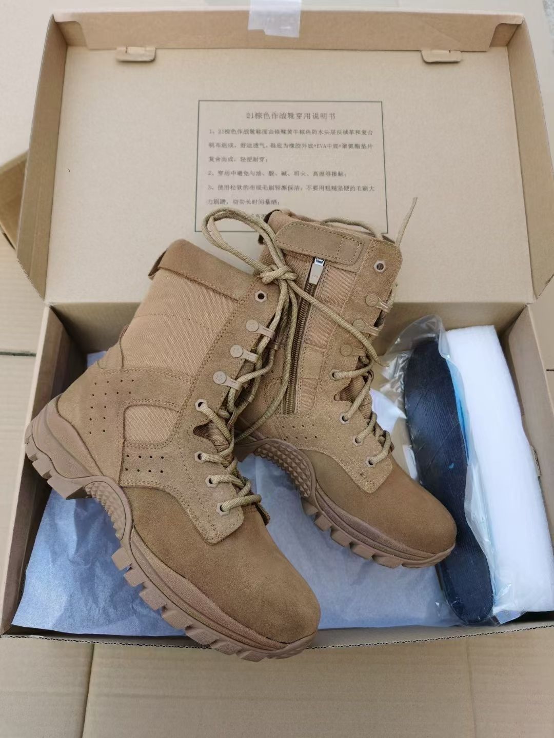 👟 鞋子:21式作战靴 鞋面部分:整体鞋面采用的皮革制成鞋绑部分采用的编制面料,鞋头做了加强增加防撞,磕碰。一体式鞋舌在沙漠和戈壁环境下也可以很好的防住风沙,鞋舌的厚度也增加了许多舒适性。高邦的鞋身后跟内侧有拉链,穿脱更加的方便,需要注意的是拉链上方的小魔术贴容易出问题。多组鞋带孔可以自由调节,鞋带强度也是比较不错的。鞋面也是可以防一点水的。 中底部分:中底采用了eva并且还嵌入了超临界材料在...