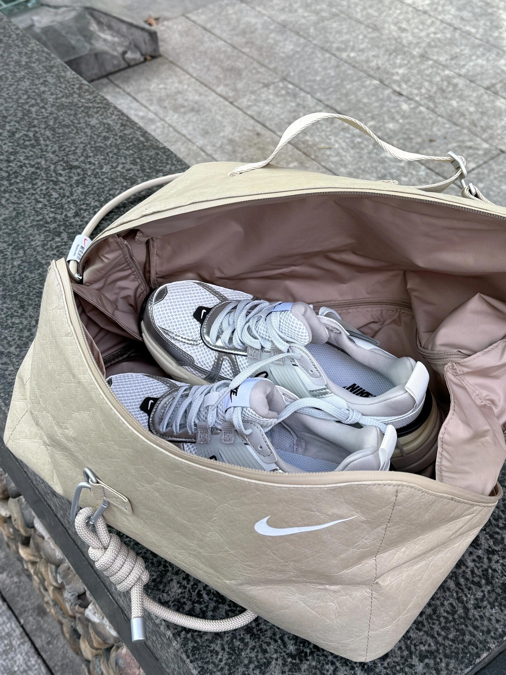 本篇笔记关联了Nike 情侣款时尚百搭便携拉链开合杜邦纸单肩手提包 浅骨灰白 BG0470-200等商品,为用户提供真实的使用体验和购买参考。