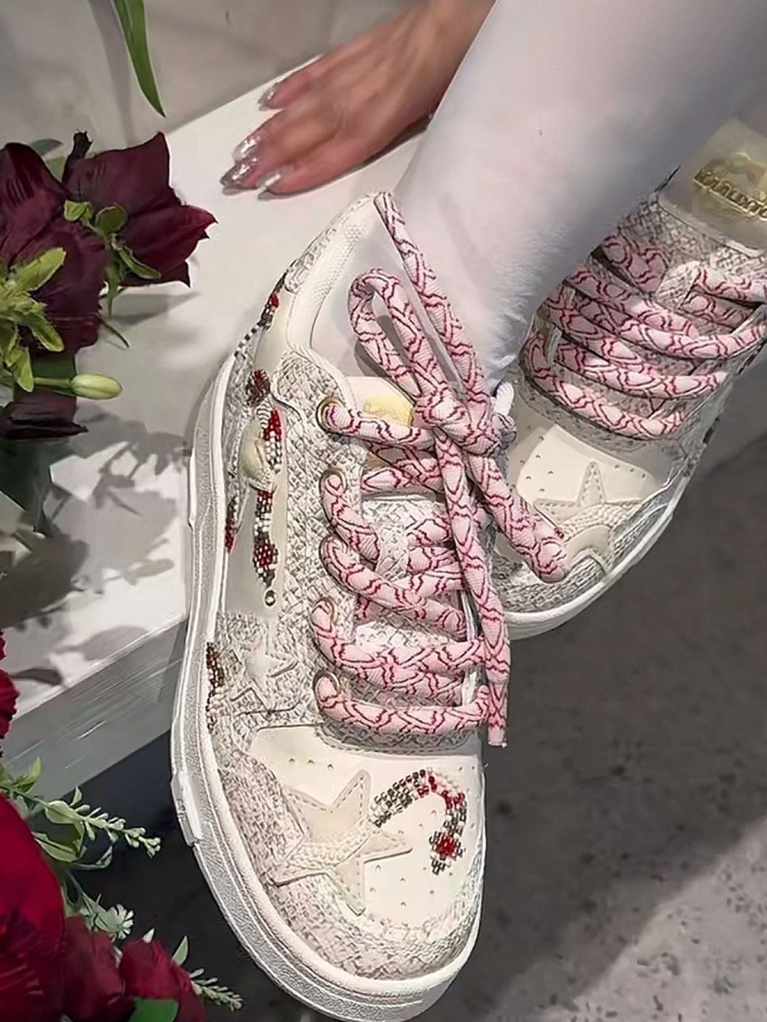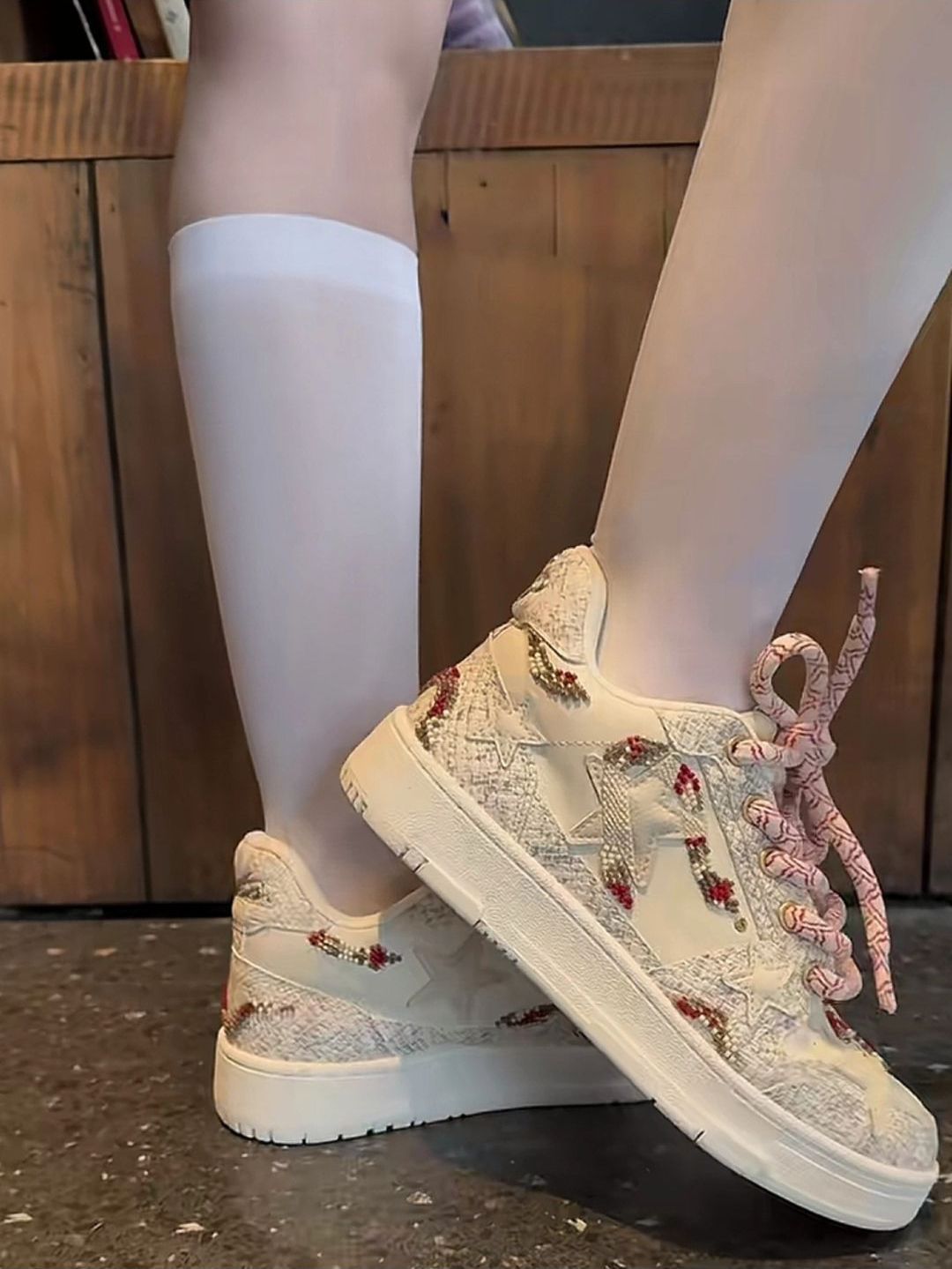 【穿搭篇】 作为每天要赶八节课的工科生,这双低帮板鞋简直是救星。配阔腿牛仔裤时我会卷起裤脚,露出脚踝上细链银饰;遇上卫衣+针织裙的组合就正常穿,鞋带随意散开反而有种慵懒感。上周末去音乐节试穿了短款皮裙,走动时真的有被男生要微信的困扰(虽然最后发现他只是要链接)。 最惊喜的是这双鞋的包容性,我162cm穿39码刚好,室友158cm穿38码也完全没问题。搭配oversize西装外套会有种甜酷感,最...