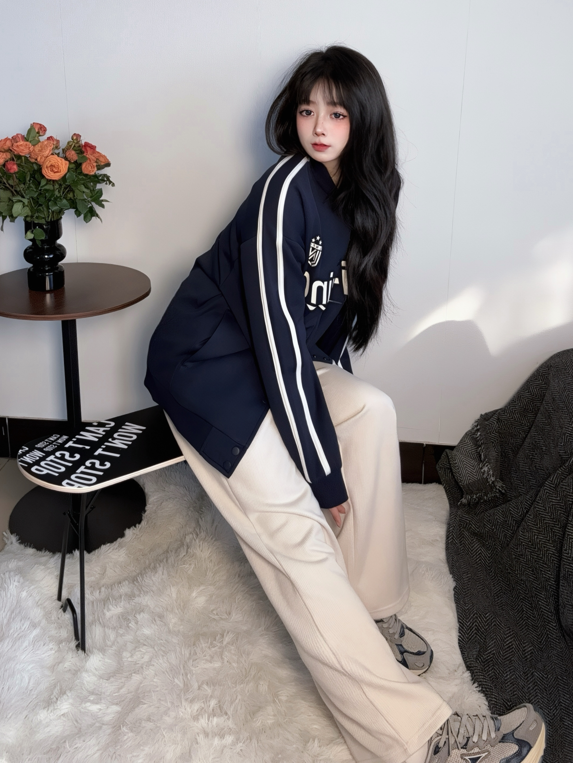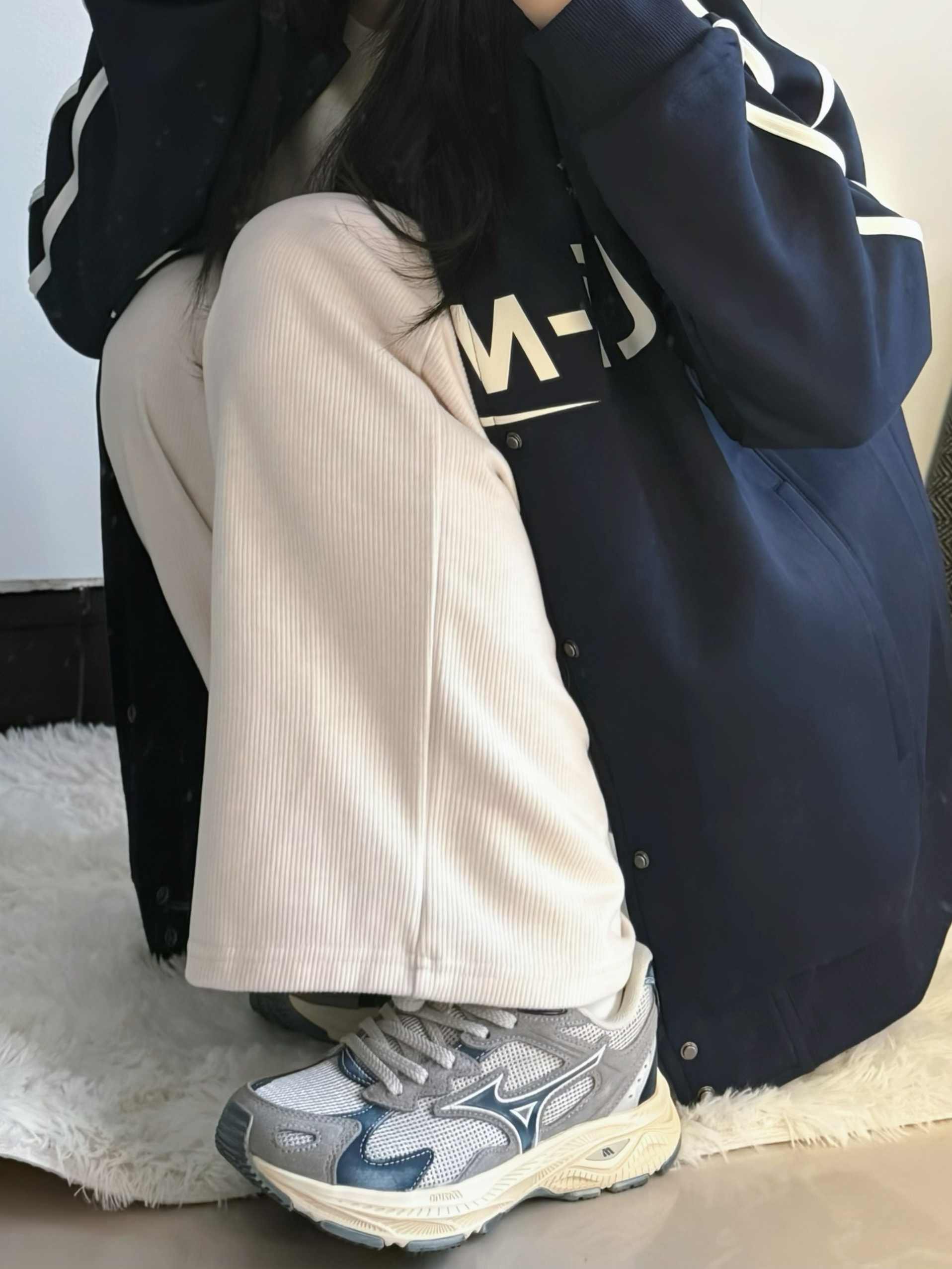 休闲的开衫卫衣外套 藏蓝很显白只有基础的线条印花 偏中性的款式比较休闲 - 脚感舒服的做旧设计感跑鞋很个性 鞋面也是网面处理的比较透气 灰蓝搭配的很高级的feel 跑步🏃🏻♀️穿完全OK 只要颜值日常也好看呀 🔻 参考尺码:168cm60kg M码 鞋正码