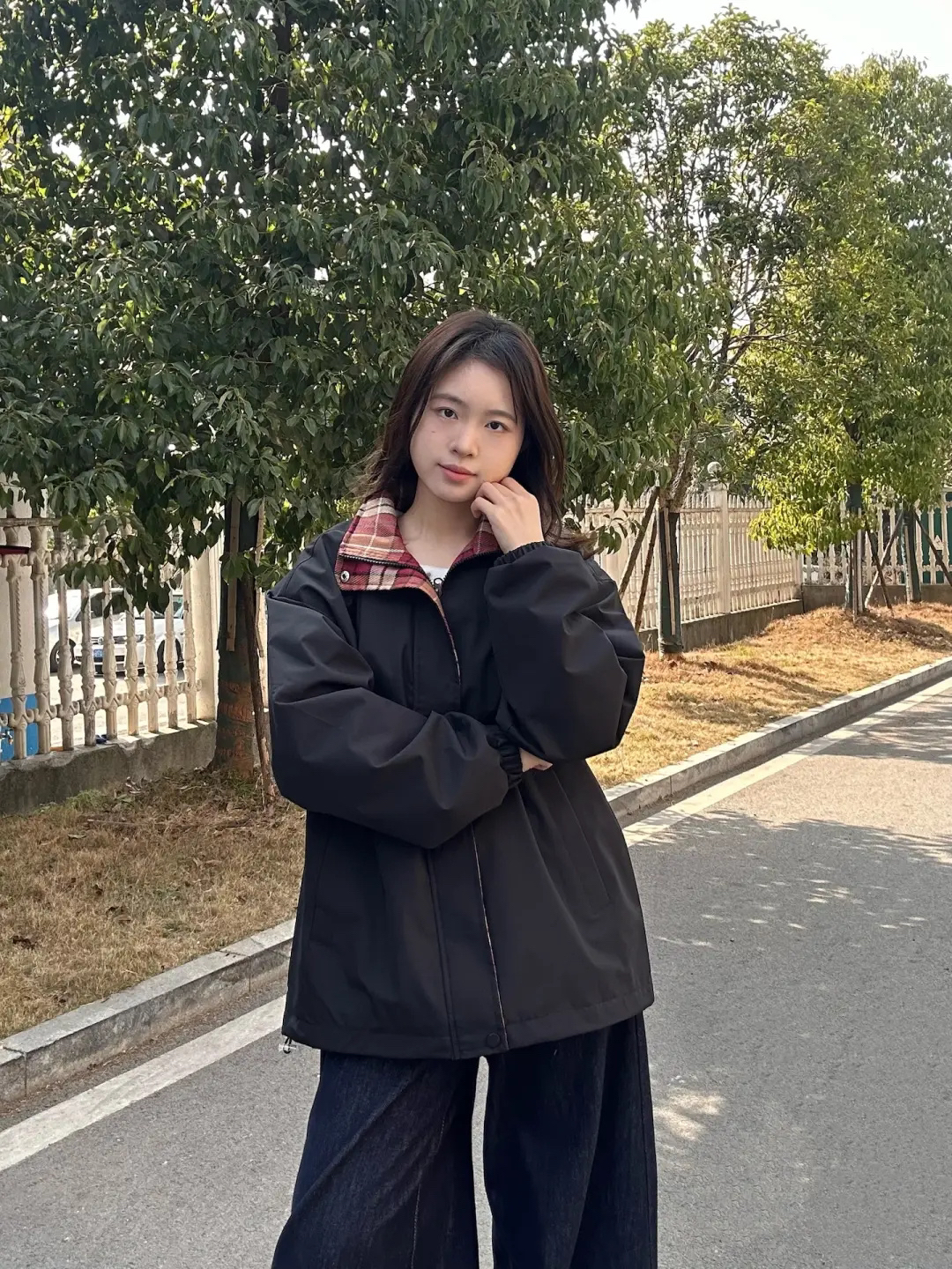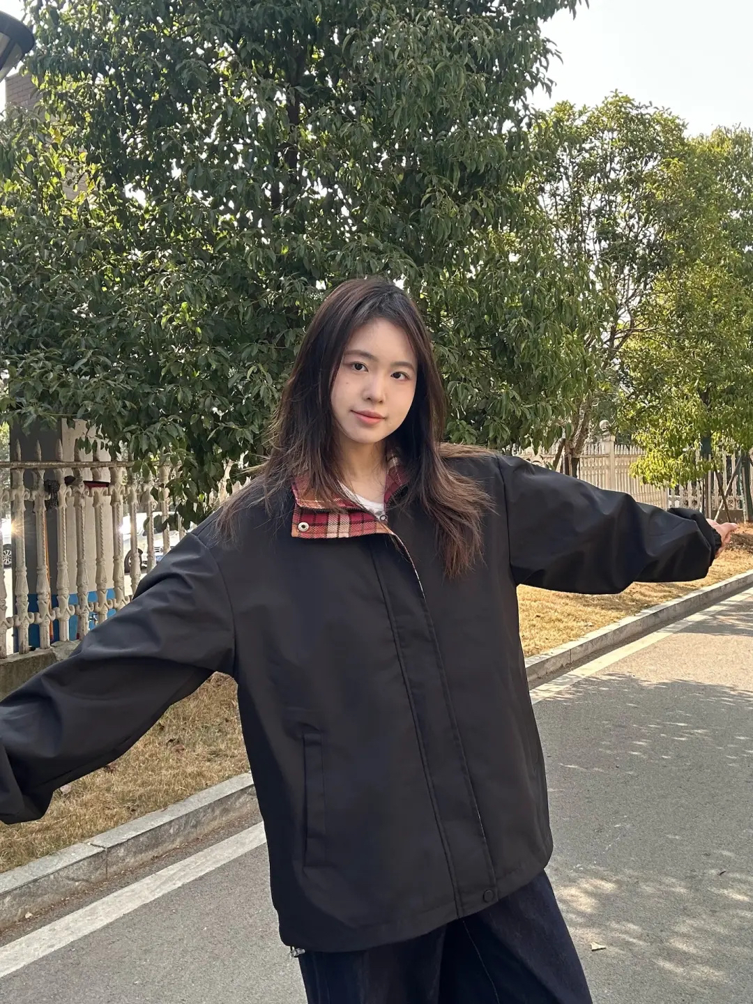 家人们,这件黑色多彩拼色格子立领夹克太绝!黑色遇上多彩格纹,复古又时髦。立领设计超独特,日常配上牛仔裤,休闲又有范。穿上它,瞬间告别路人感,轻松提升穿搭 level