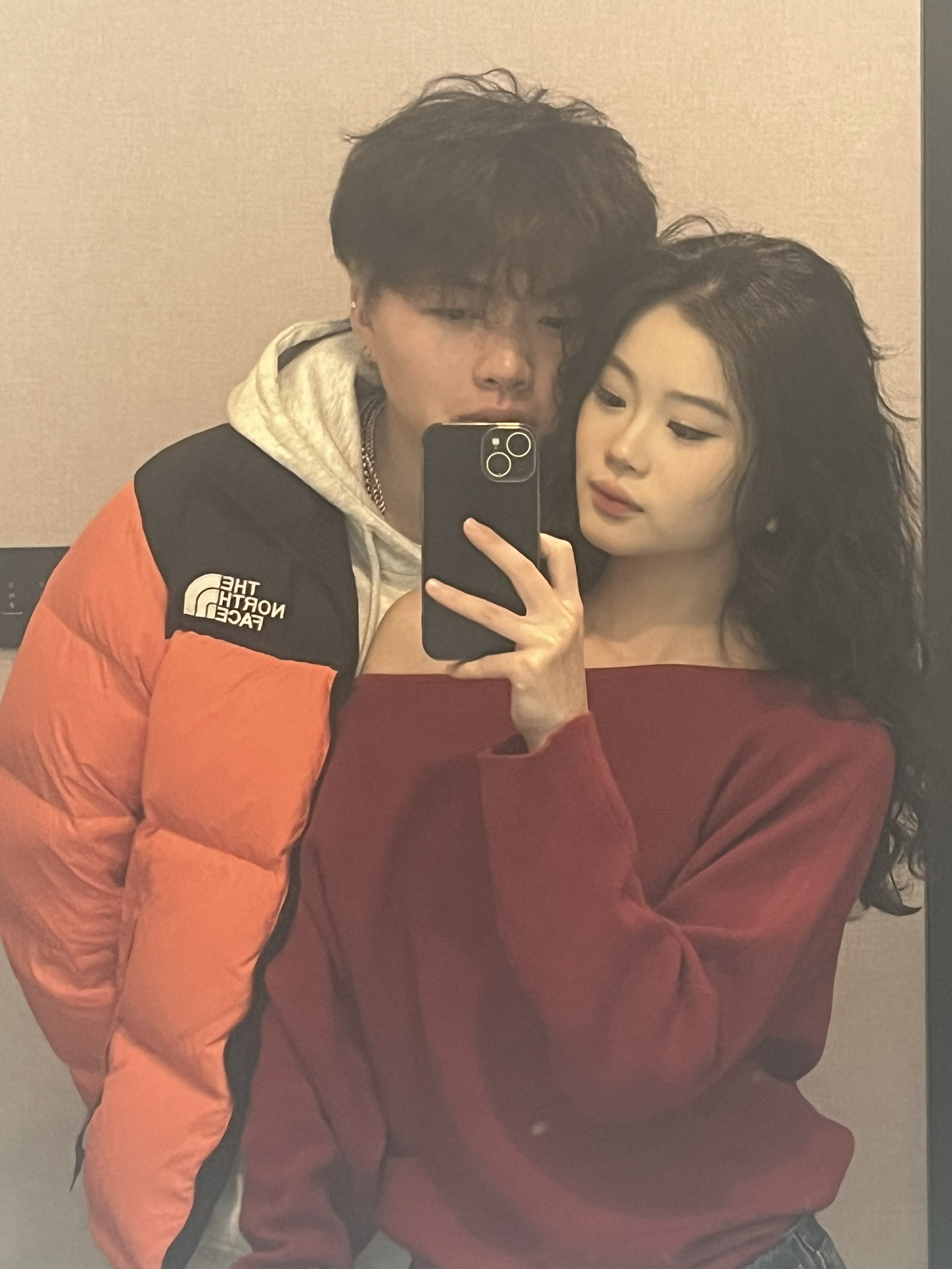 身上是The North Face的经典拼色羽绒服,橙黑配色亮眼又时尚,保暖性没得说,街头感满满,不管是日常出街还是户外运动都很合适。内搭简约灰色连帽卫衣,增加层次感的同时又不失休闲感。 这组情侣穿搭适配度超高,轻松拿捏韩系氛围感,宝子们可以和对象安排起来~ #情侣穿搭 #北面羽绒服 #复古毛衣 #北面怎么穿都有面 #我要上热门