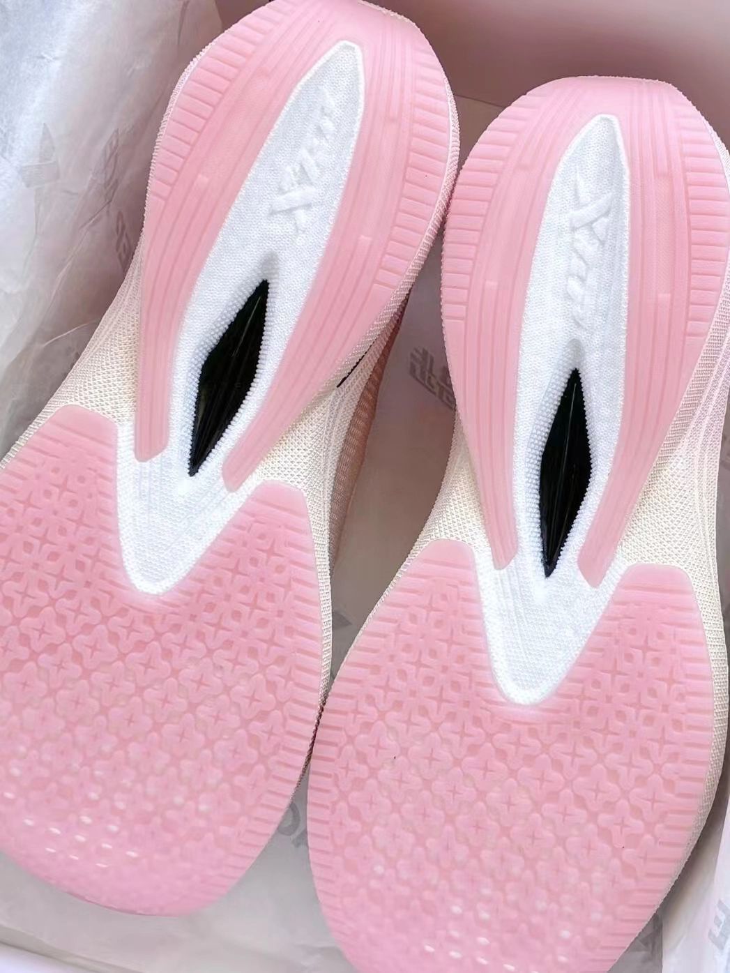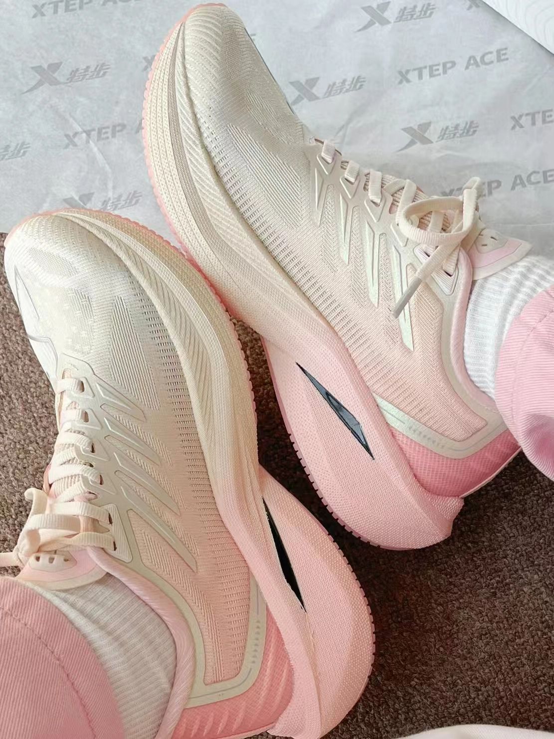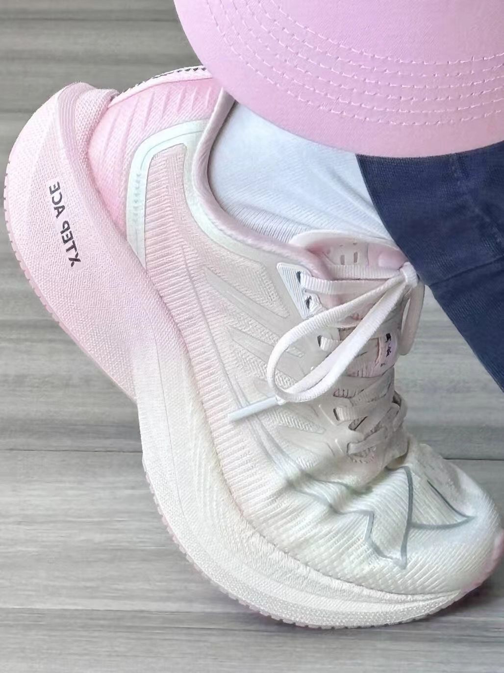 特步这次真的让人眼前一亮!这双渐变粉跑鞋简直是颜值与实力并存的神仙单品🍧 最近入手了一双特步的一体成型跑步鞋,真的被惊艳到了!胭脂渐变粉的配色,从鞋头到鞋尾的渐变设计,简直美得让人移不开眼💗 鞋面采用一体成型的工艺,不仅提升了整体的质感,还增强了鞋子的包裹性和舒适度。 上脚的第一感觉就是轻巧!鞋底采用了厚底设计,带有一点小增高的效果,不仅拉长了腿部线条,还让整体造型更加时尚。跑步时,鞋底的回弹...