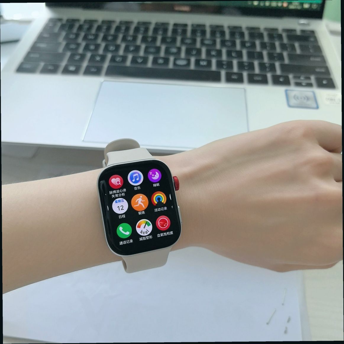 配备1.82英寸AMOLED屏幕,屏占比达77.4%,分辨率为480×408,像素密度347PPI,显示清晰细腻,色彩鲜艳。60Hz高刷新率让滑动屏幕和界面切换都非常流畅,1500尼特峰值亮度,即使在强光下屏幕内容也清晰可见,还支持智能亮度调节,在亮光处更清晰,暗光处不刺眼 。