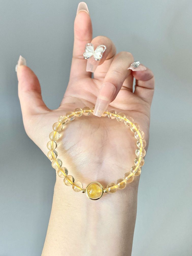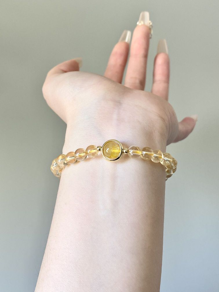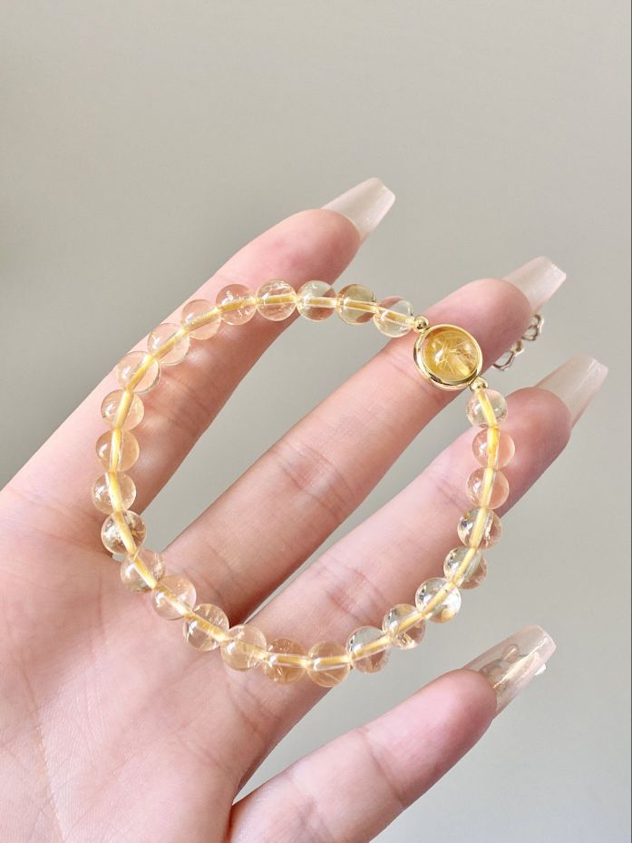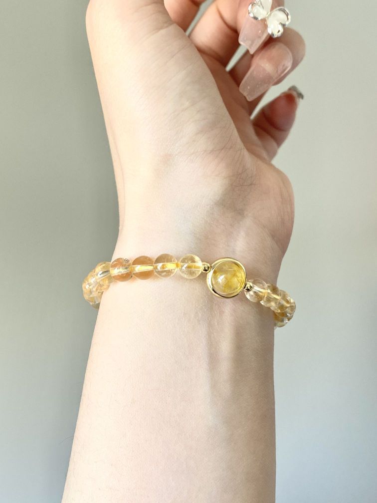 这手串简直太迷人啦,一颗颗黄水晶晶莹剔透,散发着温暖的光芒。 珠子大小均匀,圆润光滑,触感特别好 黄水晶也寓意着财运 戴上以后感觉气质都提升了不少呢