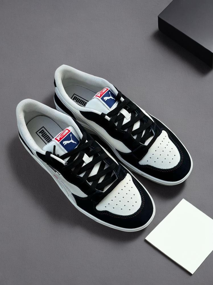 : • 外观设计 ◦ 复古轮廓:源于20世纪80年代篮球鞋的黄金时代,高帮轮廓融合复古魅力与现代设计,鞋身线条流畅,搭配标志性的Puma Form Stripes,尽显品牌风格。 ◦ 细节点缀:鞋头有打孔设计,增添复古外观的同时,提升了透气性。鞋带贴合不易散落,表面添加标志性品牌元素,鞋舌和鞋跟上通常也会印有醒目的PUMA标志。 • 材质用料 ◦ 鞋面材质:采用经典皮革鞋面,不仅质感上乘...