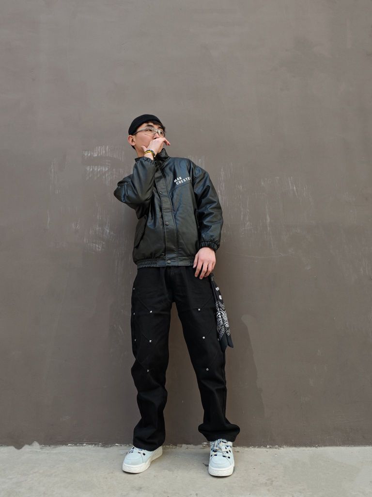 哈喽!大家好这里是马仔☜ 身高:180体重:130 风格:潮流 👔:xl👖:xl 👟:43 春天里的文艺范☞上衣选择比较酷的皮衣☞搭配地主帽☞有点文艺青年的感觉 裤子选择Voguo Relay 家纯色斜镶珠中腰宽松直筒牛仔裤 比较有个性的设计☞同时感觉有点显瘦的感觉☞日常还是比较百搭的了♥ 鞋子👟搭配一款板鞋*^_^*