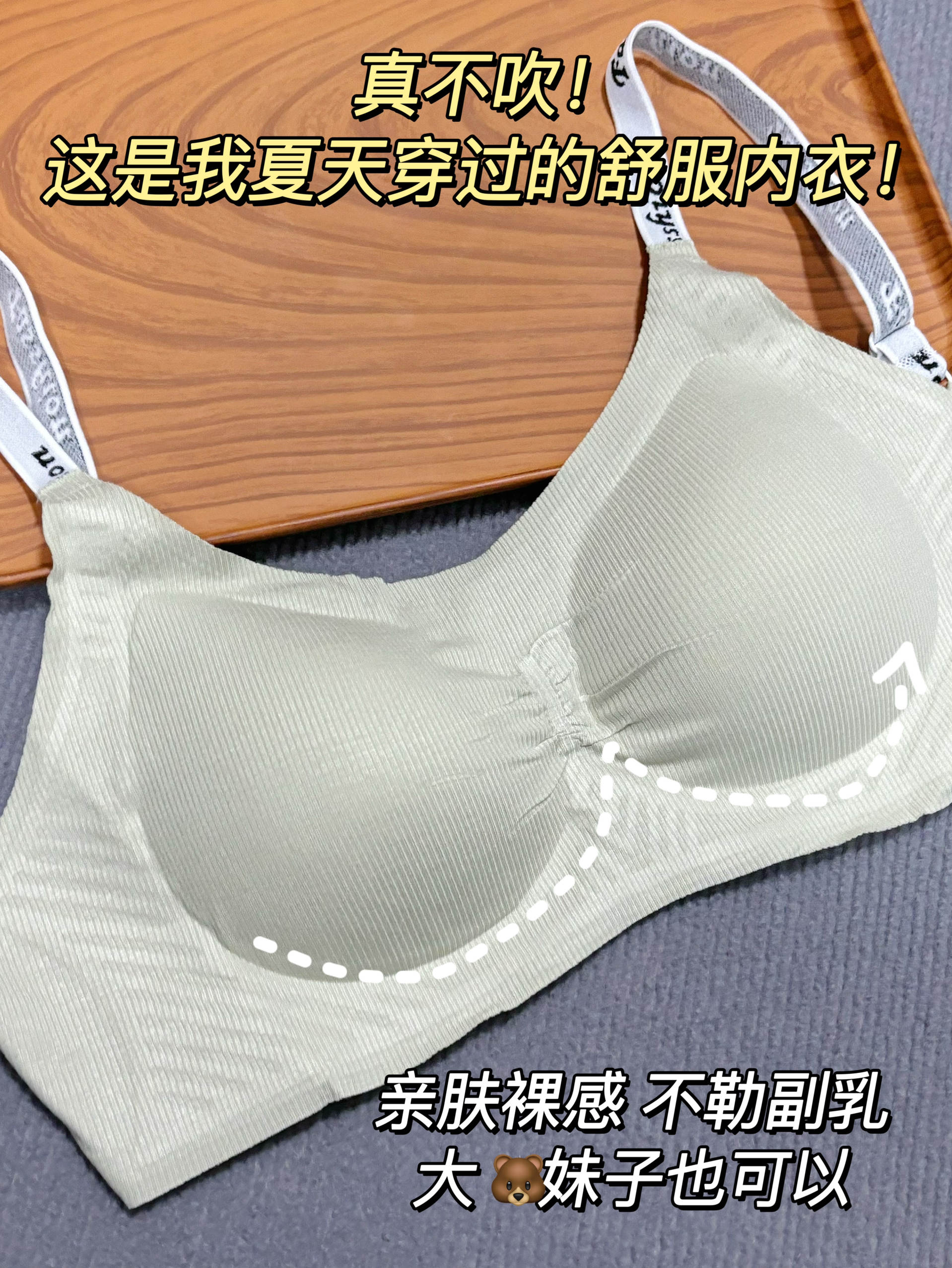 夏天快到了吧 最近天气升温贼拉快 夏日穿紧身t最烦胸部扁塌不好看 不过还好有介个草本出色的内衣 圆润还舒服 穿上我这种扁塌的小胸都有救了 侧边加宽 穿上也不会勒副乳 后面的扣子设计也是蛮贴心的 不紧绷随意调节 我最喜欢的一个小tip就是肩带是字母印花的 夏天就是穿防晒罩衣也很好看 秒变辣妹的感觉喔! 几十块钱 学生党也能闭眼冲!