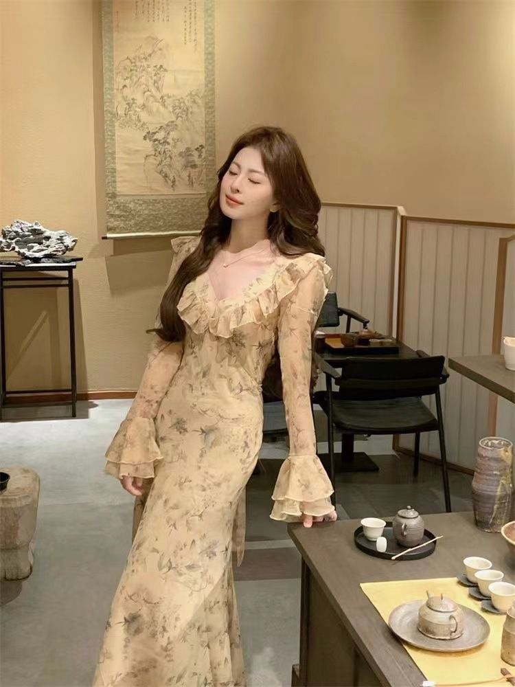法式气质温柔小众绝美连衣裙女春季新款时尚两面穿碎花长裙潮