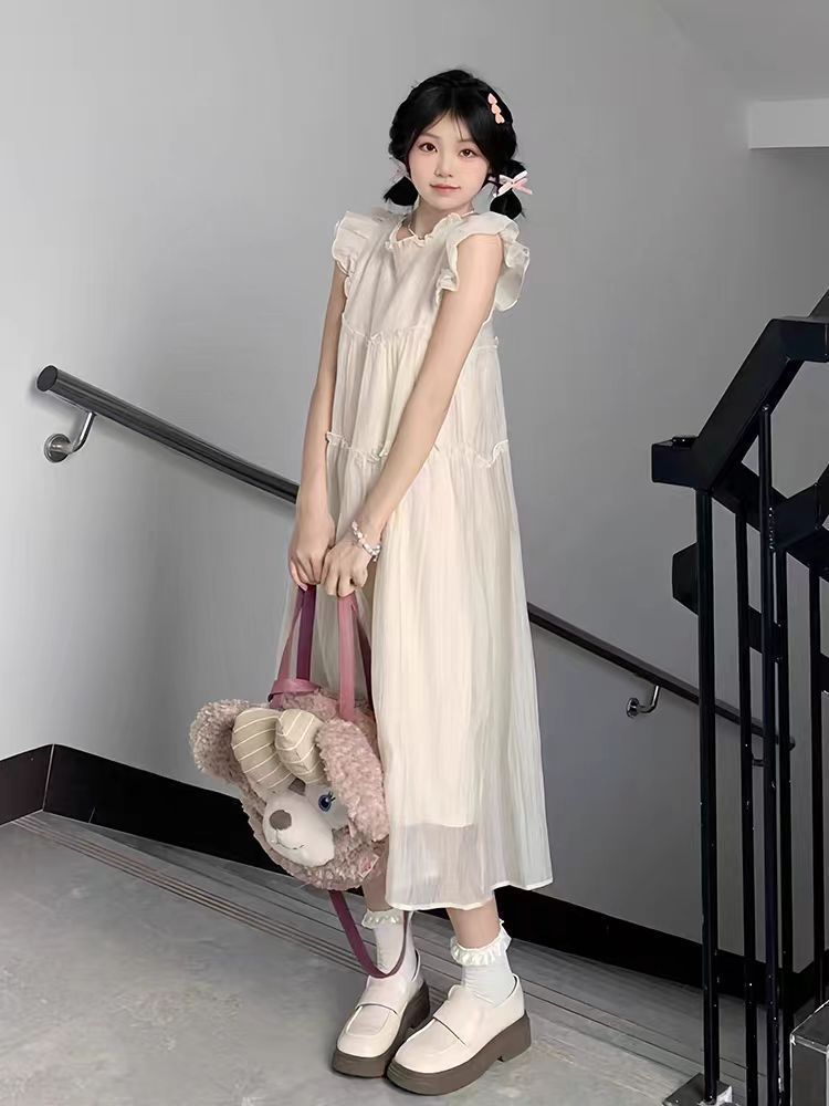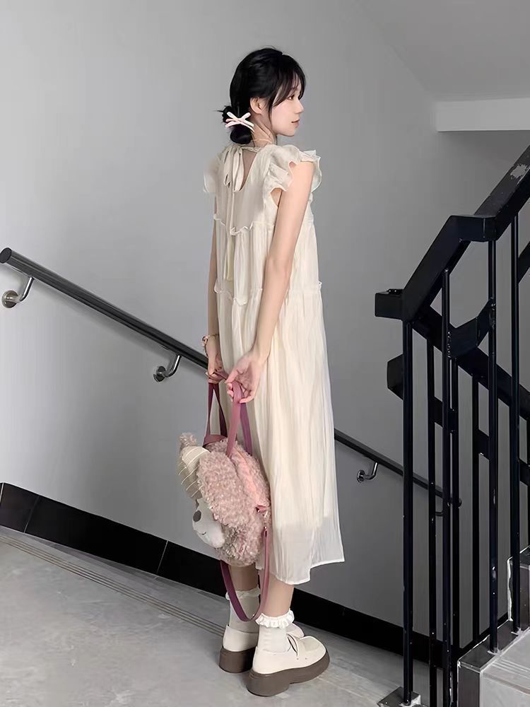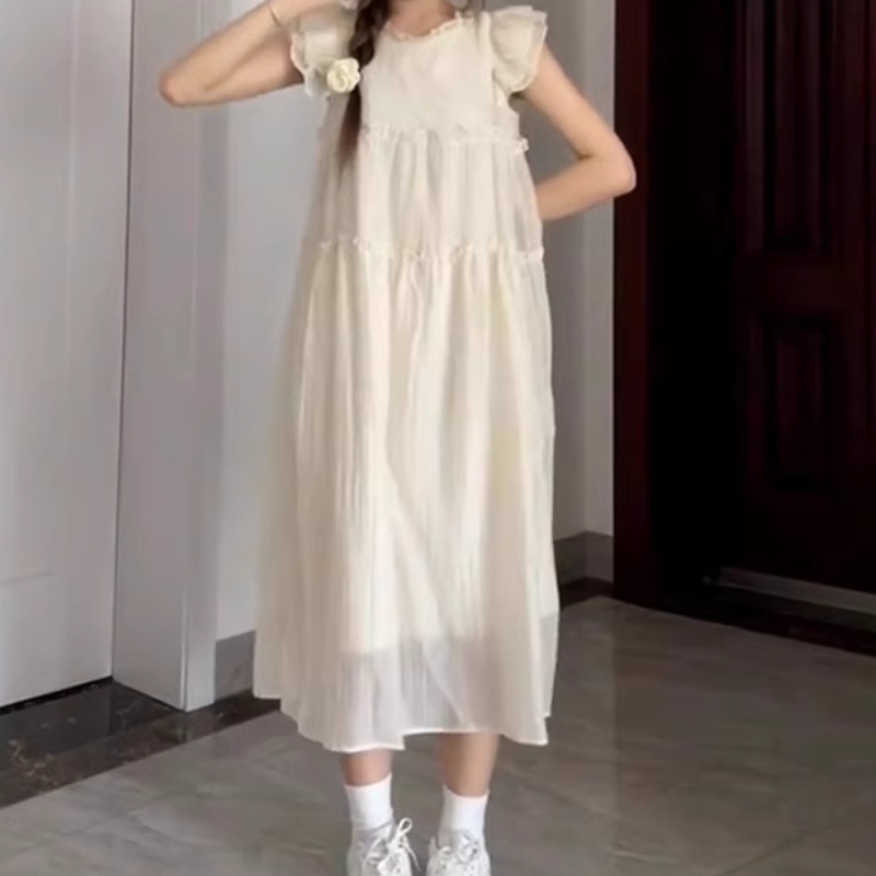 茶歇法式小飞袖连衣裙女夏季小个子公主初恋清纯奶甜美长裙子