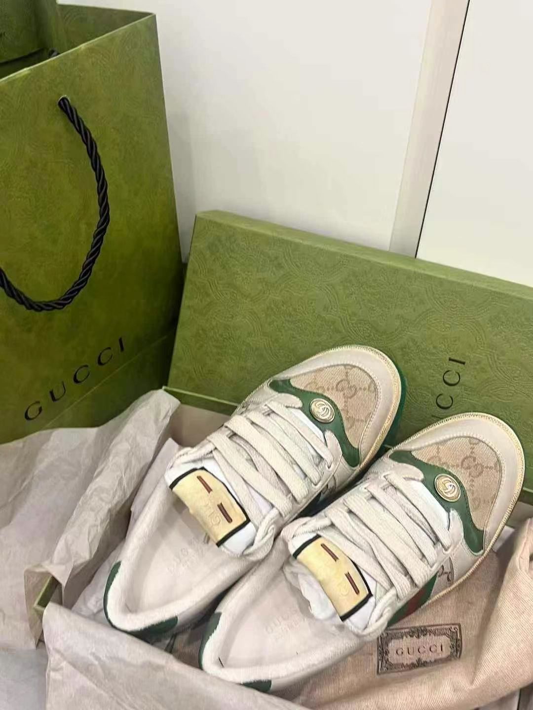 本篇笔记关联了Gucci Screener 板鞋 脏脏鞋 经典复古减震帆布轻便 黄油色/米色/绿色、Gucci Screener 板鞋 脏脏鞋 经典复古减震帆布轻便 做旧绿等商品,为用户提供真实的使用体验和购买参考。
