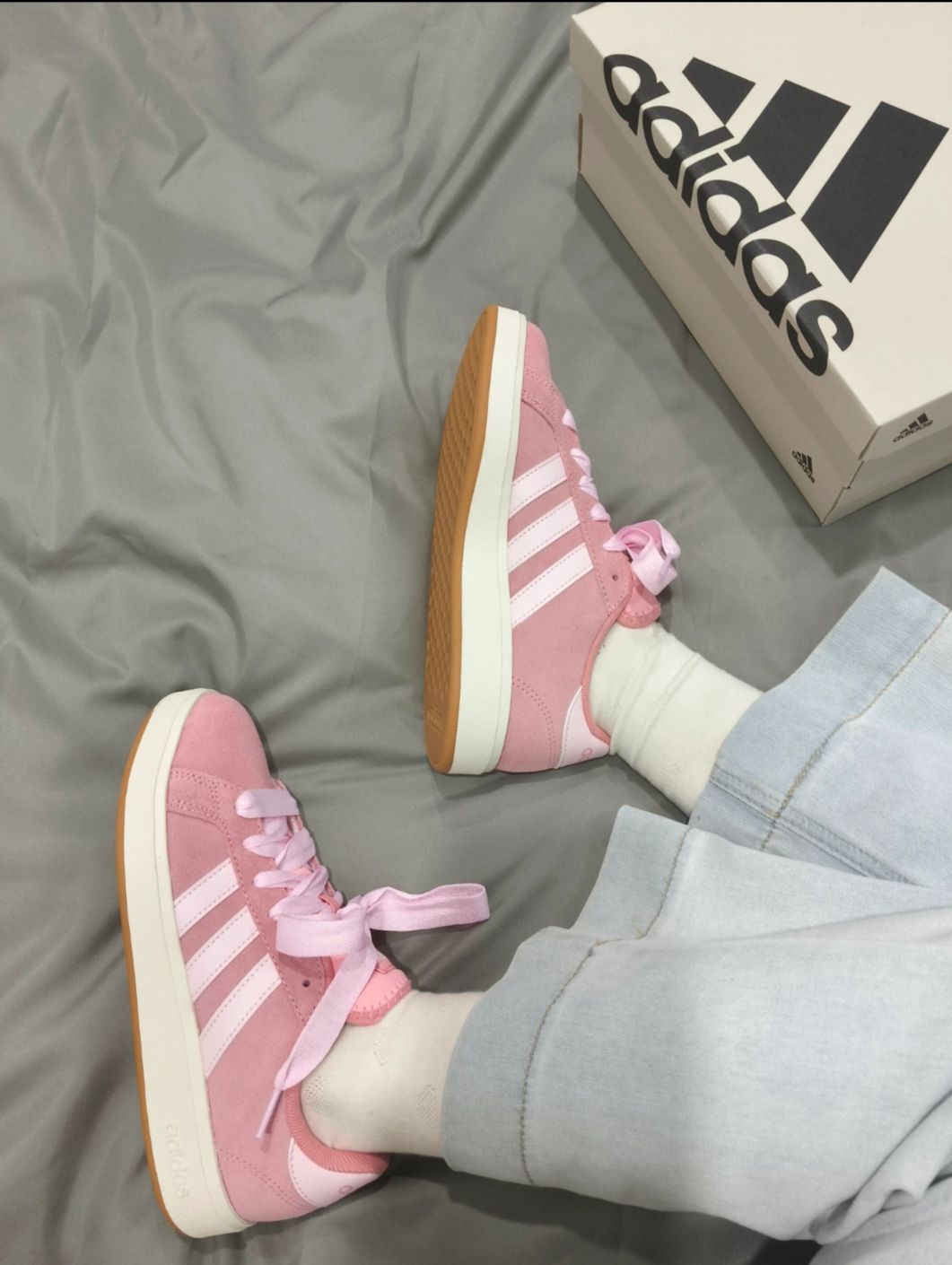 开春后大家都准备了什么鞋子 要被这个粉色阿迪迷晕了 穿上一股滑滑的感觉好舒服 上脚的包裹性也不错 鞋底还用了橡胶大底防滑耐磨 就是麝皮材质打理起来不太方便 搭配牛仔裤简直不要泰好看