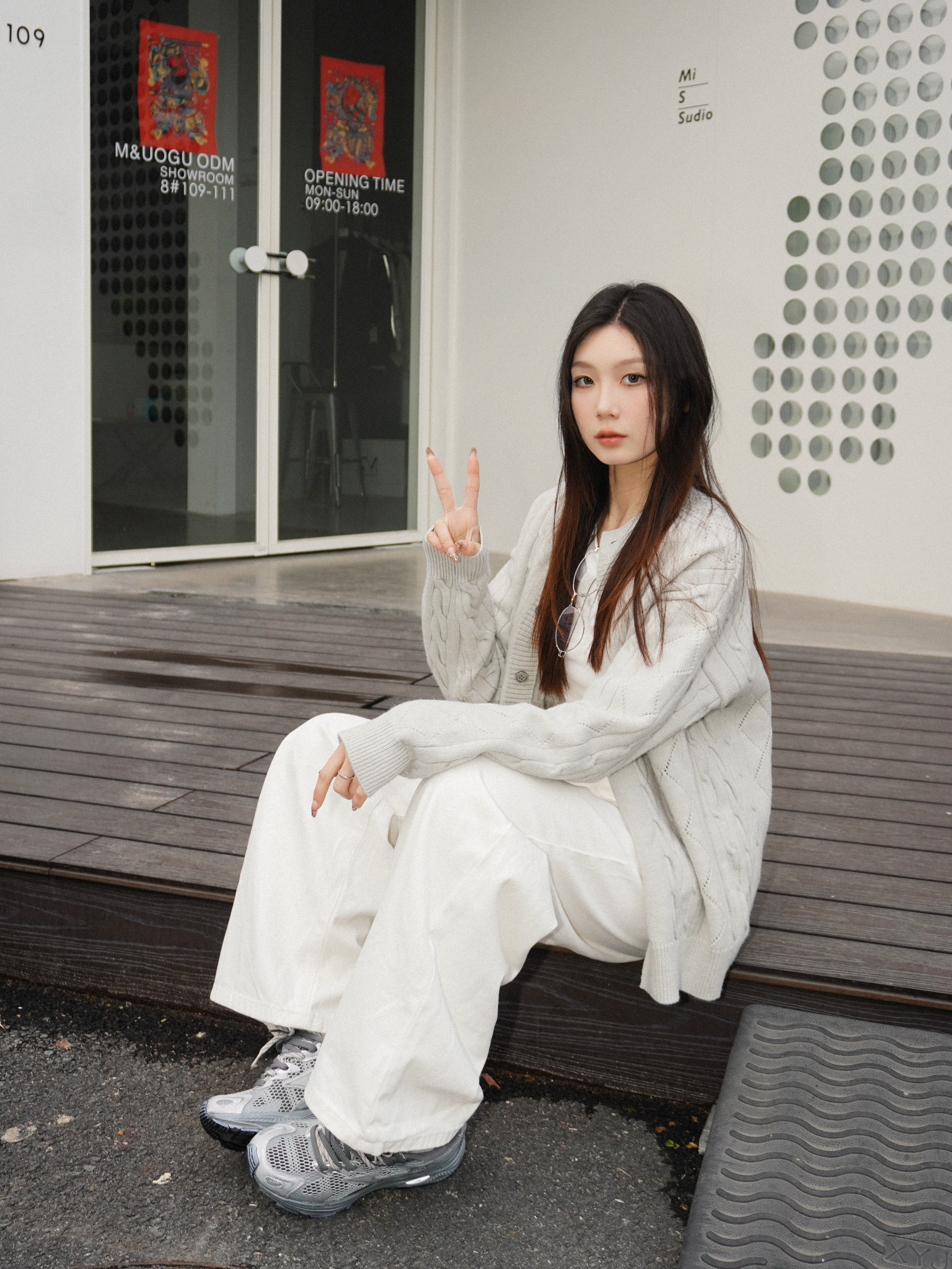 期待春天 进入春天 享受春天 cleanfit穿搭一直都是我觉得最舒服的状态 内搭外加裤子我选择白色作为打底色 浅灰色的开衫跟灰色美津浓跑鞋色调相呼应 没有过多的点缀 以简约为主 浅春系穿搭才是我的主场