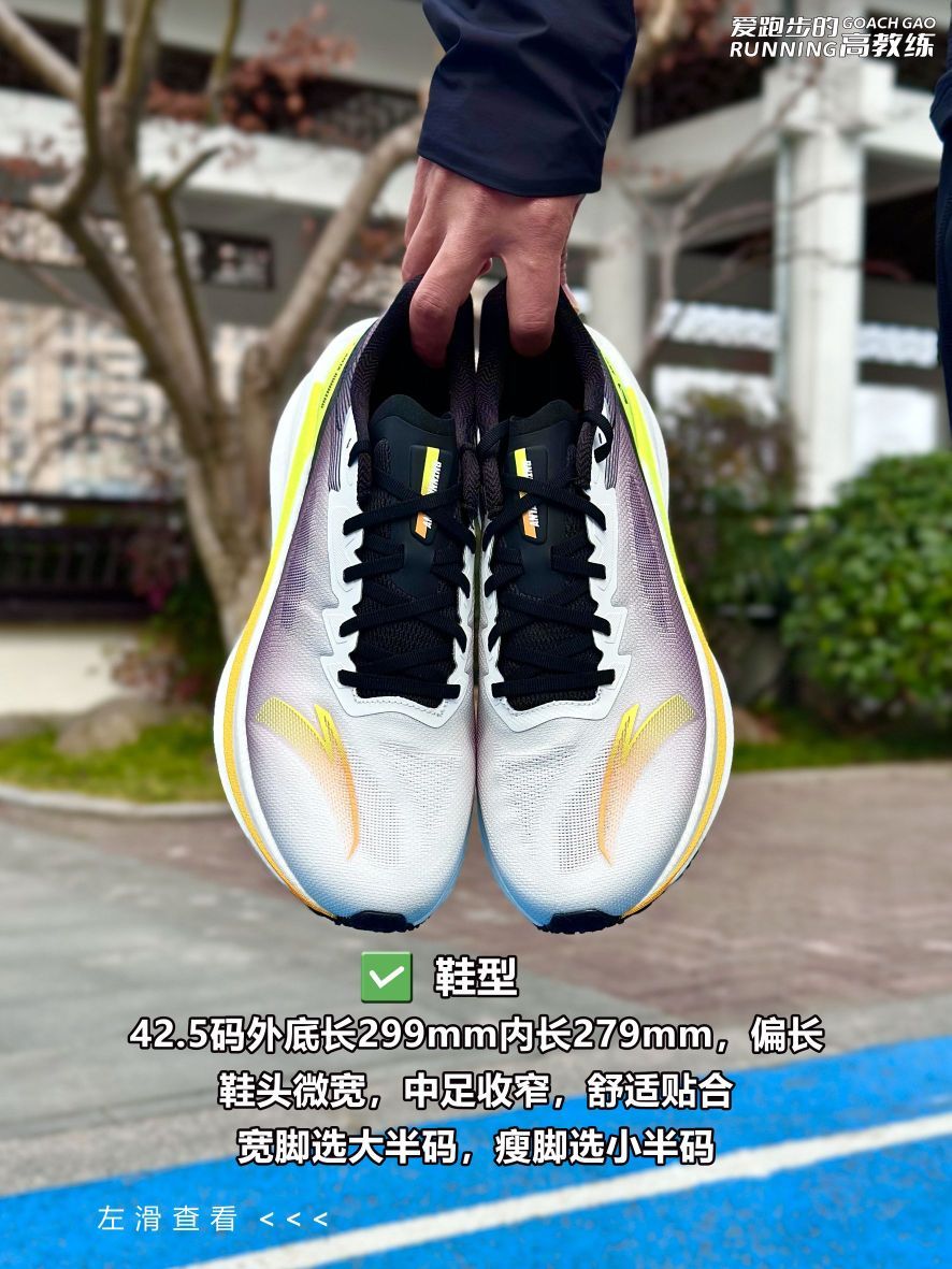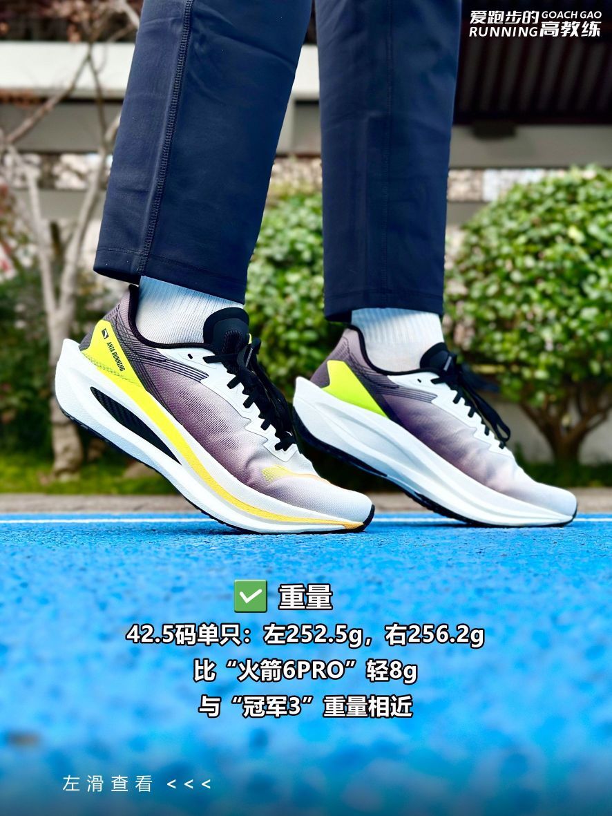 📝跑鞋数据: ✅鞋重:42.5码单只左脚252.5g,右脚256.2g,比“火箭6PRO”轻8g,与冠军3接近; ✅鞋面:与冠军3相同,为绞综类鞋面,分区编织,局部有透气网孔,鞋头内侧有加固,保护脚趾,提高耐用性,鞋面内侧有布条加固,提高支撑性; ✅鞋楦:微宽鞋楦; ✅鞋舌:鞋舌为工程网布,较为透气,上段领口为仿麂皮材质,外侧有压胶和鞋带锁定孔; ✅鞋带:扁平横纹微弹鞋带; ✅鞋带孔:6组鞋带孔,...