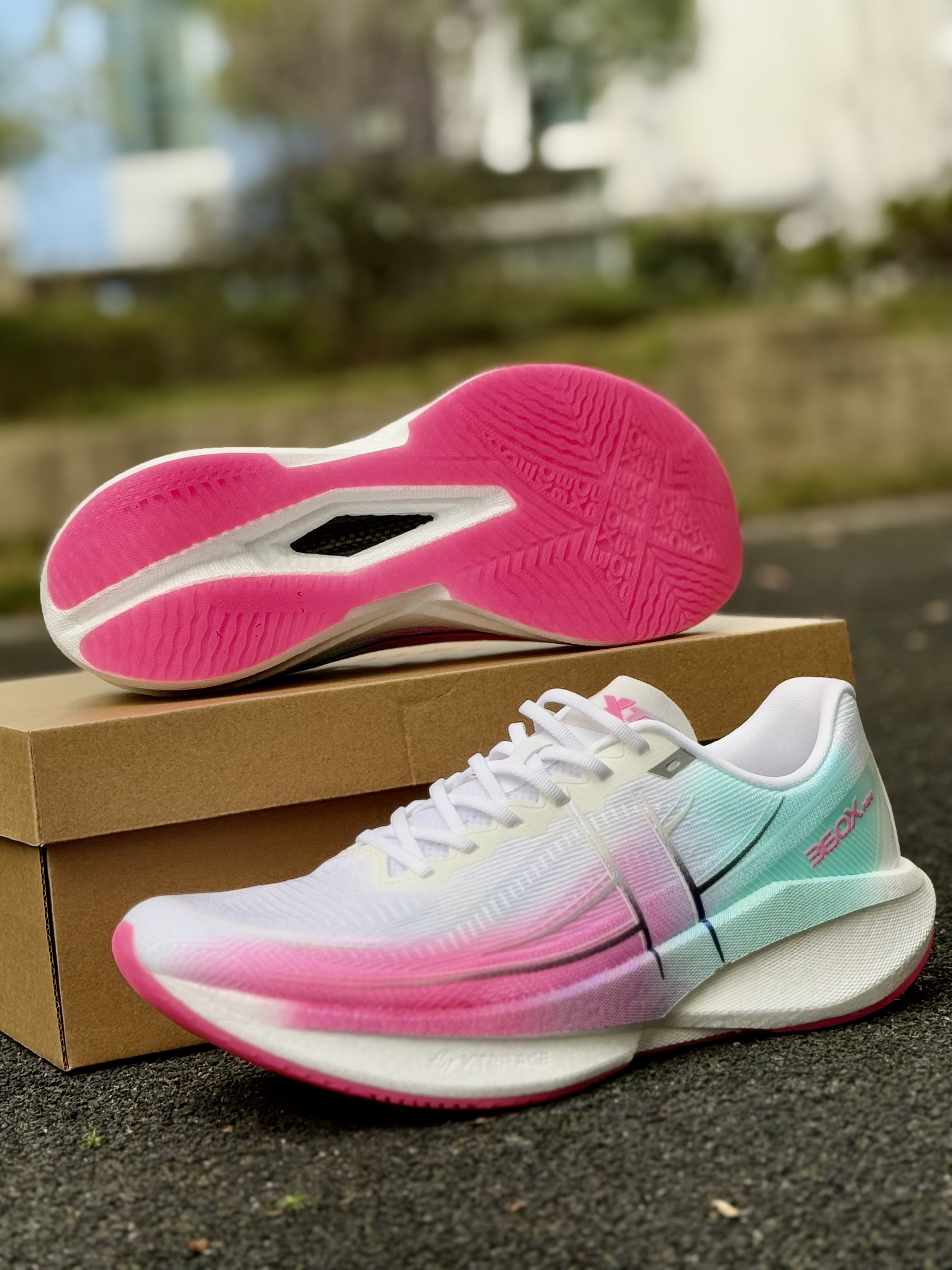 春风一吹,是最适合刷圈的季节,当然要穿新跑鞋啦!特步360X 2.0开箱测评速递! 颜值方面来说,我第一眼就被春日配色圈粉了! 直接把春天打包穿在上,活力值UP! 飞织鞋面柔软舒适,鞋舌的贴合感也很好,上脚给我感觉就是很亲肤!透气性方面也蛮不错的,跑起来一点都不捂脚! 中底搭载XTEP ACE科技,加上Softpad FOAM 鞋垫,我170的体重静态站着就能感觉到澎湃的脚感!全掌T400碳板也增...