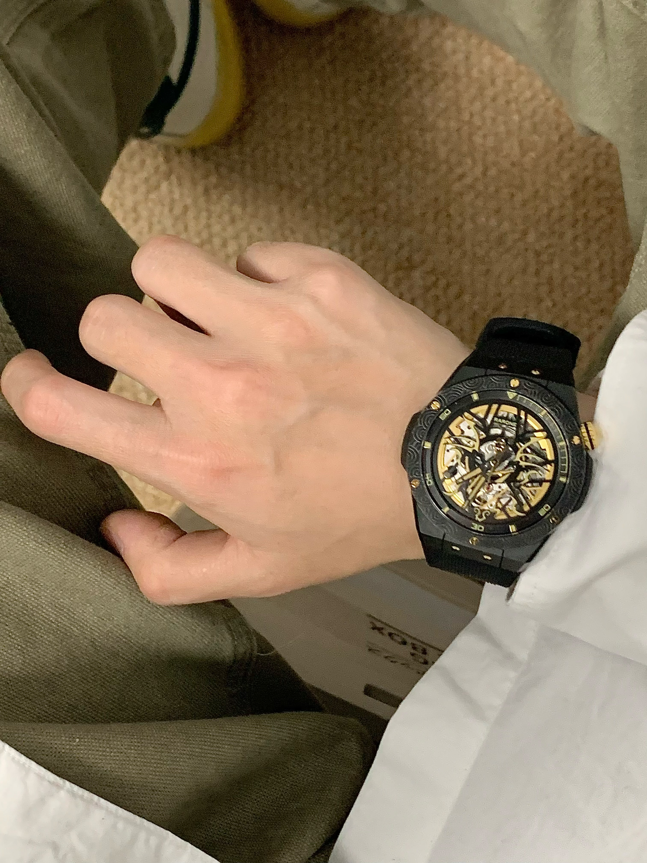 全透明的镂空机械表盘 简直不要太酷 龙年限定黑金配色 很吸睛 硅胶表带 佩戴起来也很舒适 细节控表示满意度拉满!