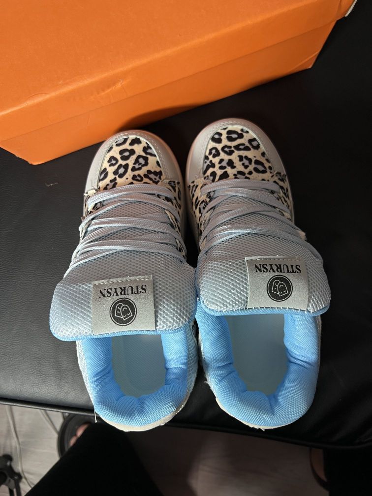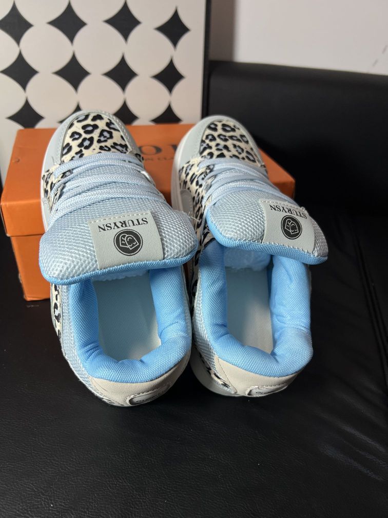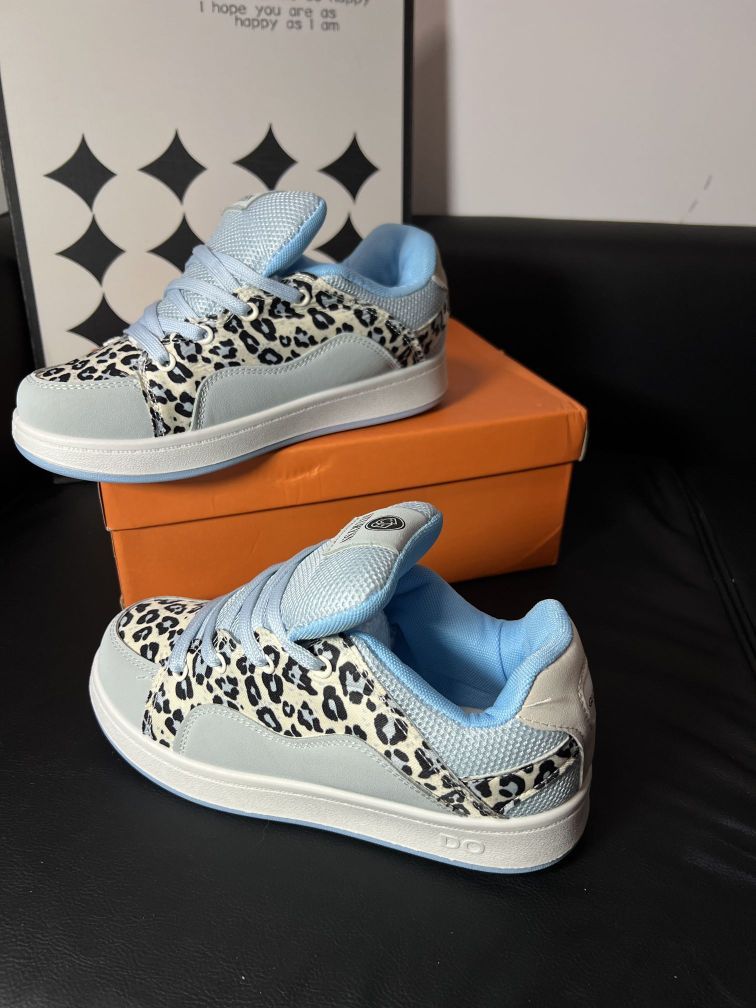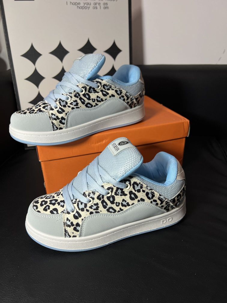被问麻了❗这双GUO LV豹纹板鞋也太绝 宝子们,又挖到一款神仙板鞋🥳 这双GUO LV简直是时尚界的“小惊喜”。浅蓝与银灰交织的底色,清新又不失高级感,搭配野性的豹纹元素,甜美中透着酷帅,完美打破常规,轻松打造吸睛出街look💃 从细节来看,鞋舌处的品牌标志精致小巧,彰显独特身份。鞋面材质柔软亲肤,走路时不磨脚,网眼部分增加了透气性,长时间穿着也能保持清爽。鞋底带有字母压纹,不仅防滑耐磨...