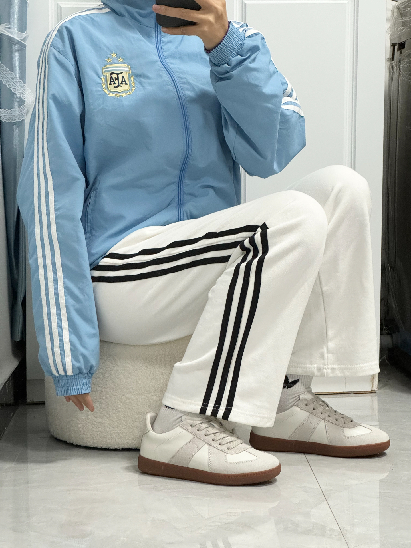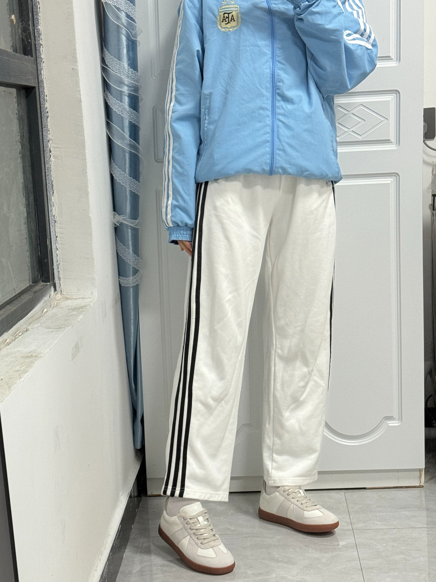 【来抄作业!阿迪蓝色外套➕白色直筒裤➕德训鞋】,由用户 渚寒烟淡sweet 分享,来自山东。这是一篇来自识货社区的真实用户分享笔记。