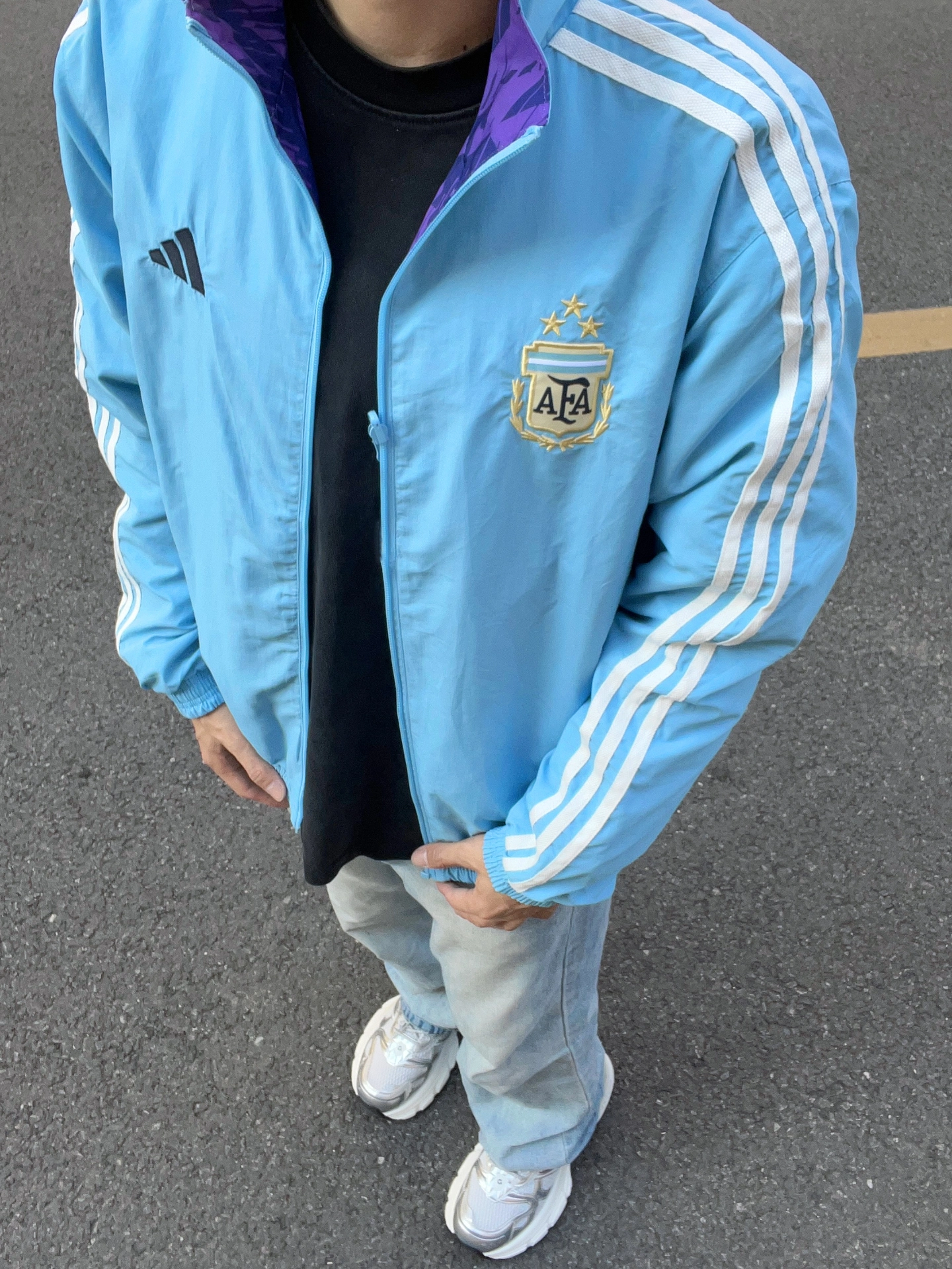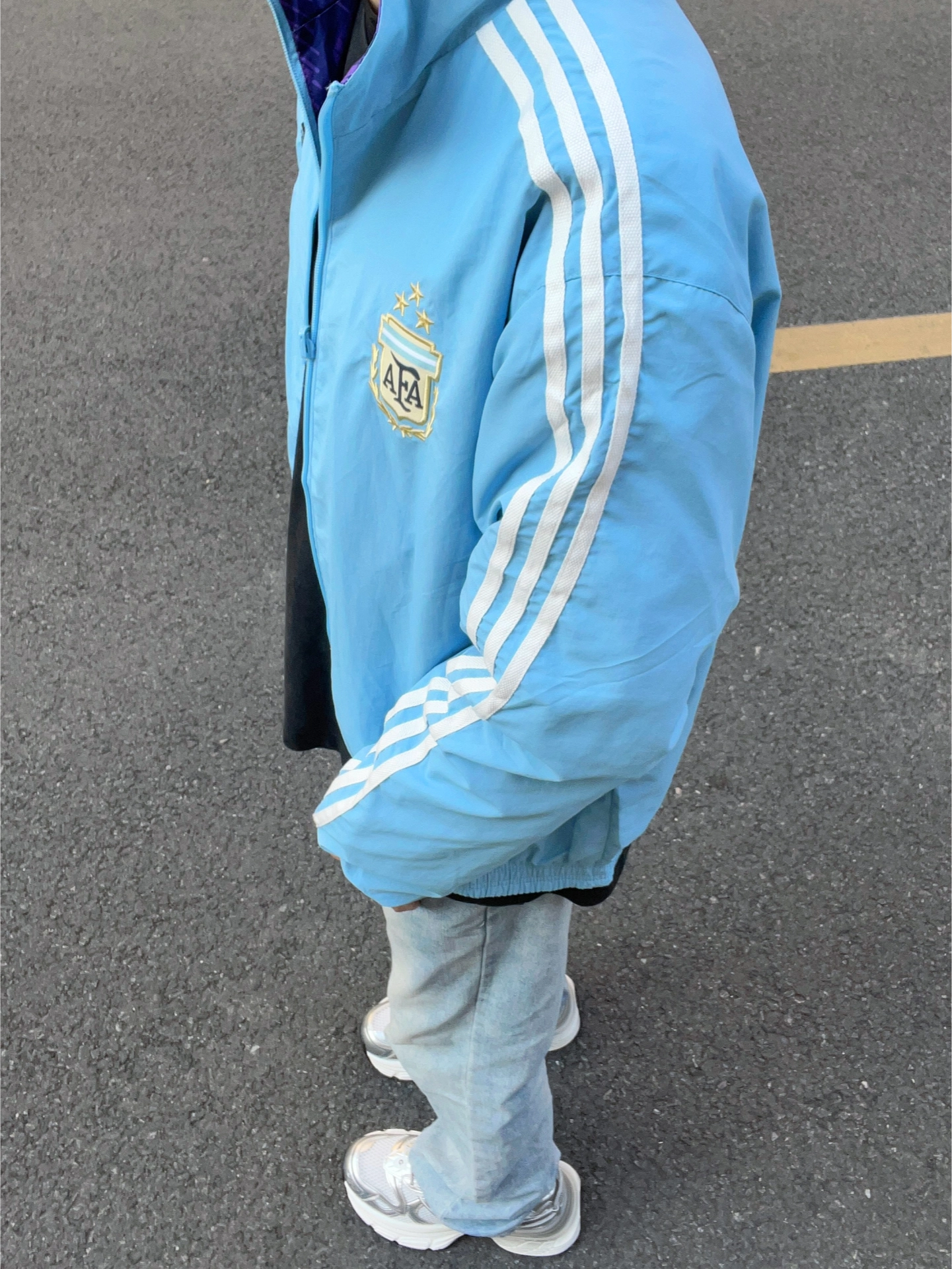 入手这件阿根廷队同款夹克后,满心期待瞬间破碎。先说面料,看着挺厚实,实际运动时特别闷汗,透气性太差。双面设计本是亮点,可两面颜色都很容易沾灰,打理起来超麻烦。而且做工细节粗糙,线头多,车线歪歪扭扭,完全对不起价格,真不推荐购买。图源网络,侵删!