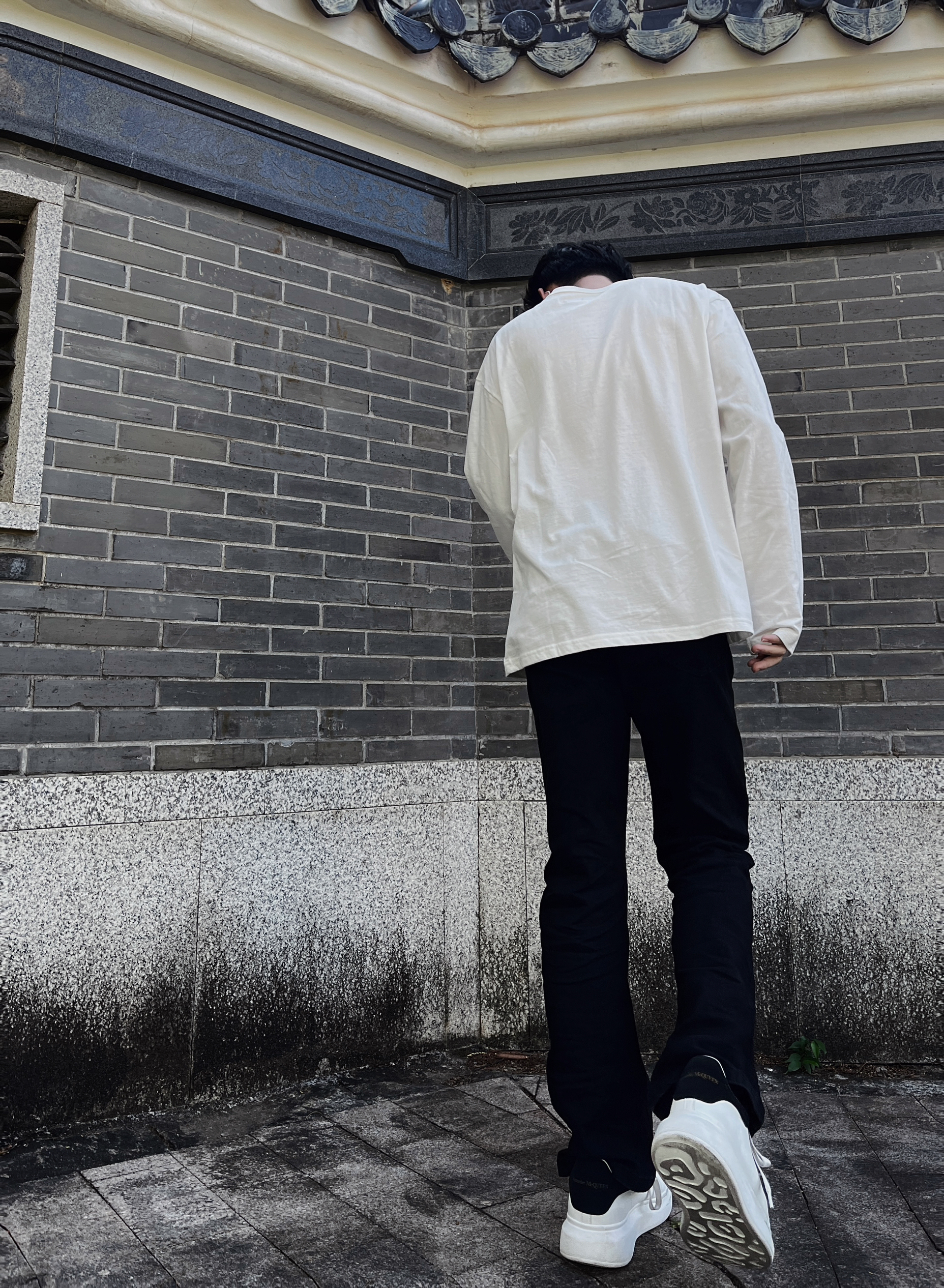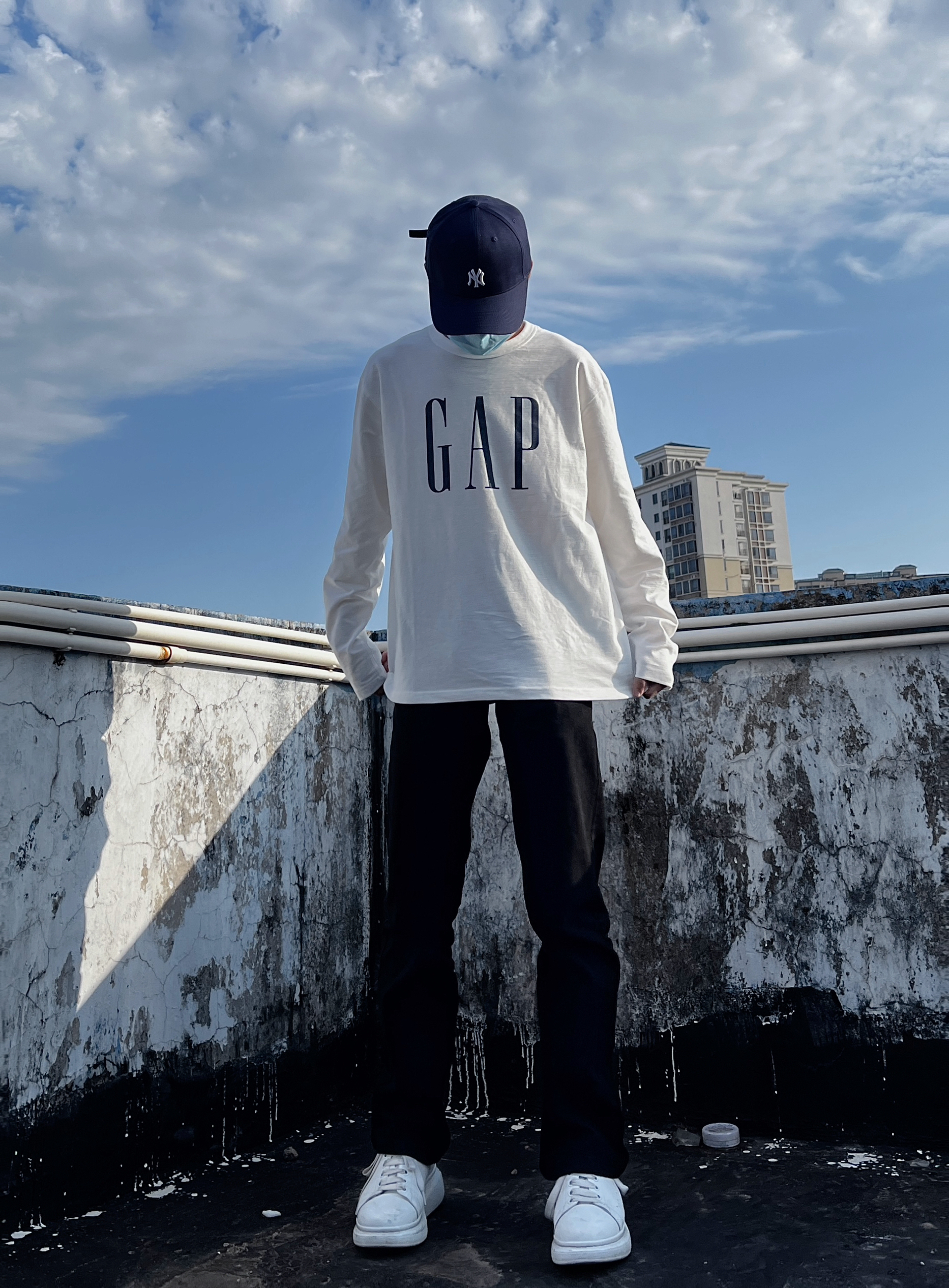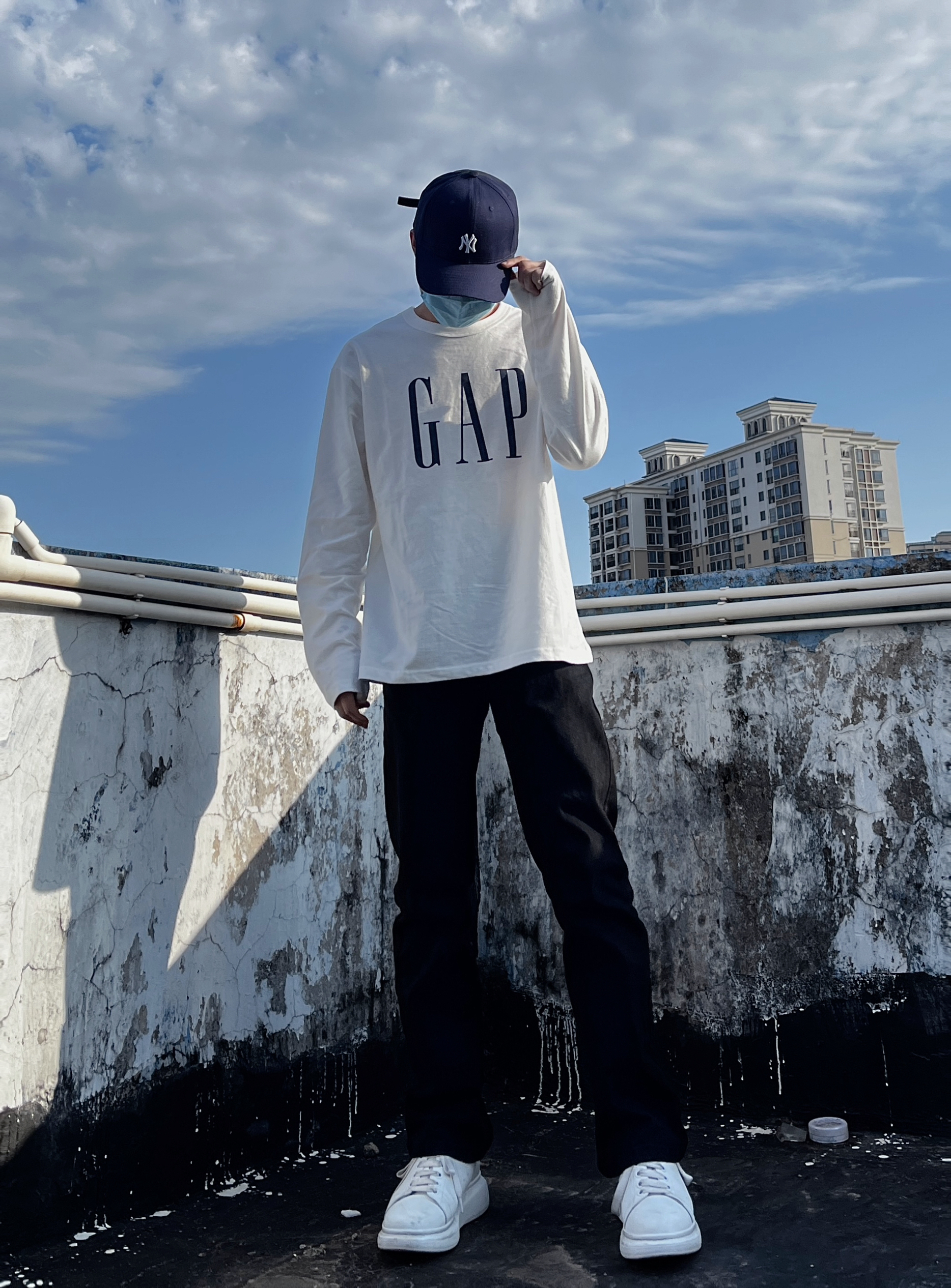 👔gap经典大log简约款 简单干净 没有过多的印花 穿起来很有质感 面料非常柔软 面穿打底都可以喜欢简单的兄弟们基本可以入了 👖黑色弯刀裤 这条裤子不挑腿型 修饰腿型 腿粗的小伙伴也可以冲 但是太瘦的腿穿起来会稍微有一点点像竹竿.