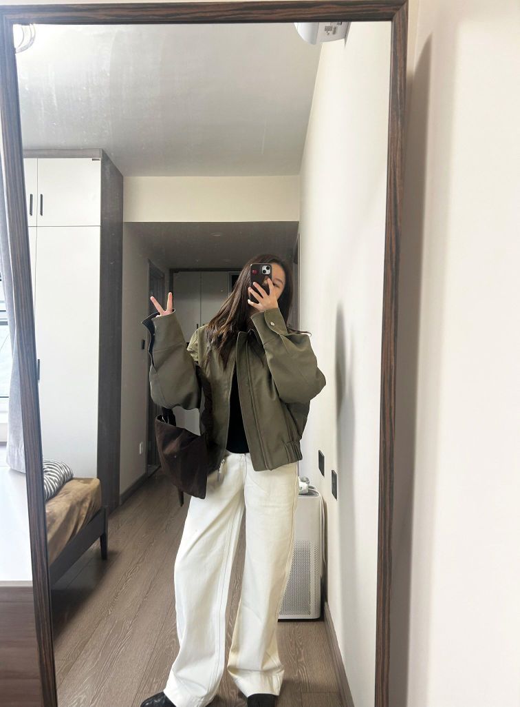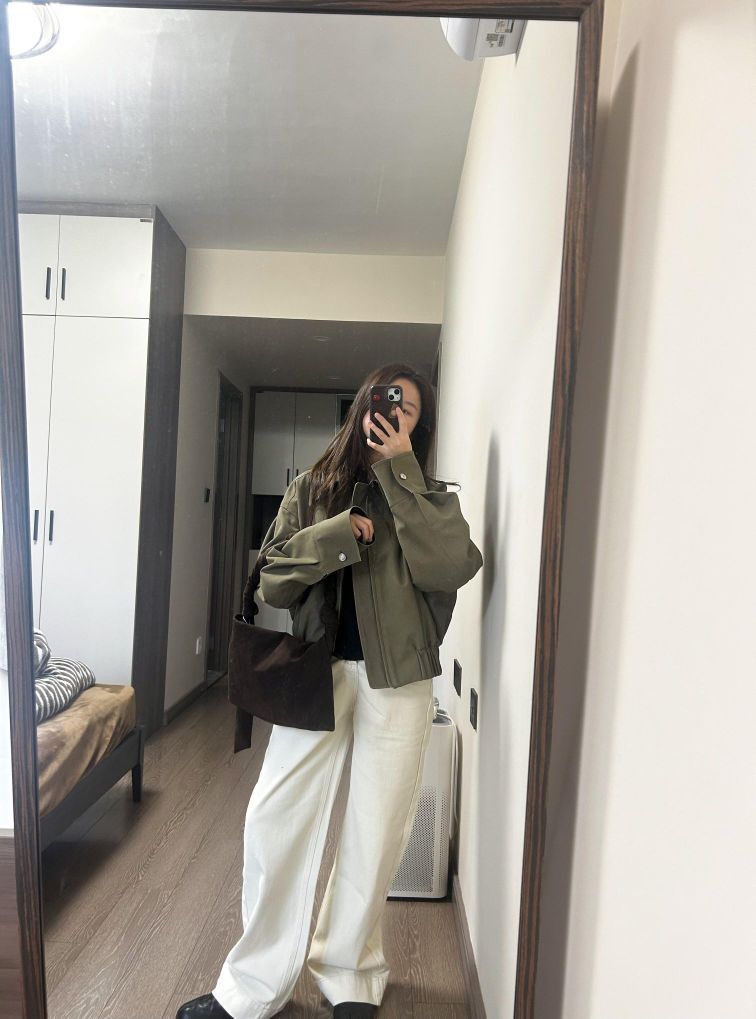 谁说小个子不能时髦高级!! 我发现小个子女生很适合这种夹克式的外套 配上一条宽松的白裤子裤一整个时尚拿捏