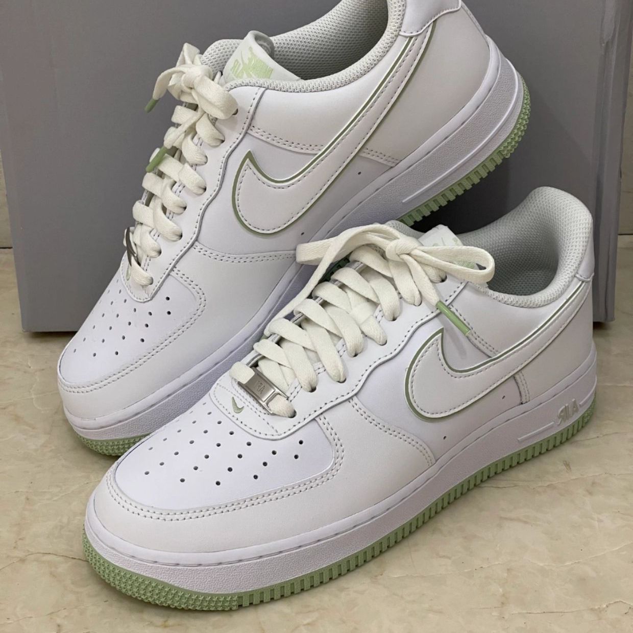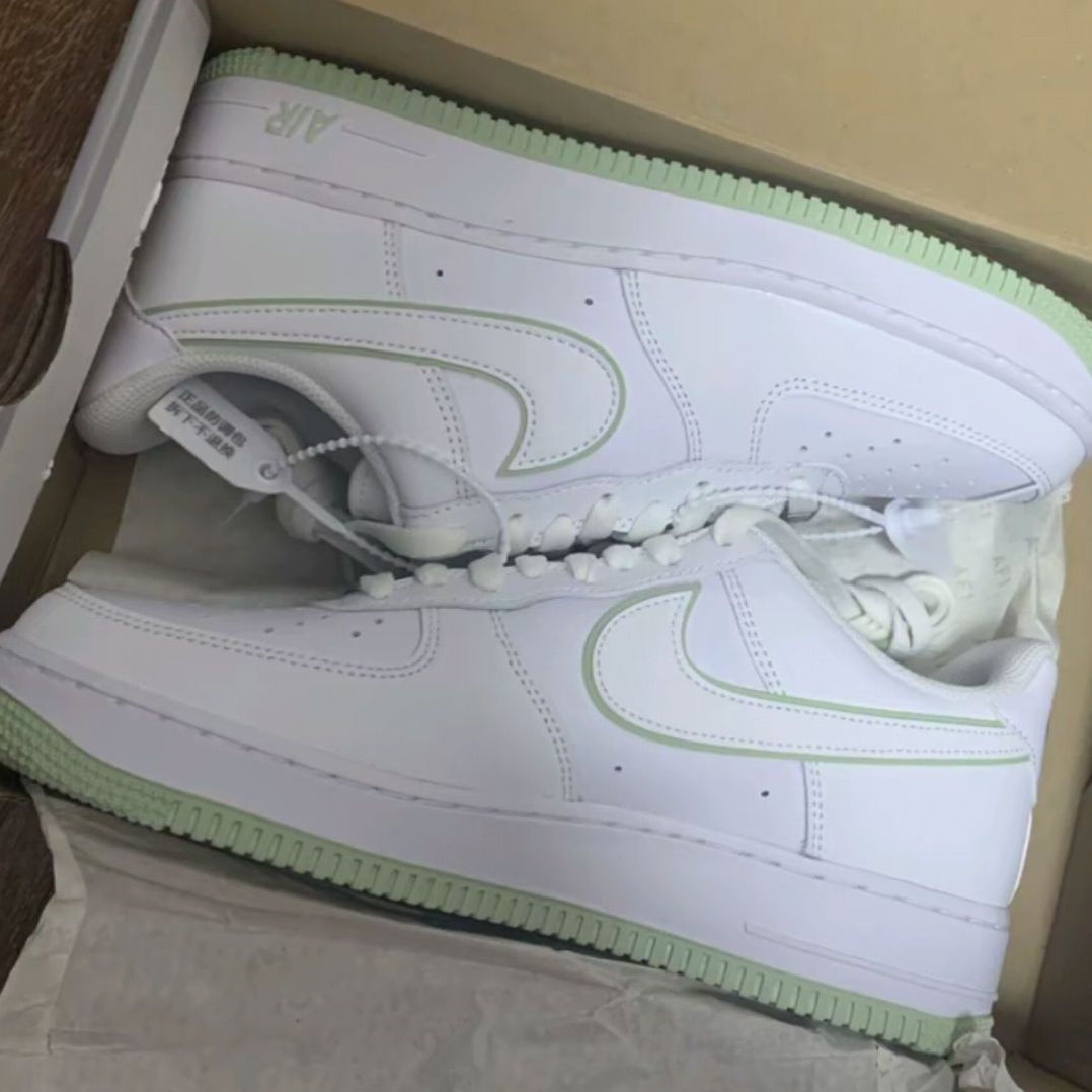 Nike Air Force 1这双经典鞋型,换上浅绿配色,颜值简直爆表!😍 白色鞋面简洁大方,浅绿勾边清新脱俗,配色独特,既百搭又彰显个性! 低饱和度配色让它成为穿搭界的“万能公式”——配牛仔裤是复古慵懒,搭连衣裙是温柔学姐,踩上工装裤又能秒变街头潮人,春夏秋冬都能稳占C位!细节更是藏满小心机! 这双AF1简直是“温柔炸街天花板”,既有经典款的百搭灵魂,又靠神仙配色疯狂加分,穿上它连走路都自...