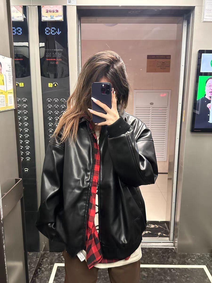 自从入手这件皮夹克,穿搭焦虑彻底拜拜!宽松版型不挑身材,格子内衬很有格调。日常随意搭配,都能时髦又出众,真的太爱了,是轻松就能get的潮感啊!