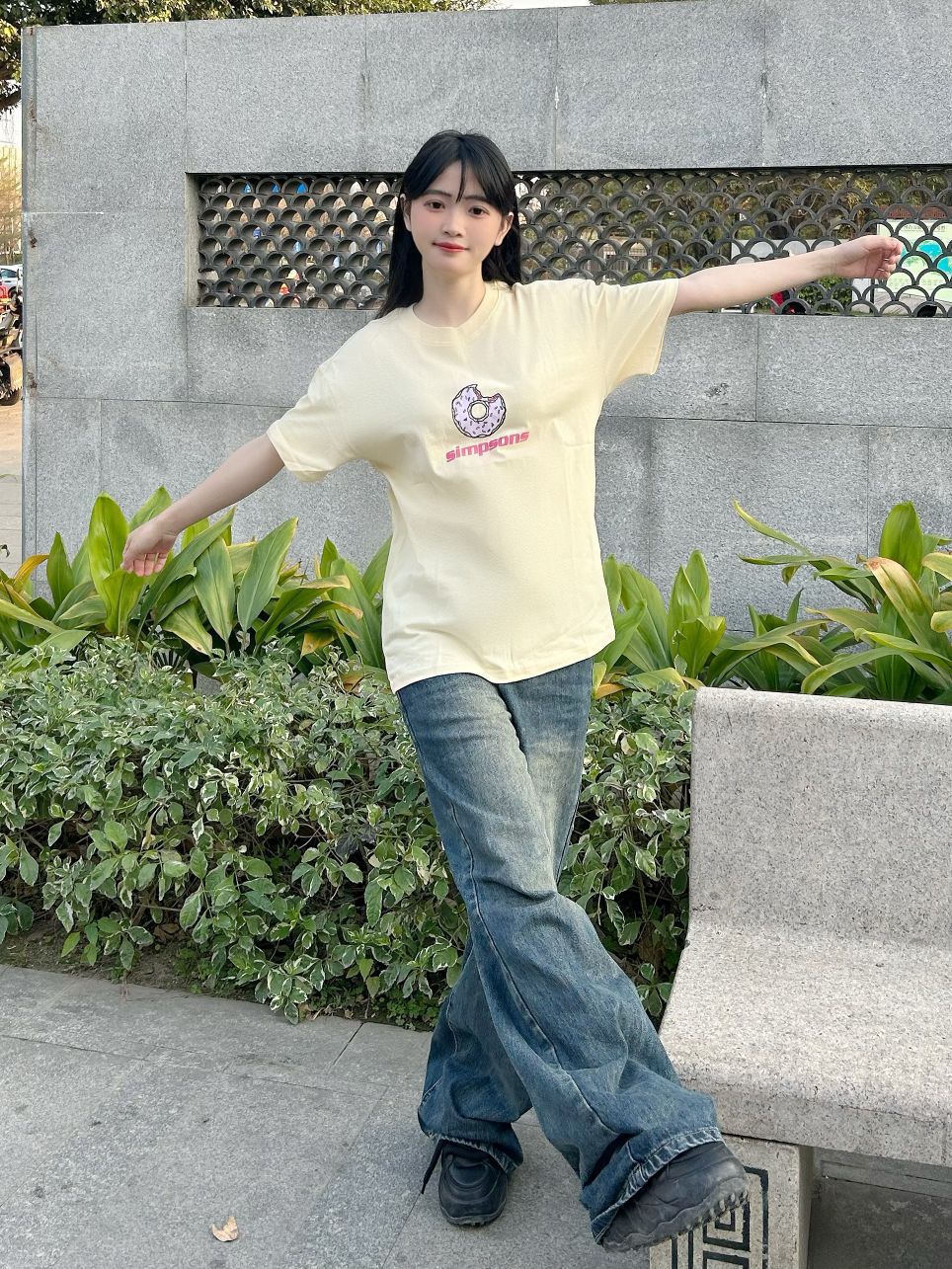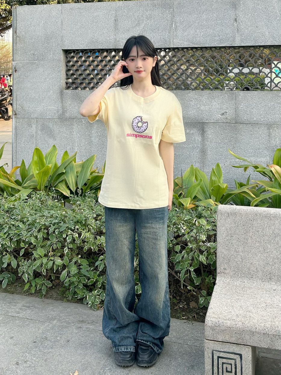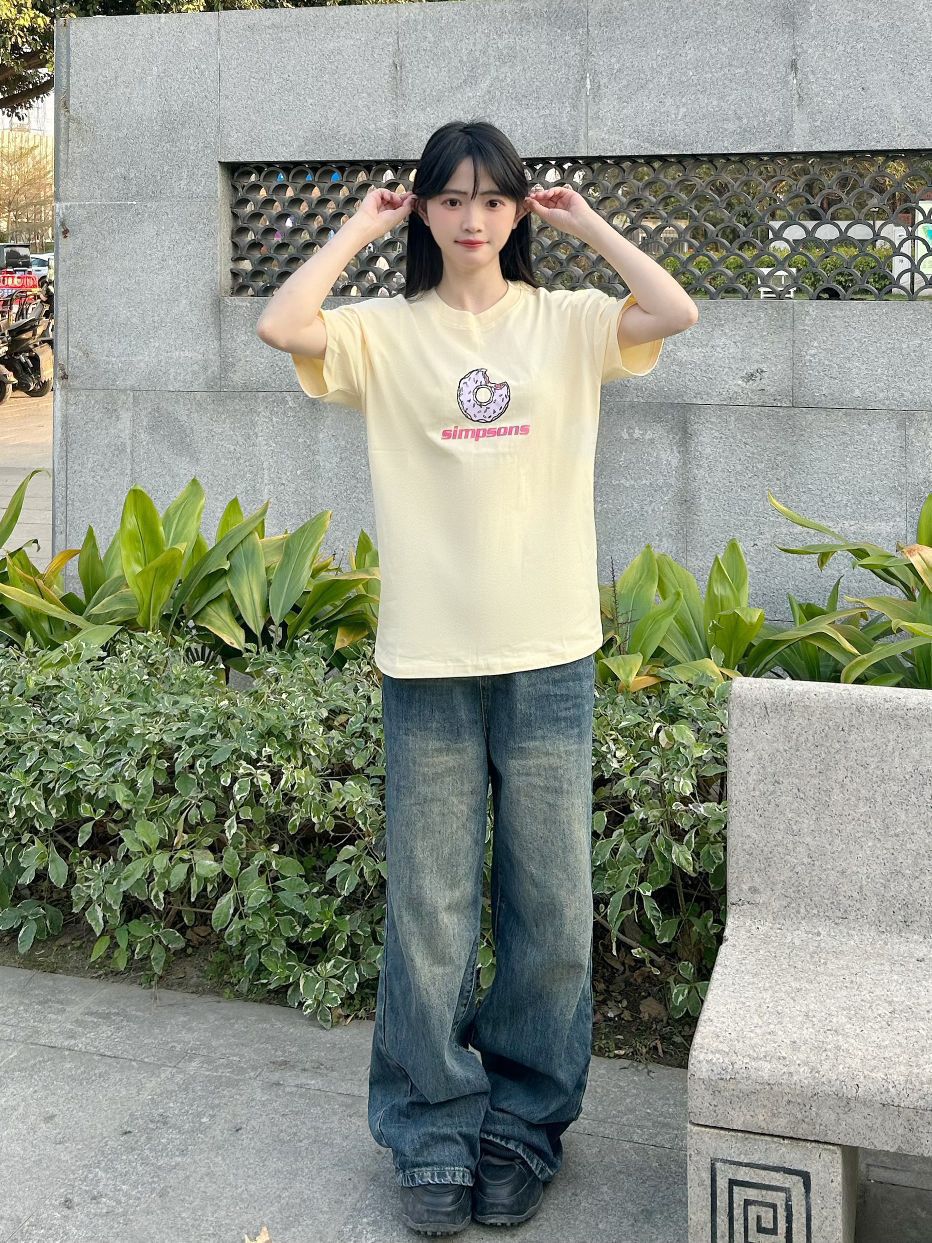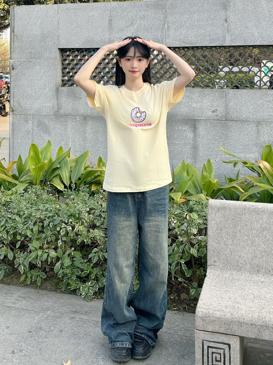 哈喽,家人们,今天的穿搭分享来啦,是一套春夏少女感短袖穿搭分享~ 奶黄色甜甜圈图案印花短袖+蓝色百搭牛仔裤+黑色高帮板鞋 春夏少女感短袖穿搭get~ 尺码参考: 身高、体重:160、95 衣服:m裤子:s鞋子:36