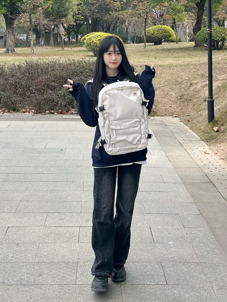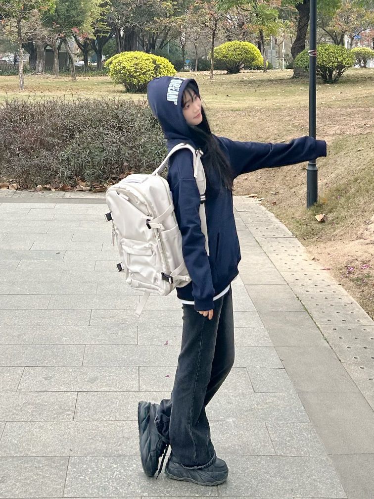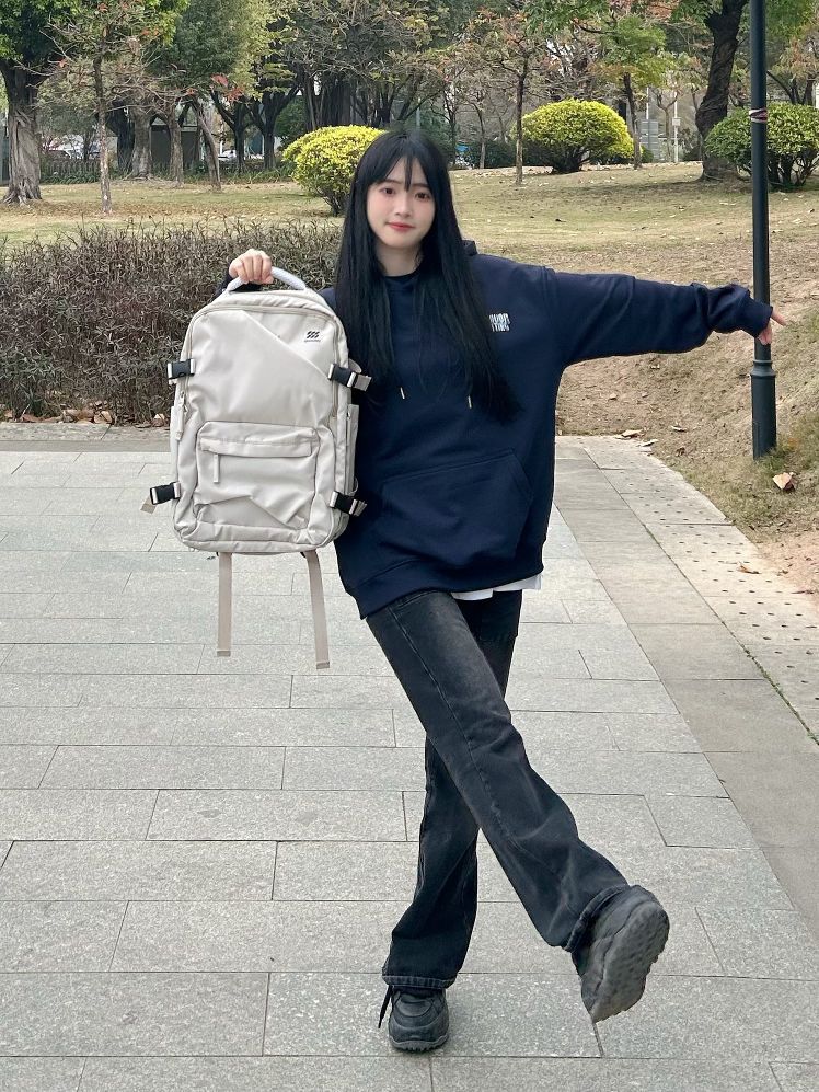 哈喽,家人们,今天的穿搭分享来啦,是一套春季户外出游旅行双肩包穿搭分享~ 蓝色字母印花宽松连帽卫衣+白色内搭+黑色牛仔裤+黑色板鞋+米白色休闲大容量旅行双肩包 春季户外出游双肩包穿搭get~ 尺码参考: 身高、体重:160、95 衣服:m裤子:s鞋子:36 旅行书包🎒:海澜之家