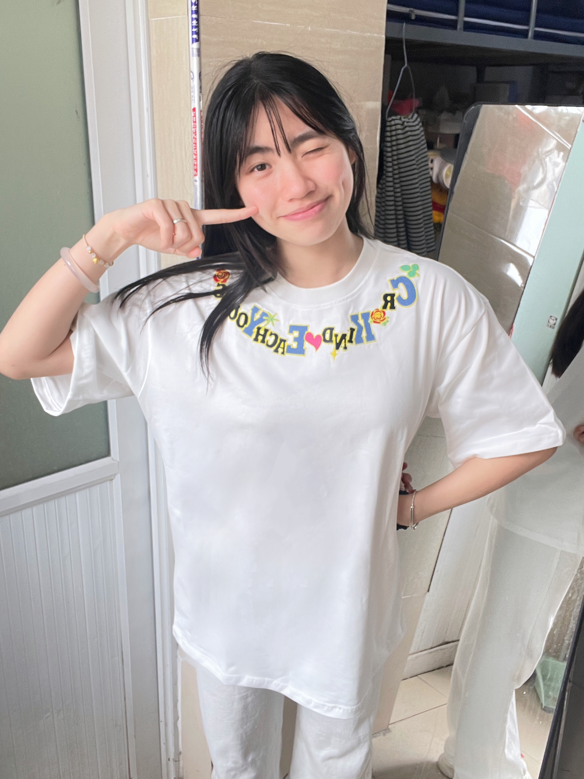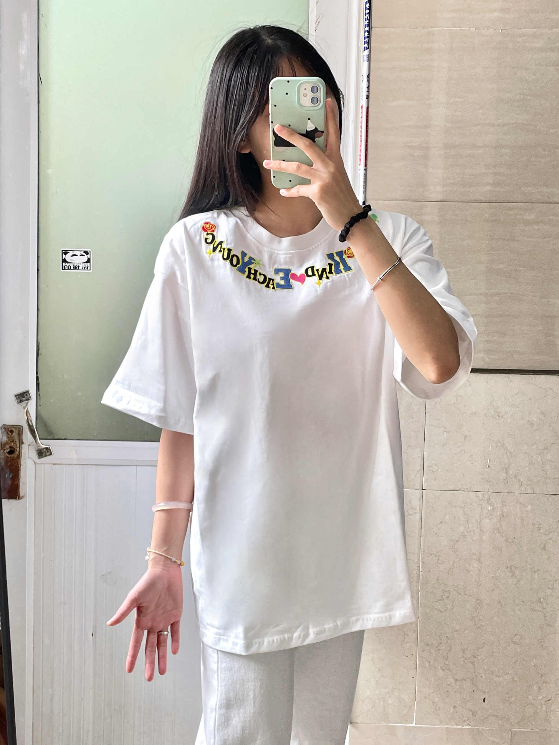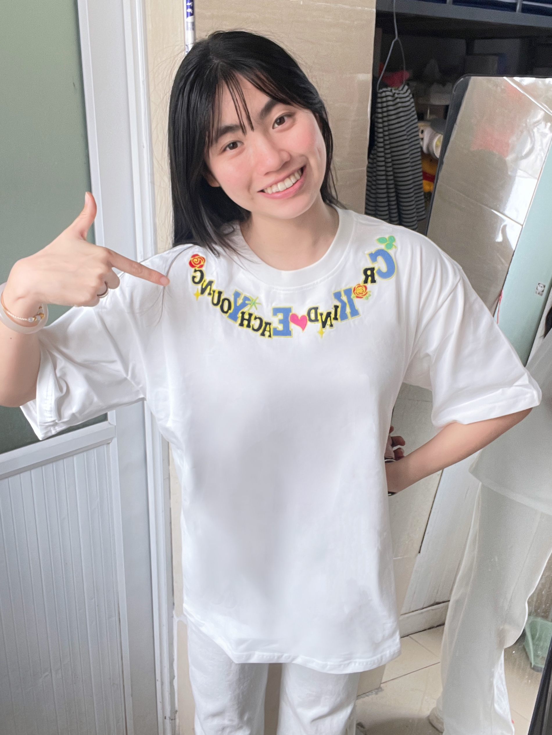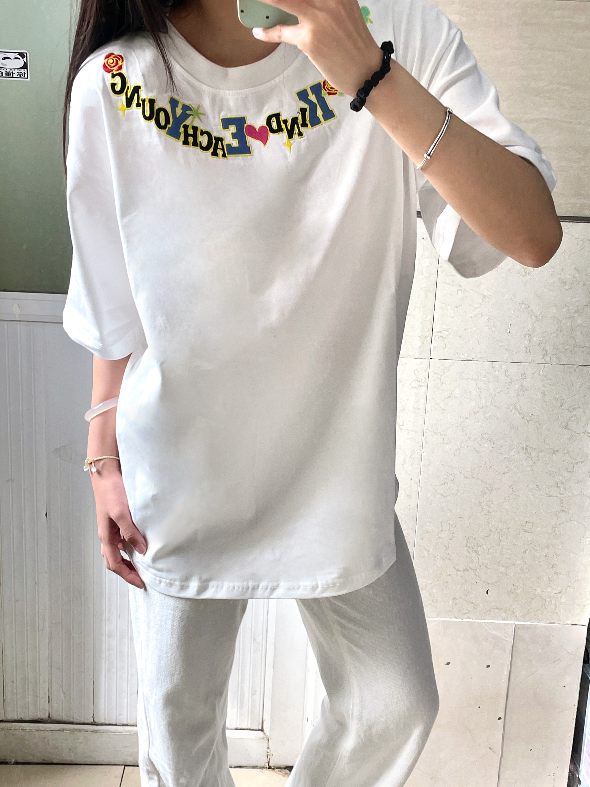 166 102穿的是M码 领口做了一圈花卉围绕的字母 设计感拉满了 还都是刺绣的呢 后背也有刺绣点缀 穿上就让人觉得活力满满 喜欢的宝宝可以参考一下哦