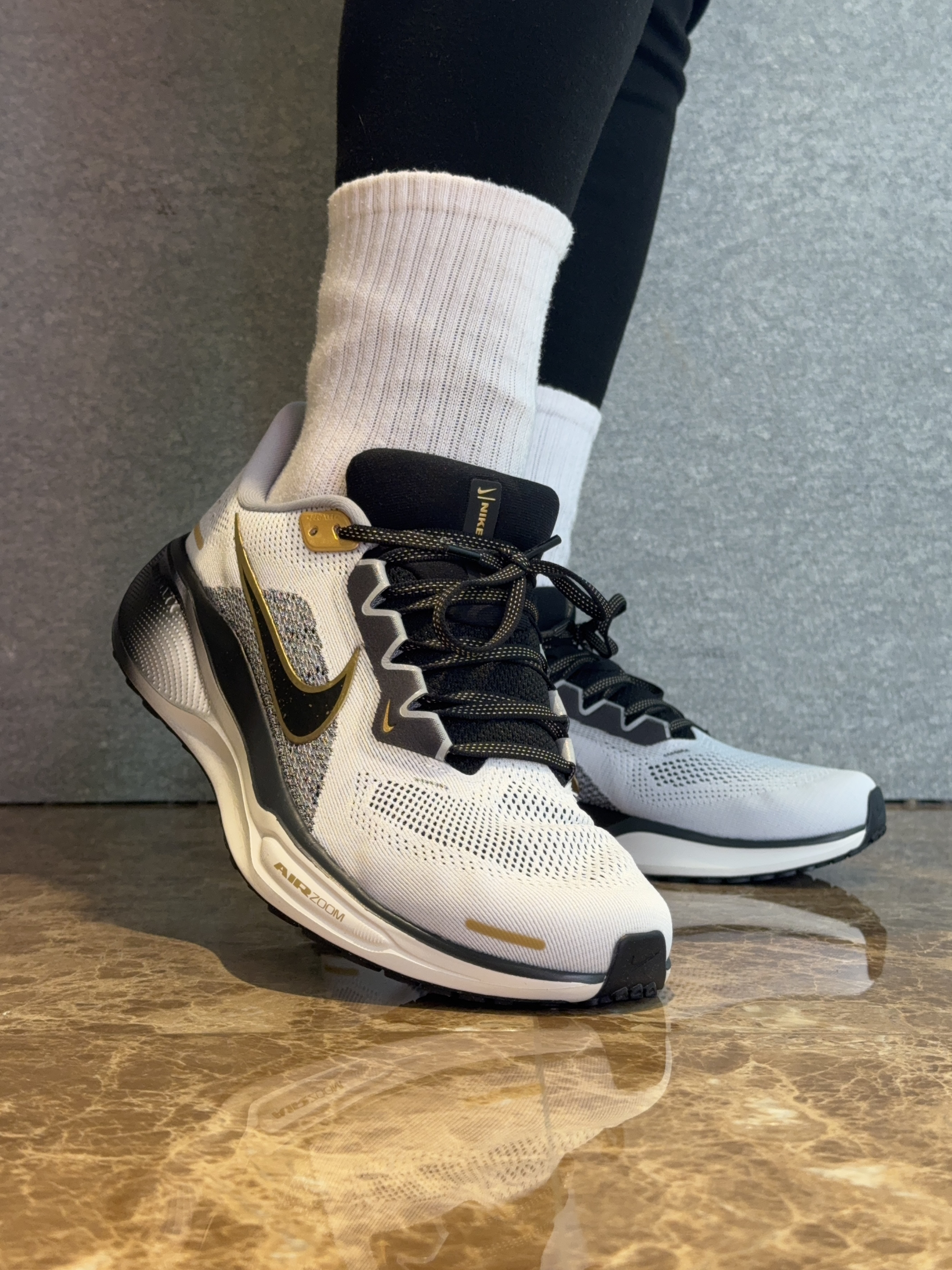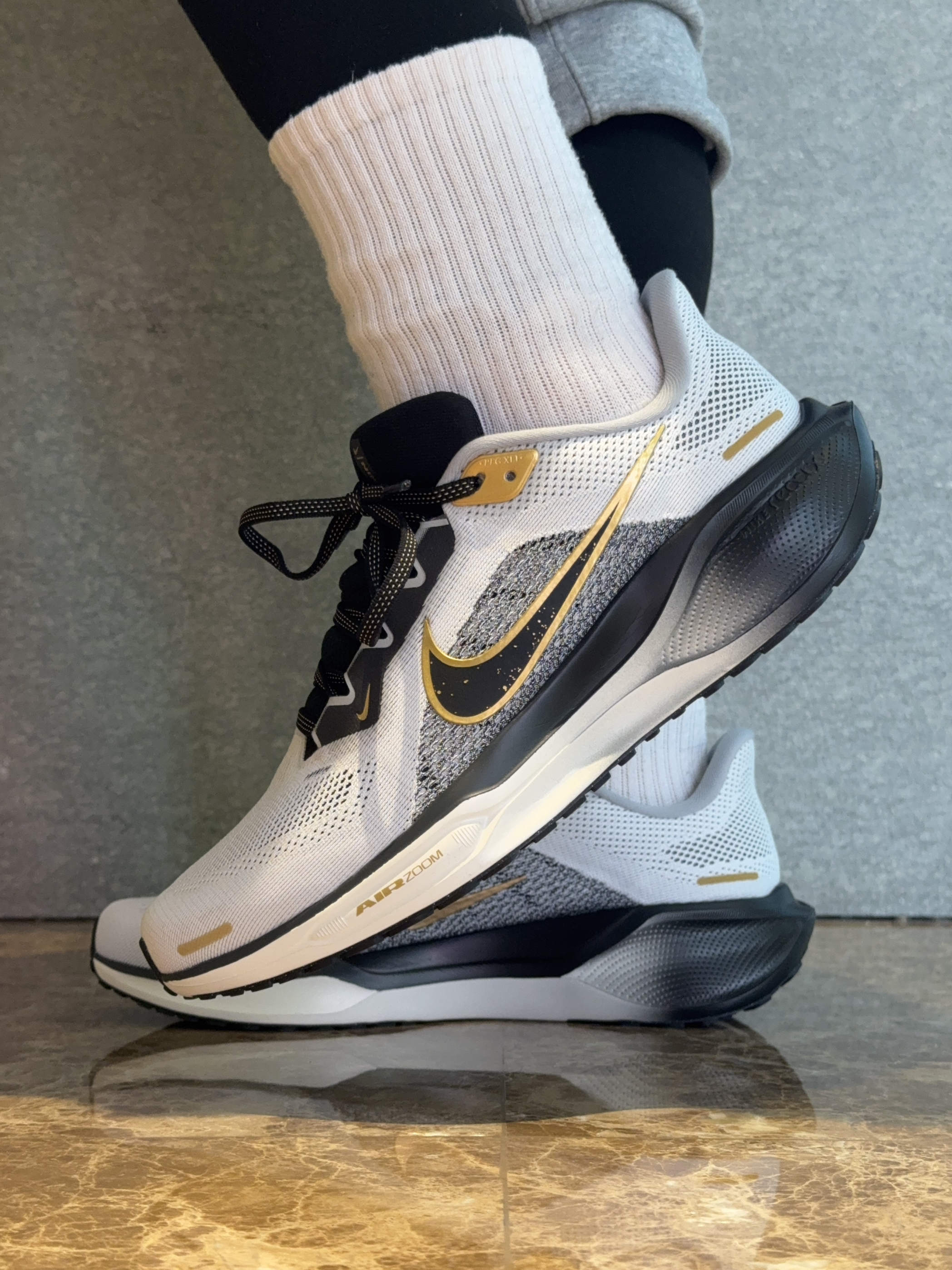 -🦄黑金配色是我认为目前飞马41里最帅的。 -🗒️上脚之后包裹感的非常自然,中底缓震脚感很直接。重量控制很轻没有拖沓感,鞋头上翘很自然,走路跑步发力很丝滑。中底的脚感韧弹不泄力,支撑性很好,长距离运动通勤穿着不脚酸。 -🤠Hello大家好我是CZen王世军,今天跟大家分享飞马41的黑金配色,我真的老喜欢这个配色🏃➡️了,黑金的搭配自带一种精英感。 -🌬️鞋面双层网纱织物鞋面,包裹感很自然,...