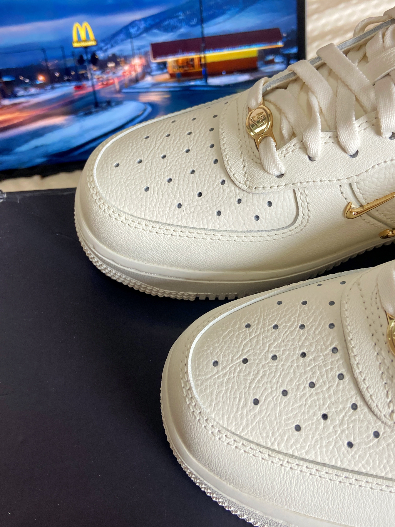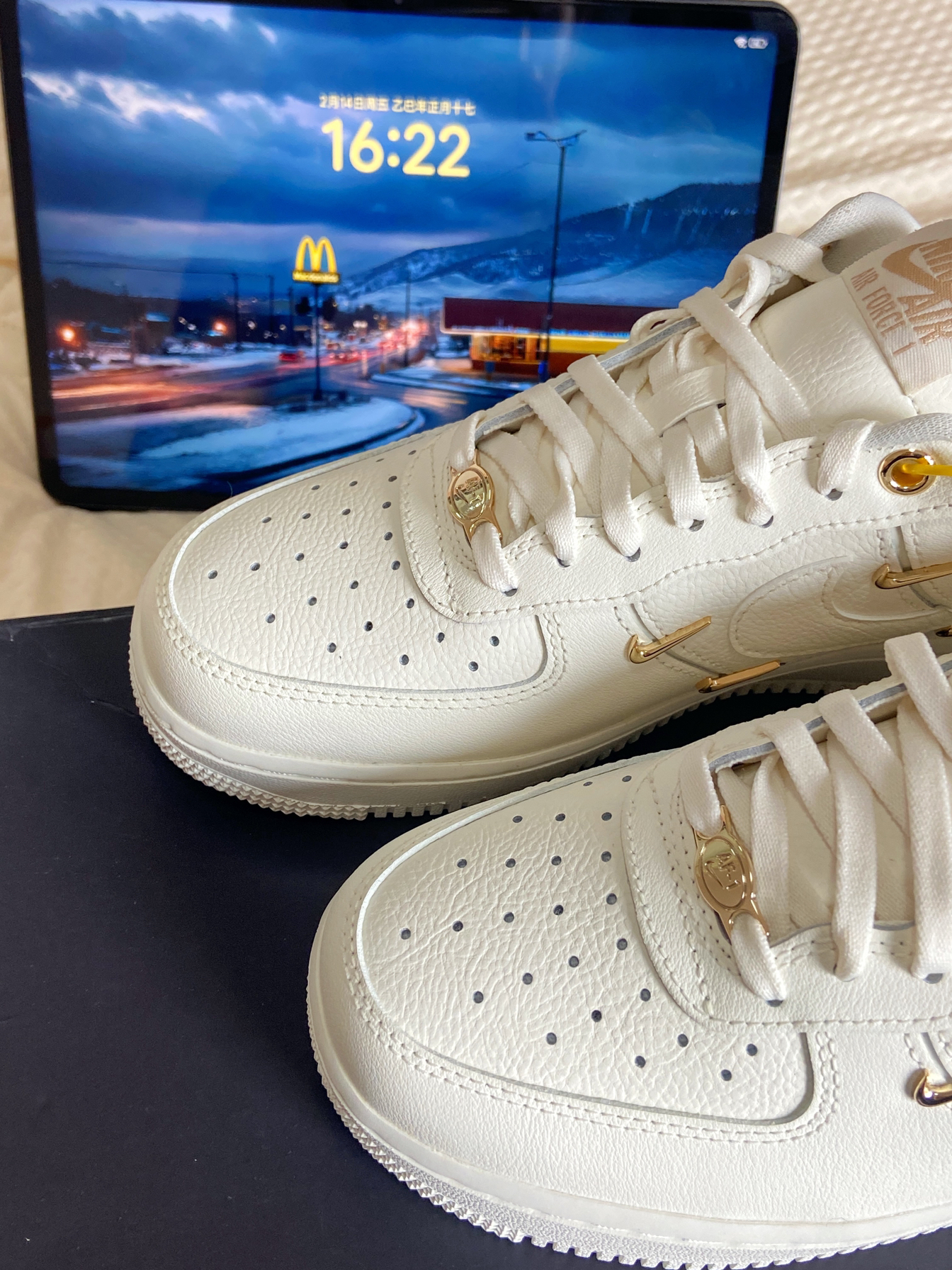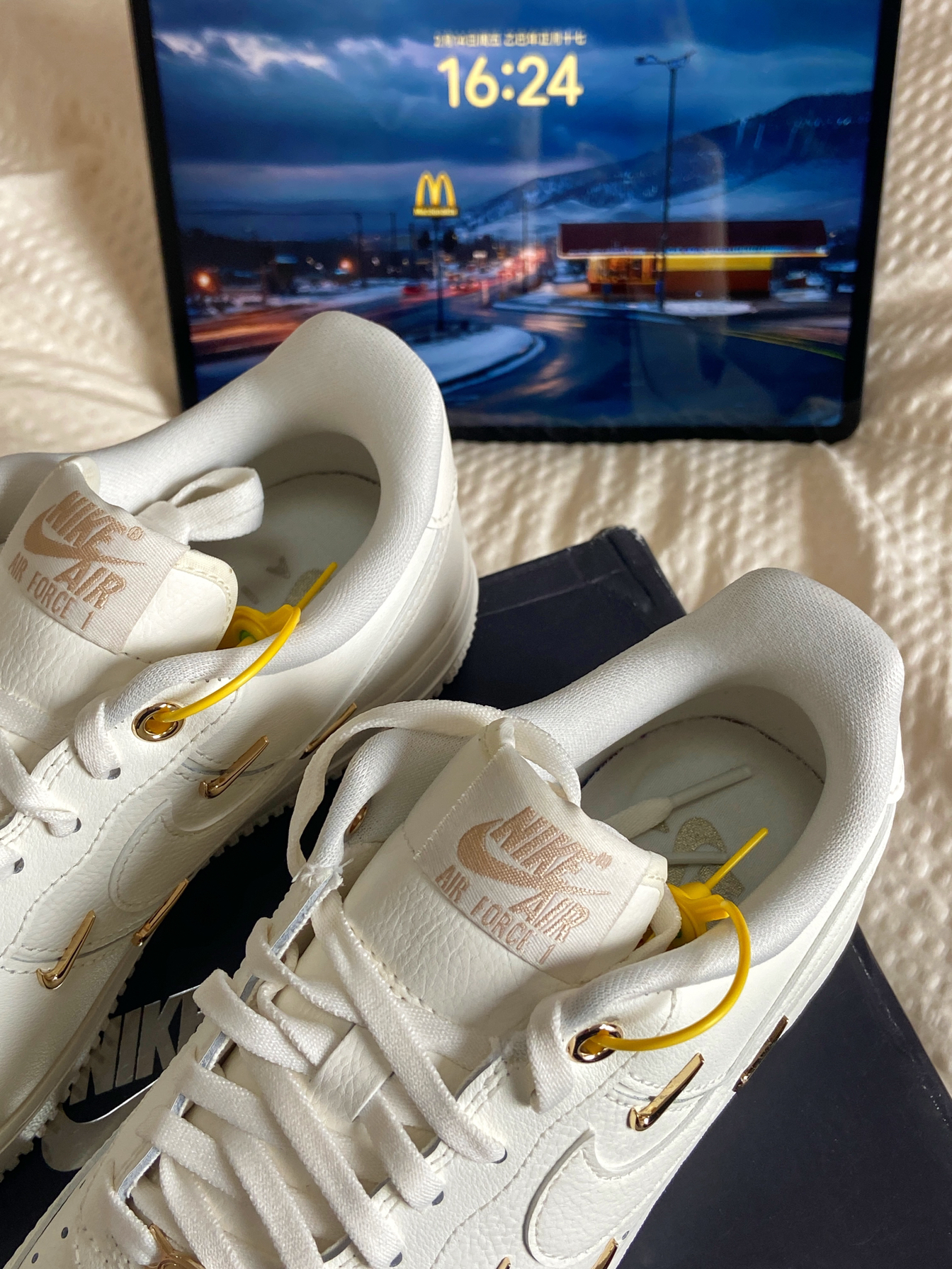 超小四勾空军再爆新配色,奶油白邂逅金色小勾,简约里藏着低调奢华,一整个美出新高度!上脚舒适度直接碾压普通版,云朵般的脚感谁能不爱?不过要注意,这双鞋尺码偏大,按平时码数选小半码,就能收获最完美的贴合度,入手不亏,闭眼冲就完事儿!